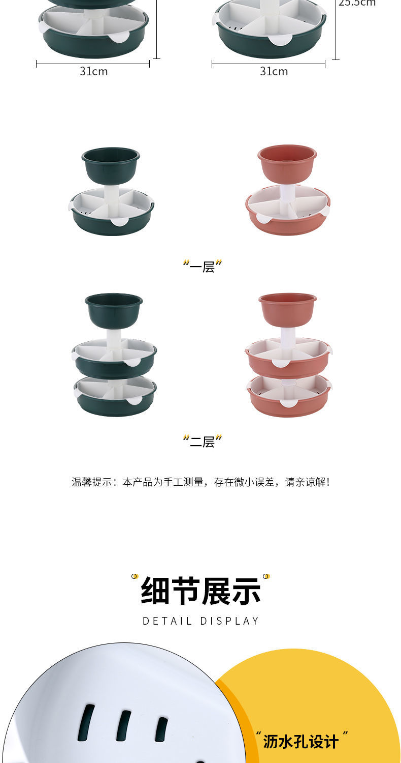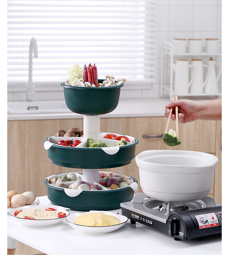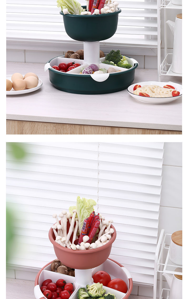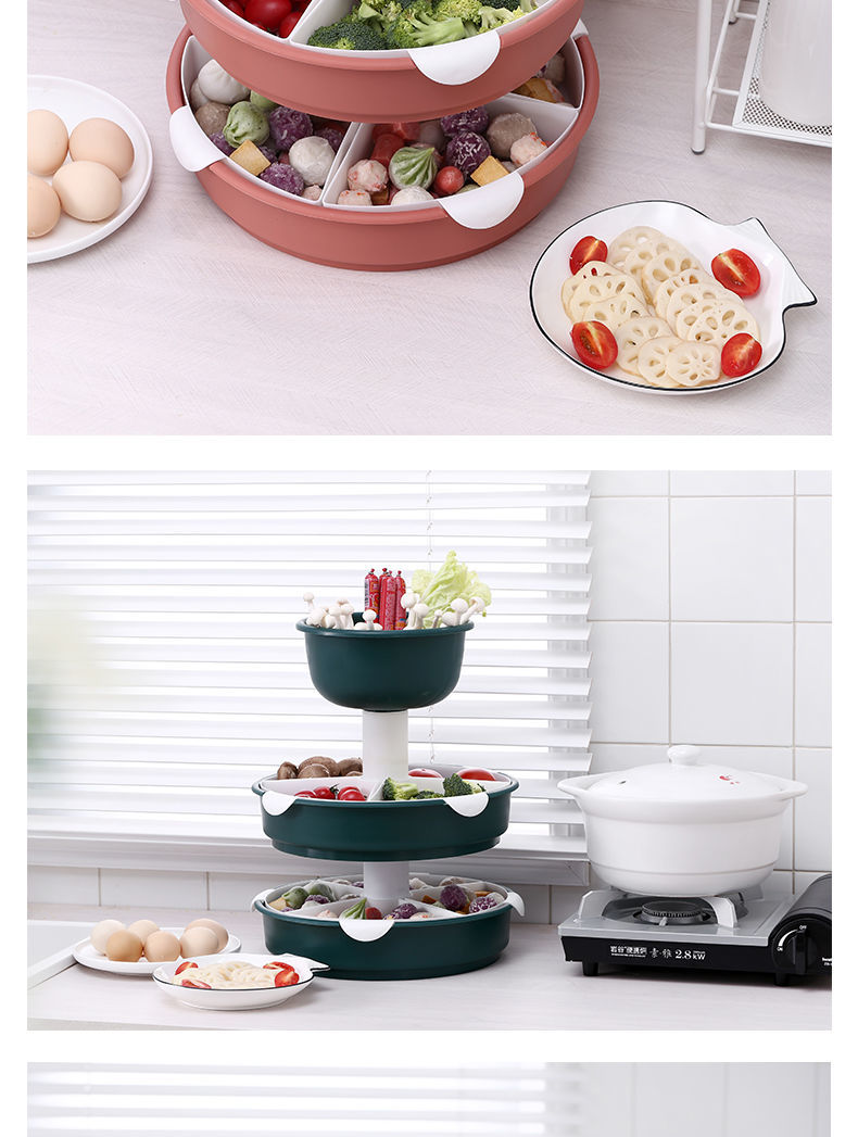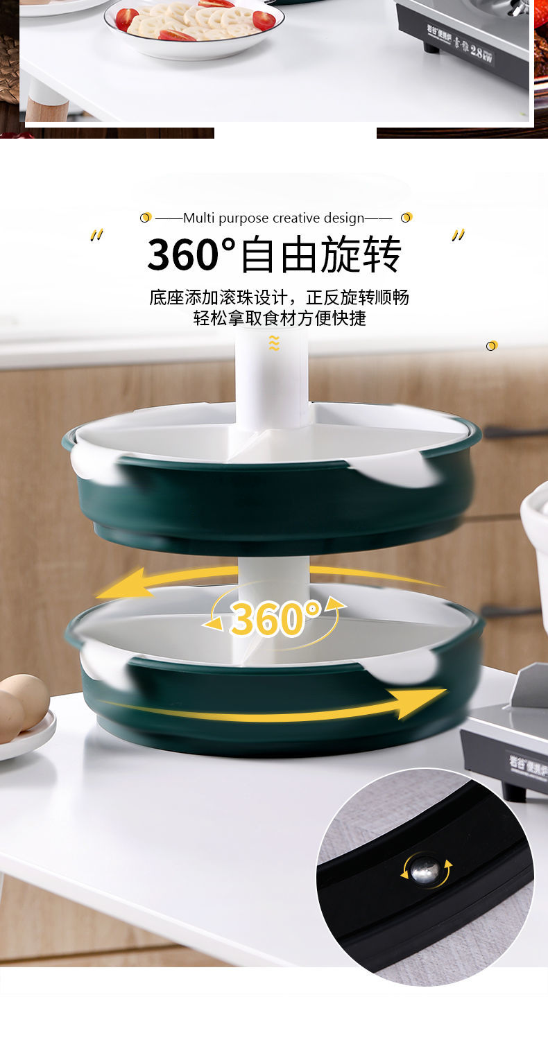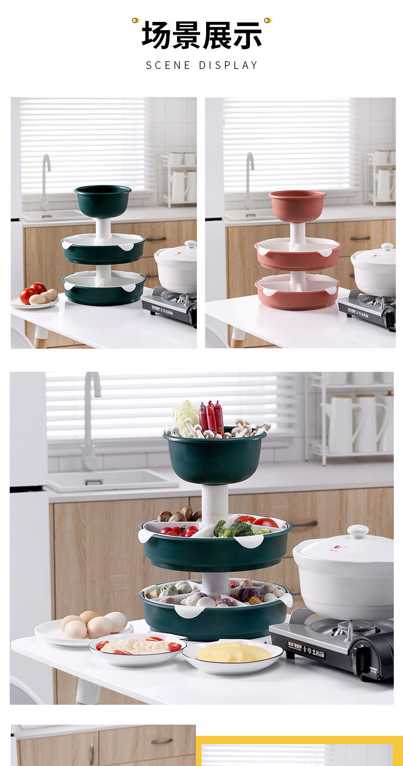 360°自由旋转,底座添加滚珠设计,正反旋转顺畅,轻松拿取食材,方便快捷,能装,是一种实力,三层菜蓝设计,瓜果蔬菜、鸡鸭鱼肉,装你想装【七天无理由退换】