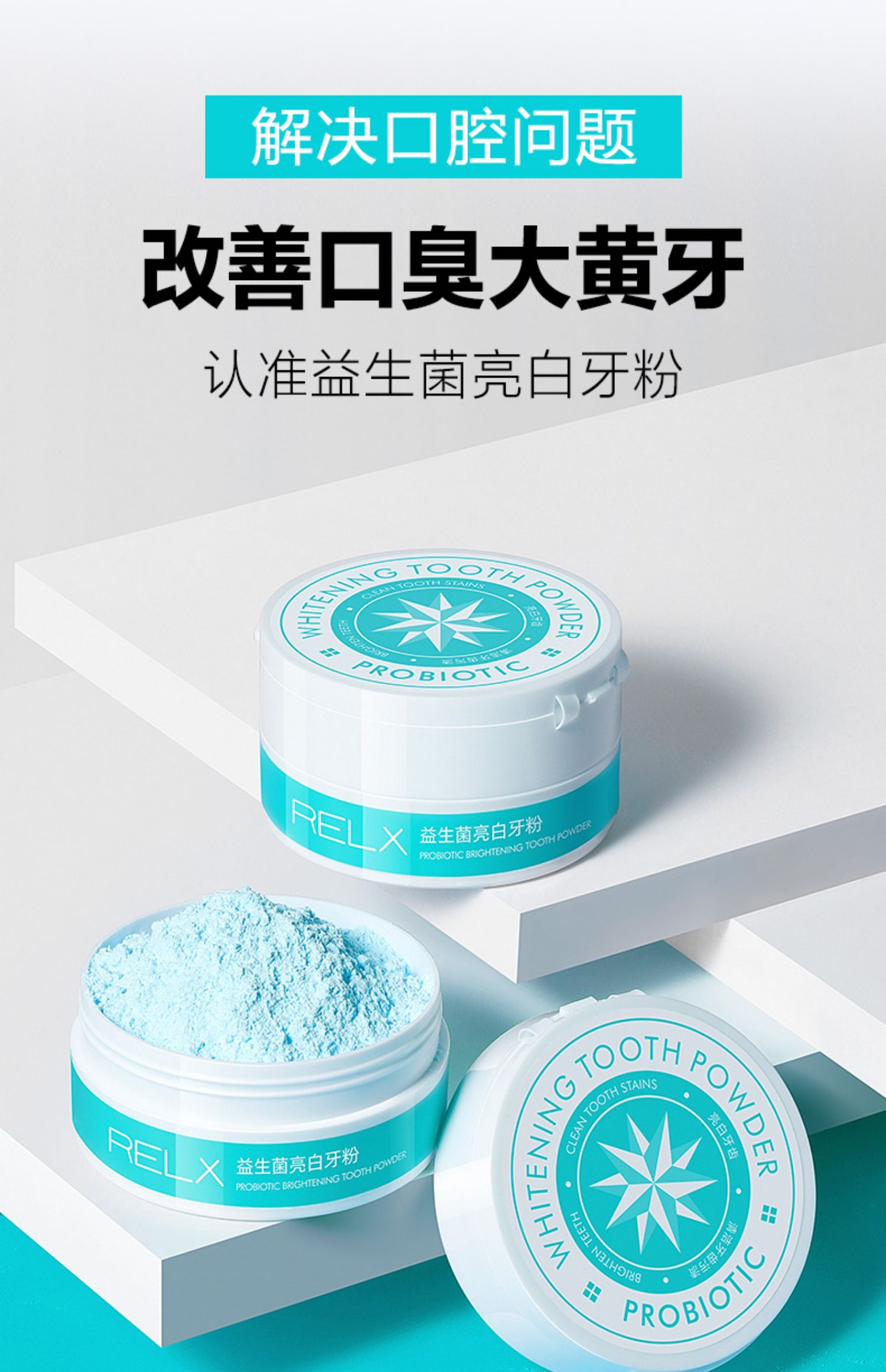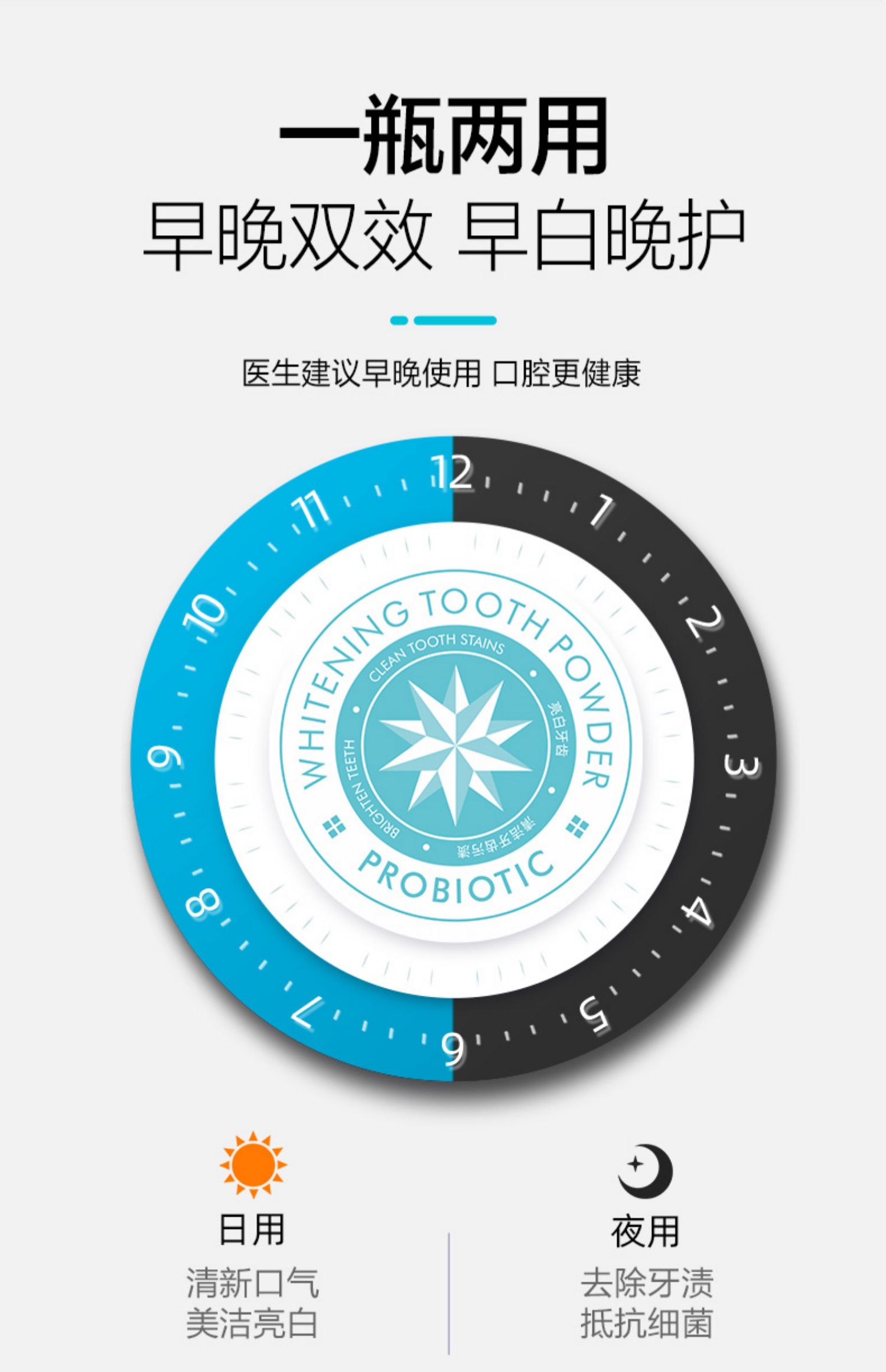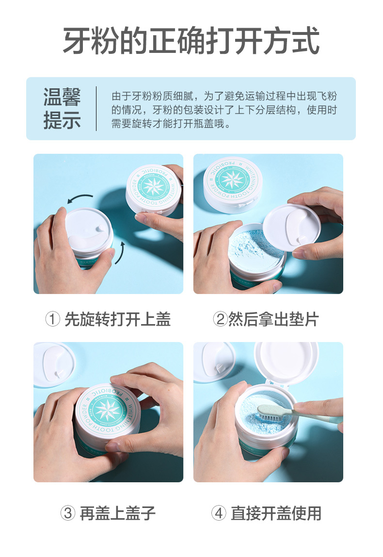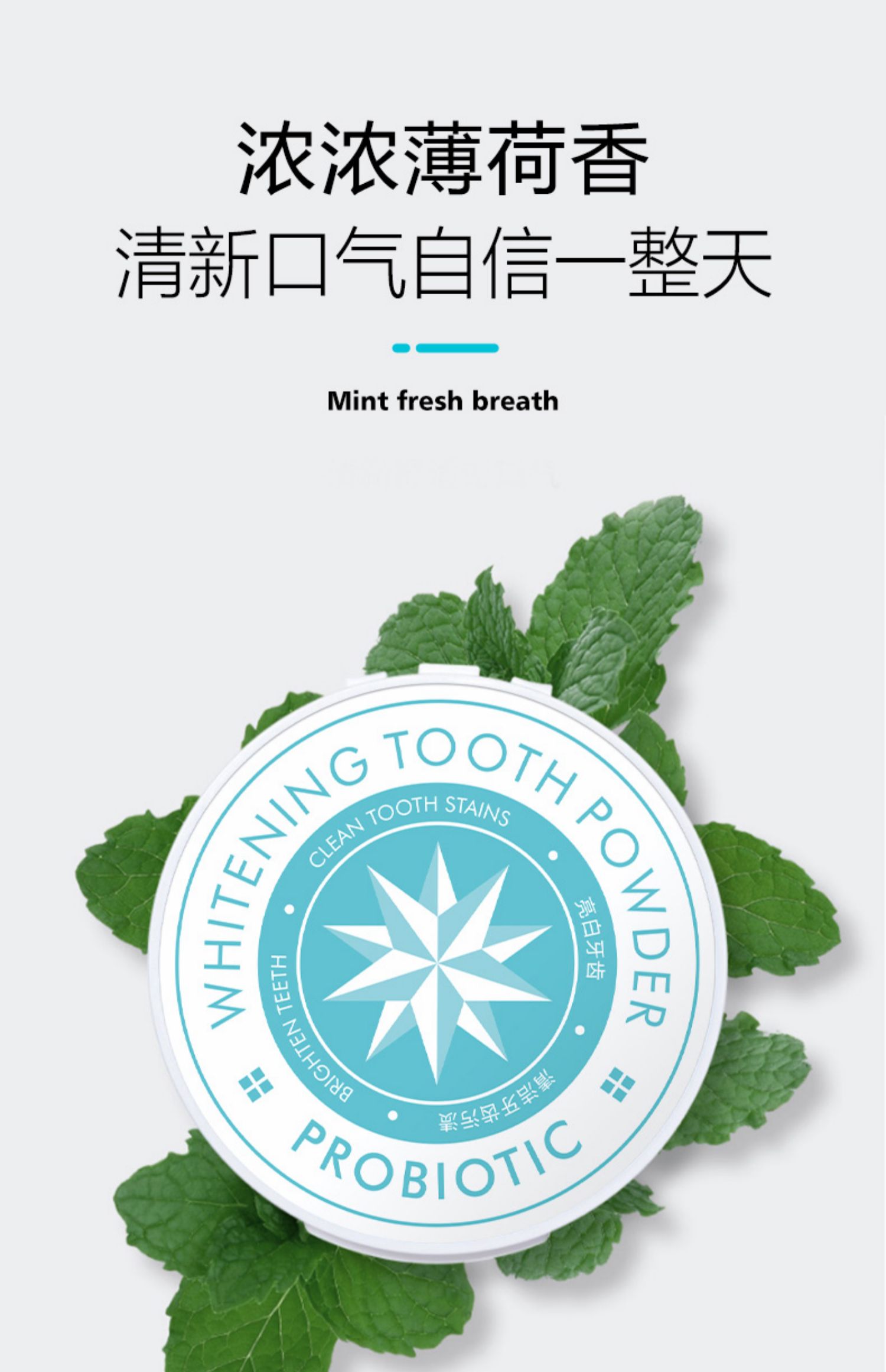 益生菌亮白牙粉,减少口腔细菌滋生,去除口腔异味。全方位去除牙渍牙垢,亮白牙齿不伤牙釉质,还你一口洁白好牙!【七天无理由退换】