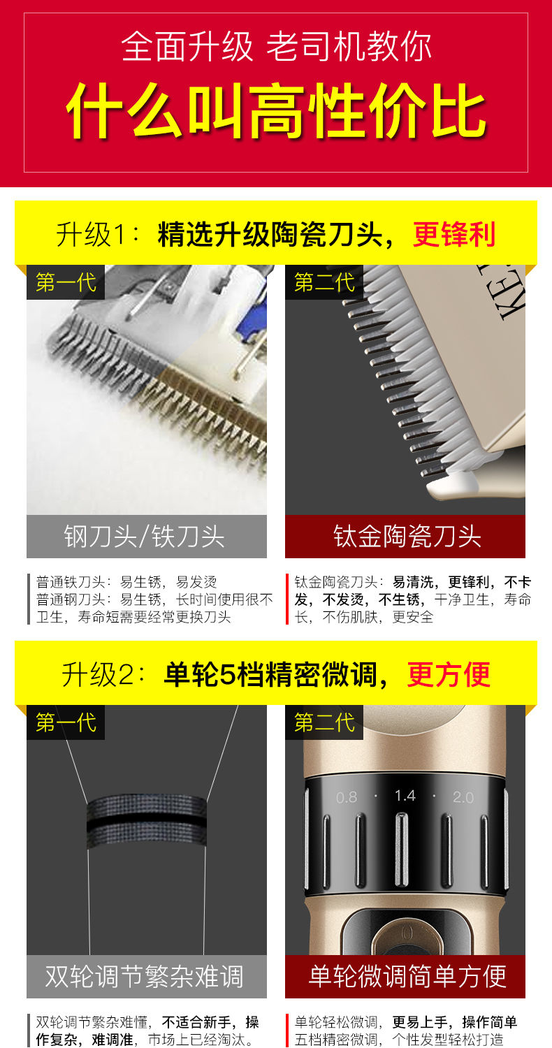 【送20件套装】全身水洗,钛金陶瓷刀片,柔韧性强,LED电量显示,机身5挡微调,内置锂电池,超长续航可达180分钟,3.7V大功率电机,轻松理发不卡发,不发热,不伤肌肤,易清洗。【赠运费险】