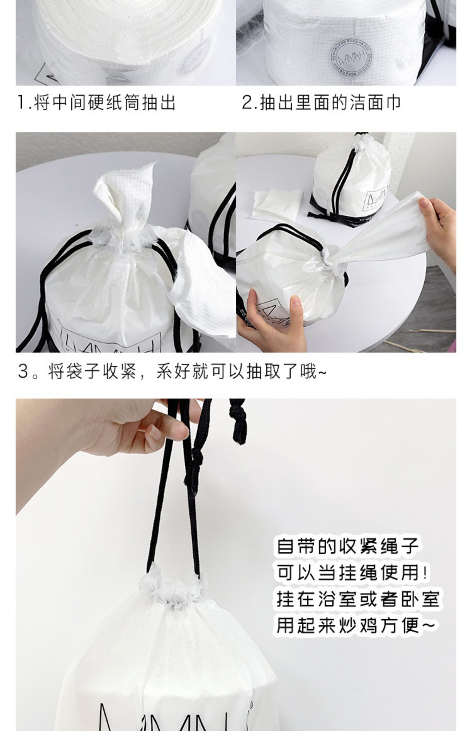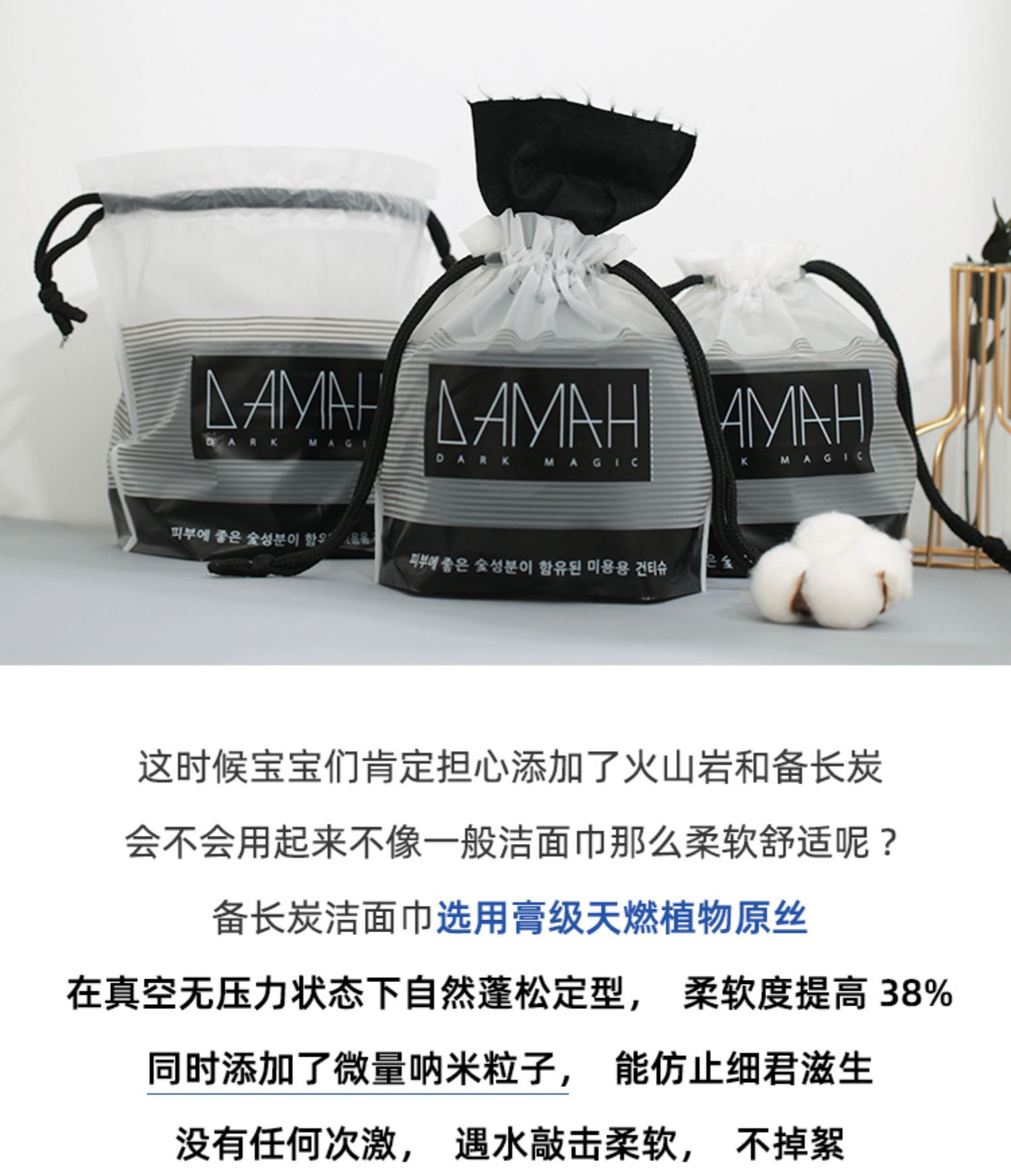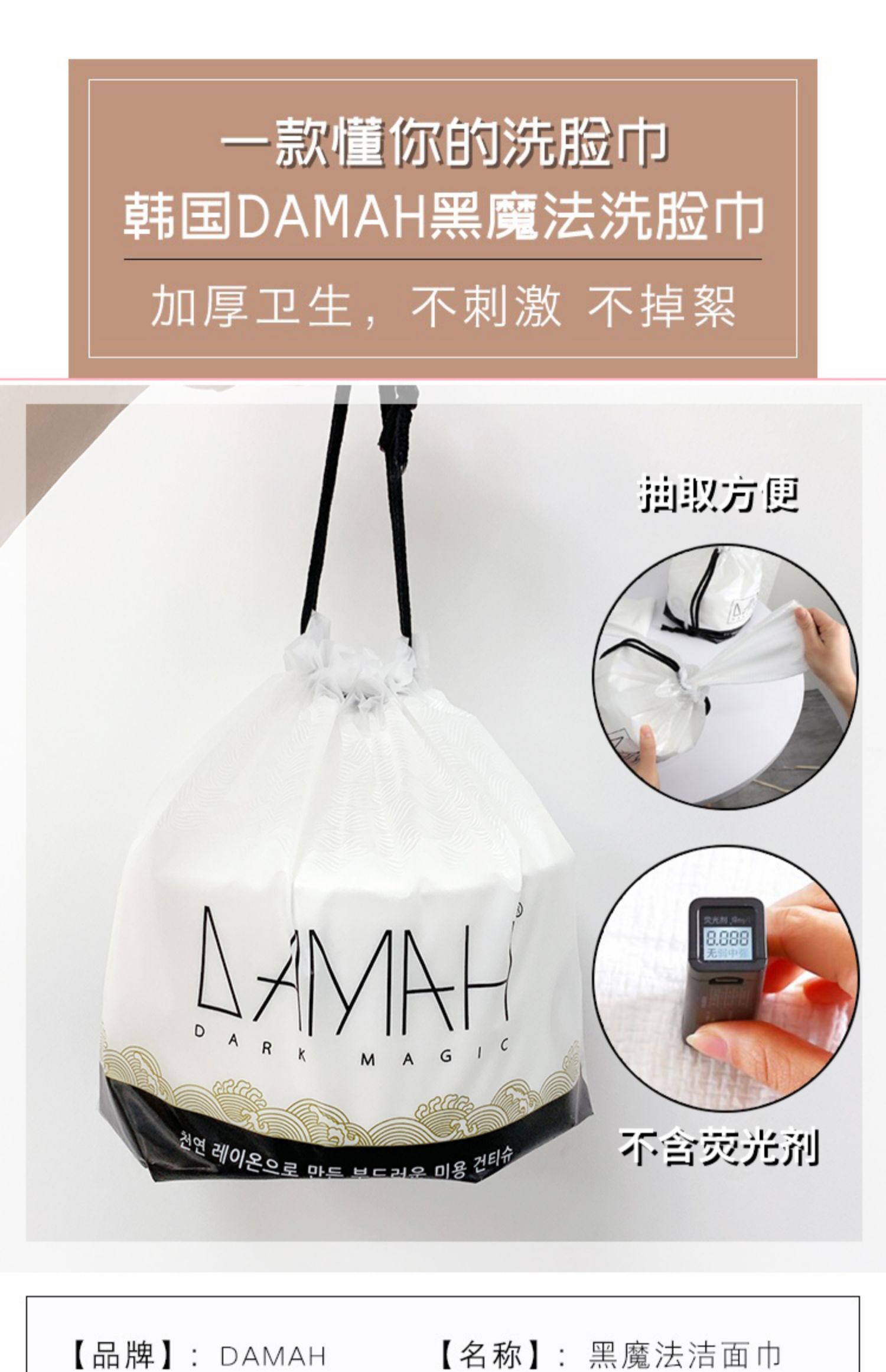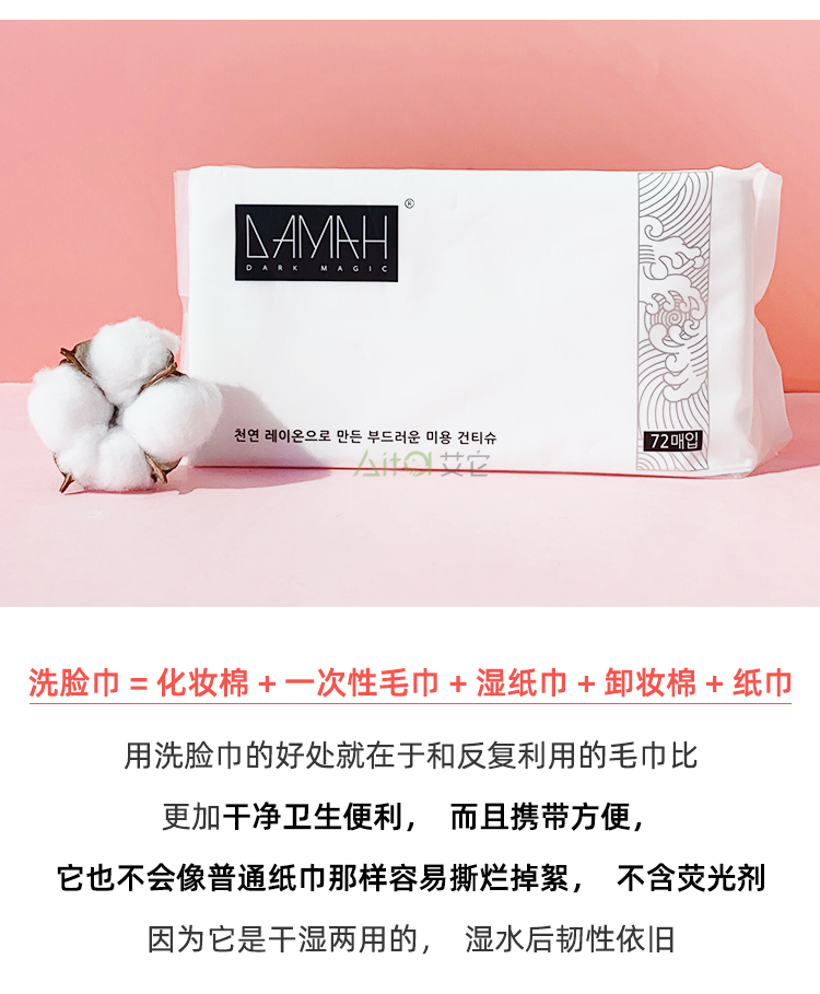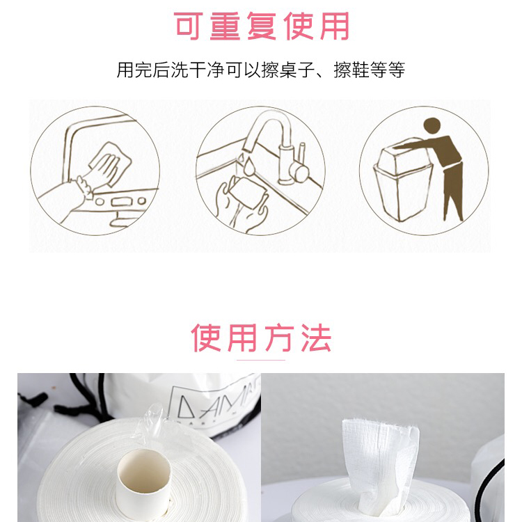 韩国DAMAH黑魔法洗脸巾,女一次性纯棉洁面巾,擦脸卷筒式抽取,