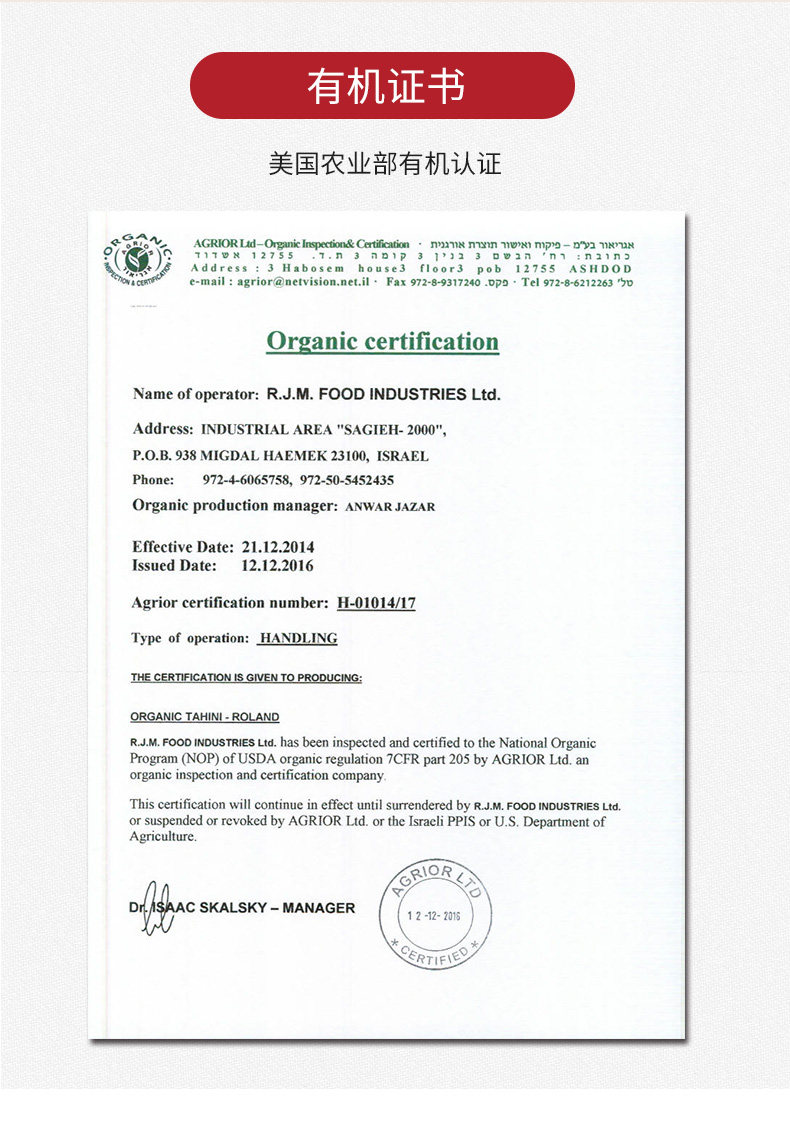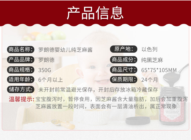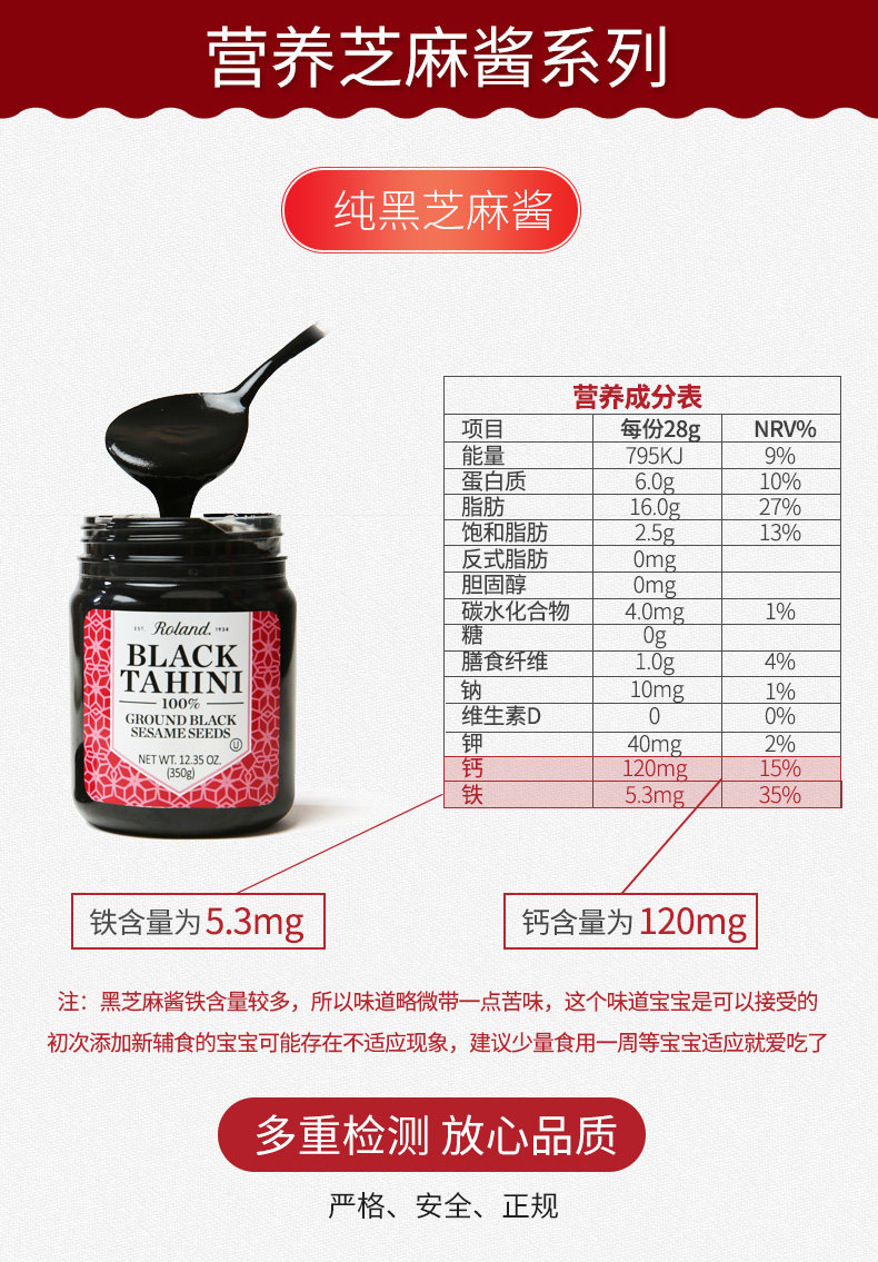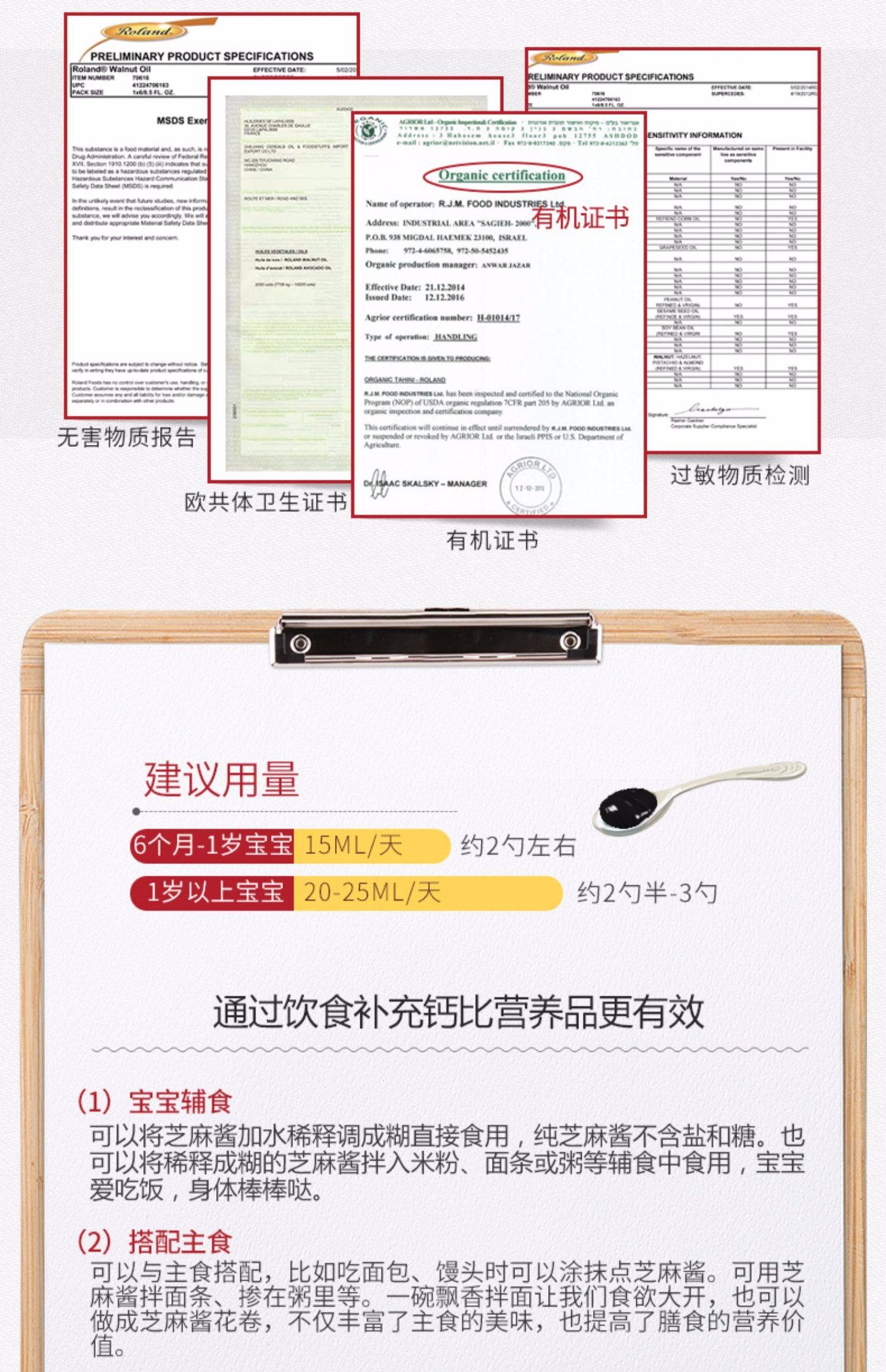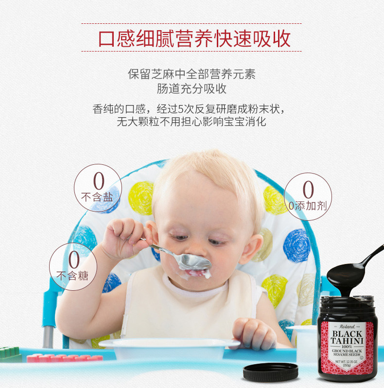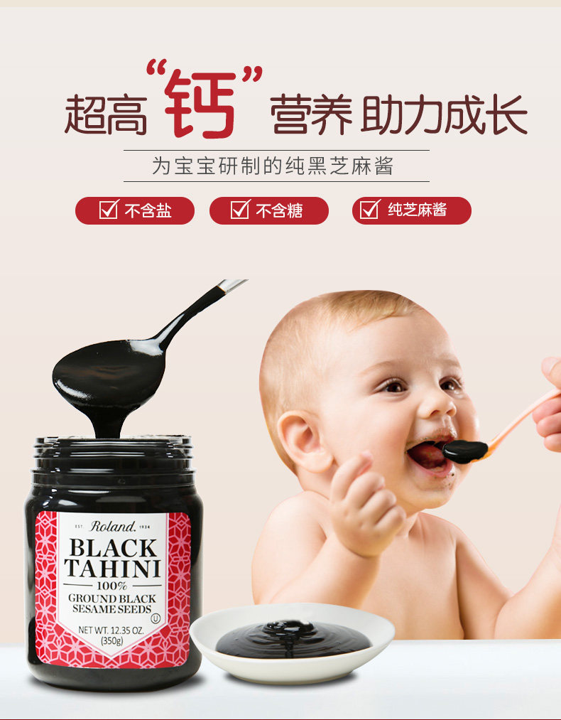 【高钙辅食】Roland罗朗德婴儿有机黑芝麻酱350g宝宝拌饭食用添加 ,有机认证高钙黑芝麻酱无添加~~