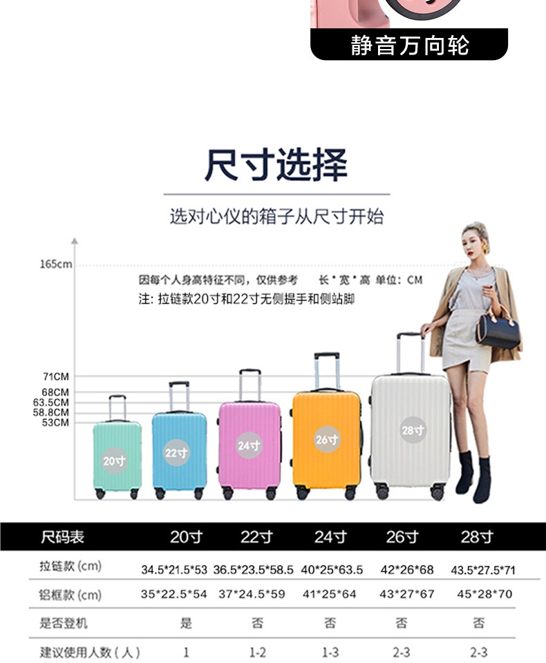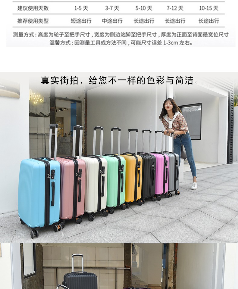 坚韧耐磨,防水防刮,超大容量,360度万向轮,静音滑轮,防盗密码锁,特殊工艺经久耐摔,柔韧性十足,多色可选,学生开学用的着!