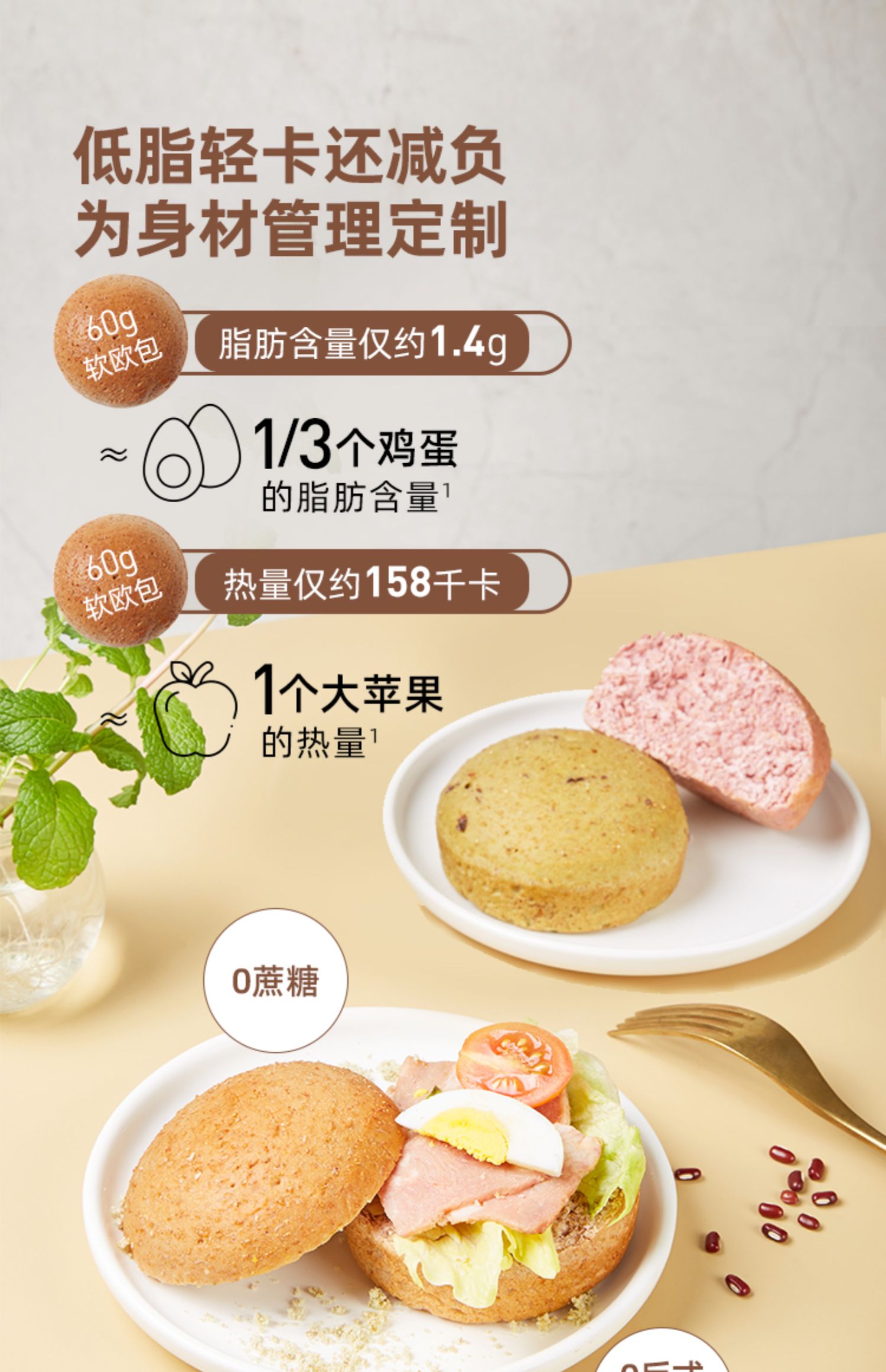 健康低脂便捷早餐,健身减脂人群都在吃的,薄荷健康低脂全麦欧包!高膳食纤维,0蔗糖0反式脂肪酸~柔软好吃又饱腹!还是独立包装,很方便携带!【退货运费险】