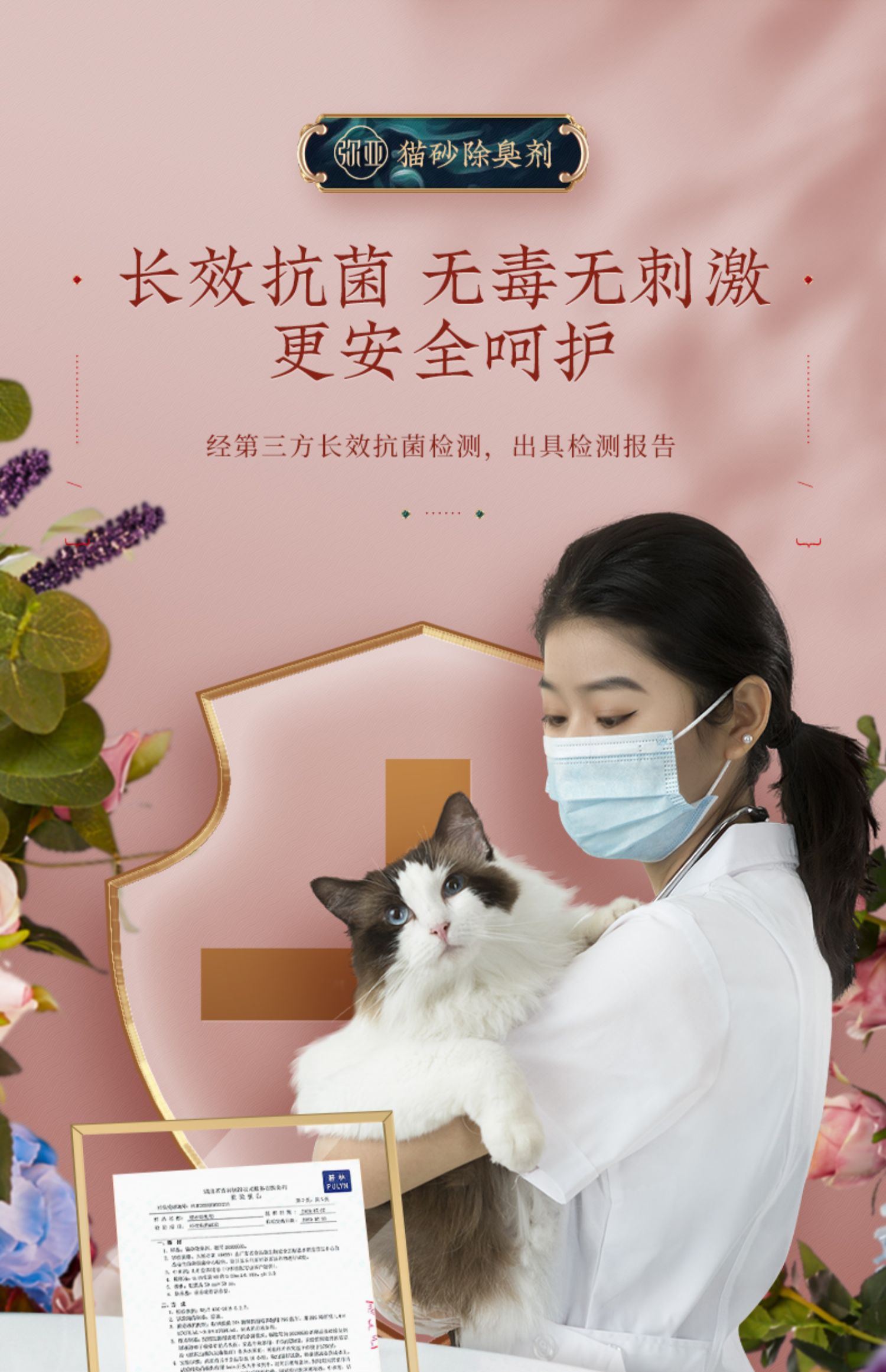 通过CMA权威认证的一款对猫狗的细菌、真菌、病毒具有杀灭效果的,不添加任何香精、不添加任何化学原料、不添加任何激素,无色无味,安全健康。