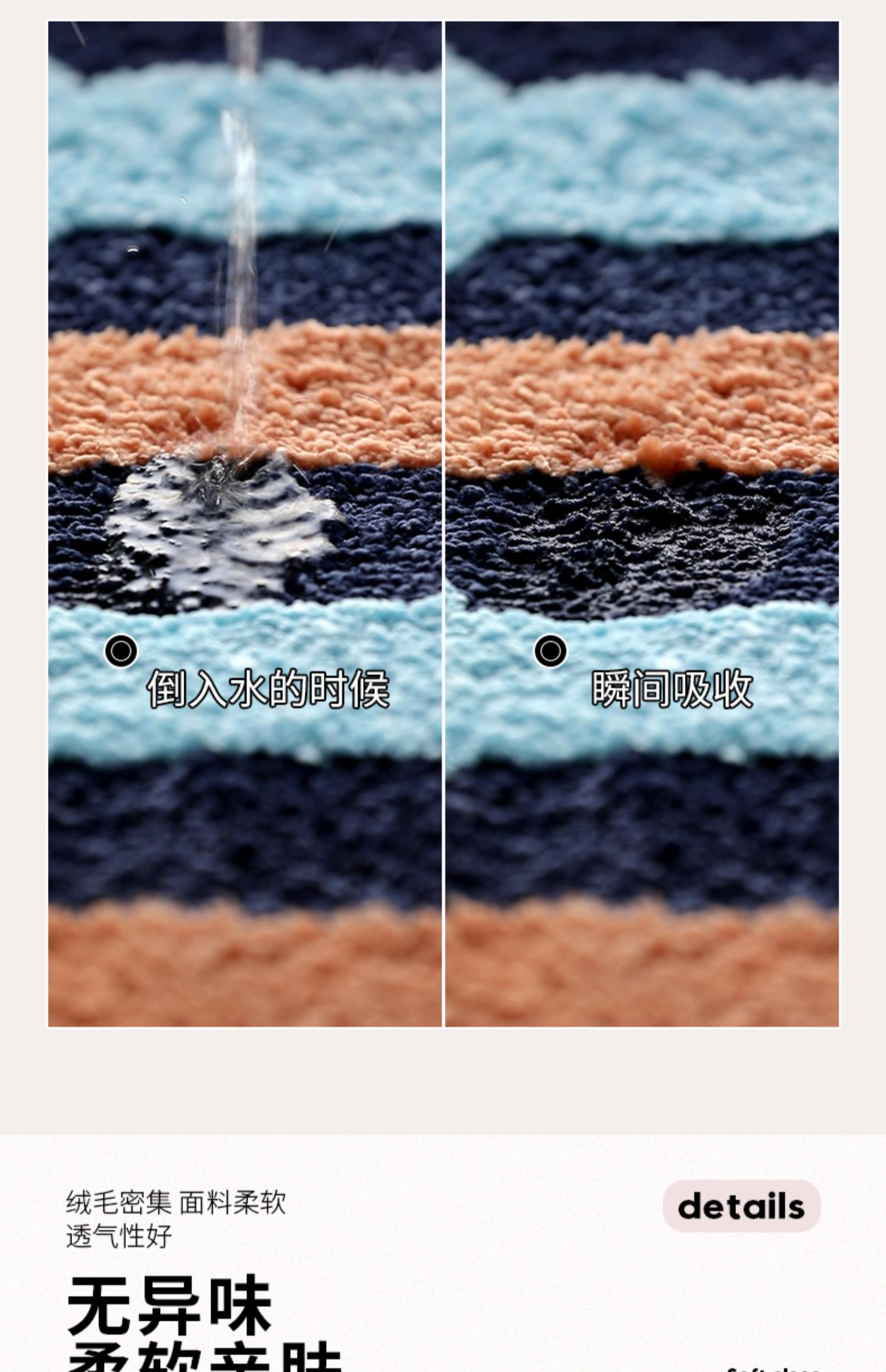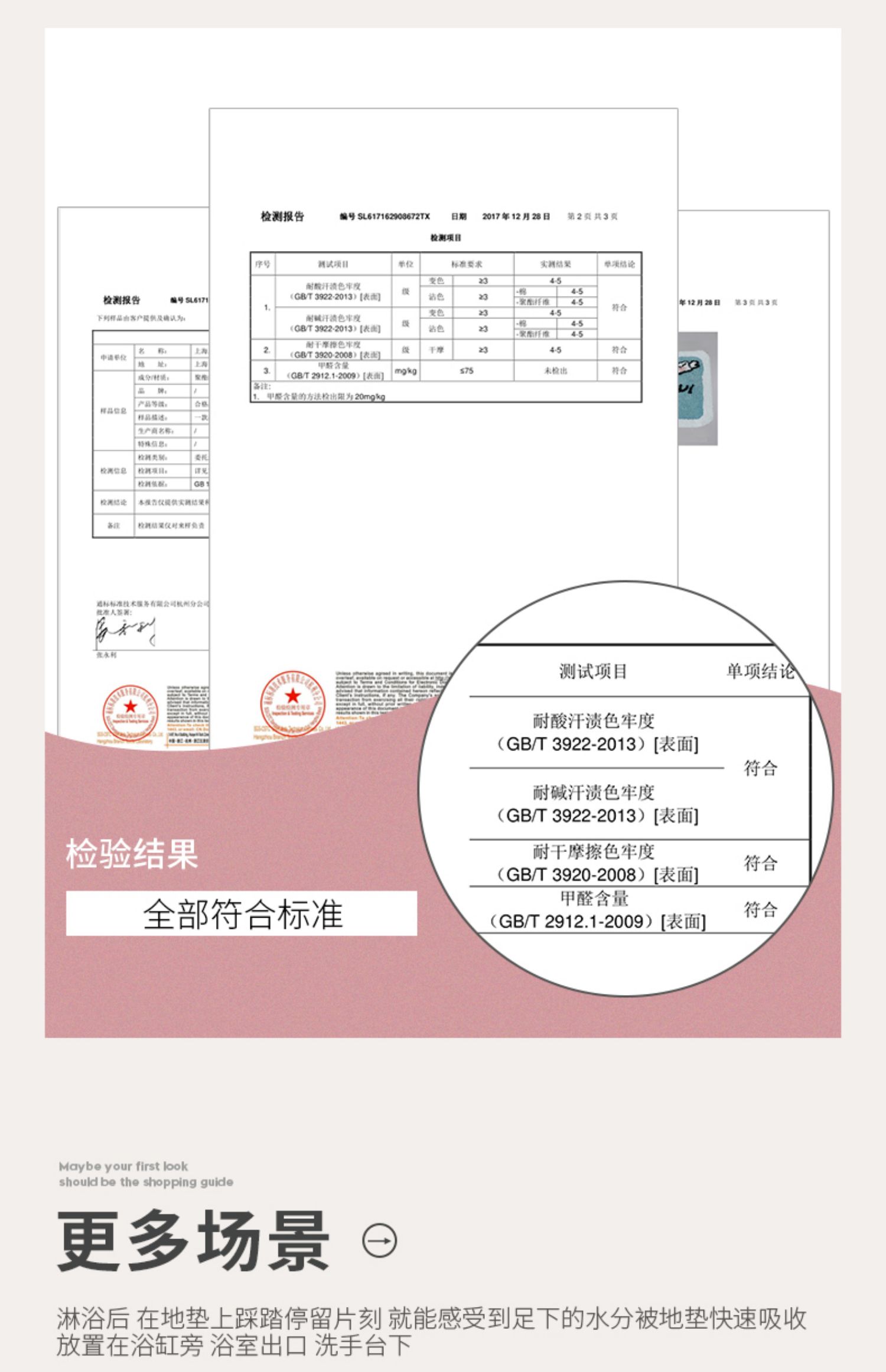 柔软舒适,防滑吸水,做工精细,健康无味,快速吸水,款式颜色多样,可搭配各种装饰风格,尽显高端大气!!!【赠运费险】