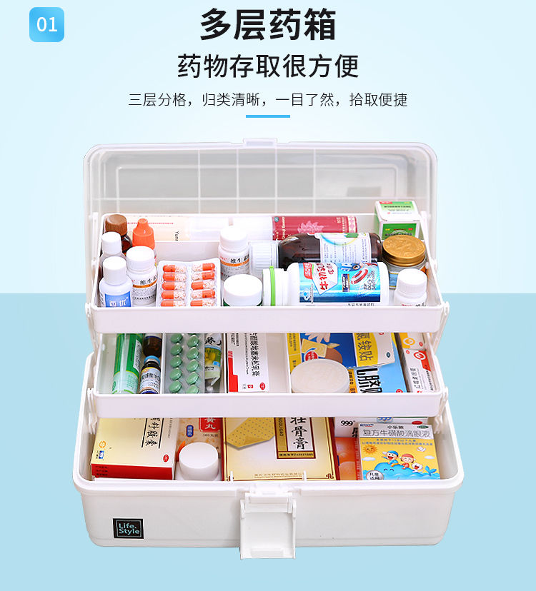 家中常备药箱,关爱家人每一刻~茶花大牌,家庭分层医药箱囤一个!环保PP透明材质,分层收纳,适用不同大小物品。