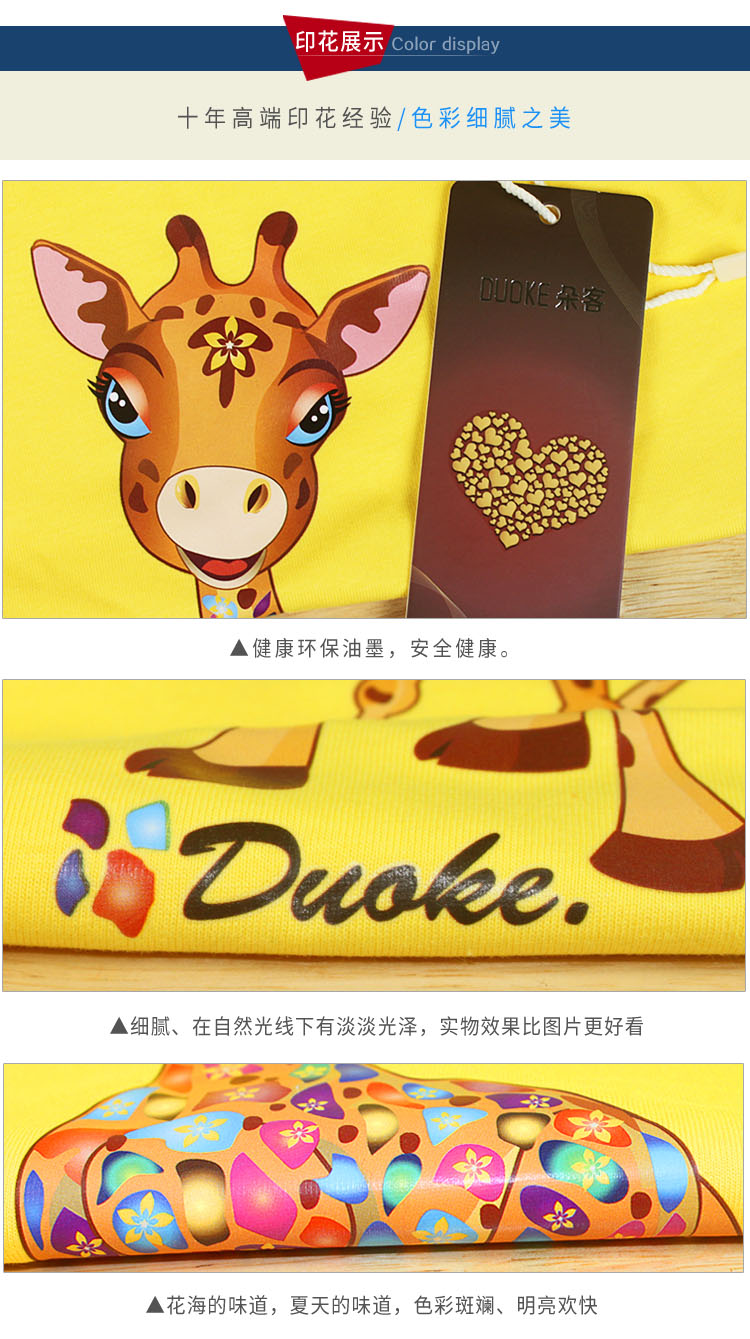 纯棉,朵客专注亲子七年,精选纯棉舒适面料,圆领设计,穿着方便舒适,眼睛走线和萌趣的印花,让T恤更生动活泼有趣,不仅儿童款还有大人款的哟,绝对亲子装。
