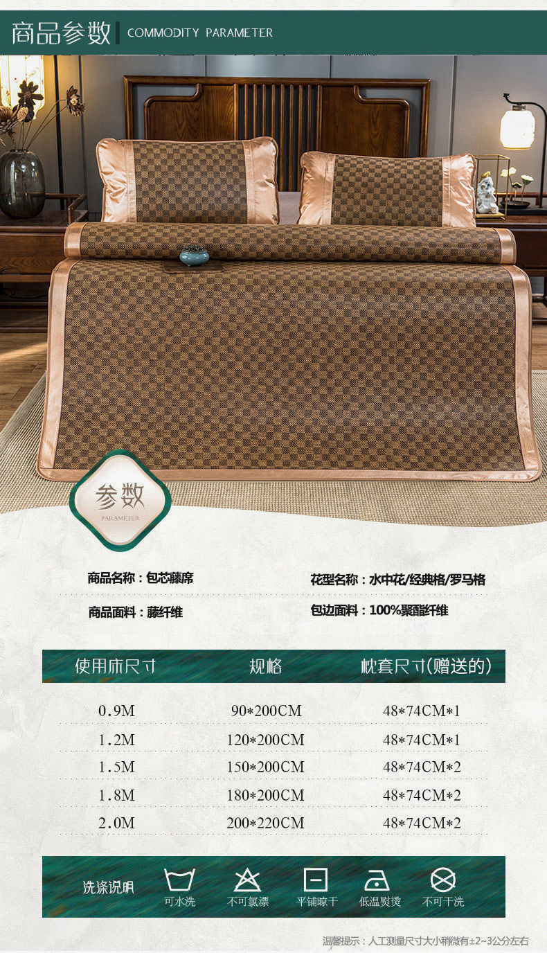 【立减一百】赠送运费险,【超值三件套】高性价比、凉而不寒,亲肤藤席,光滑无毛刺,无荧光,0甲醛,编织感强,生态原料,更透气,更舒适~【赠运费险】