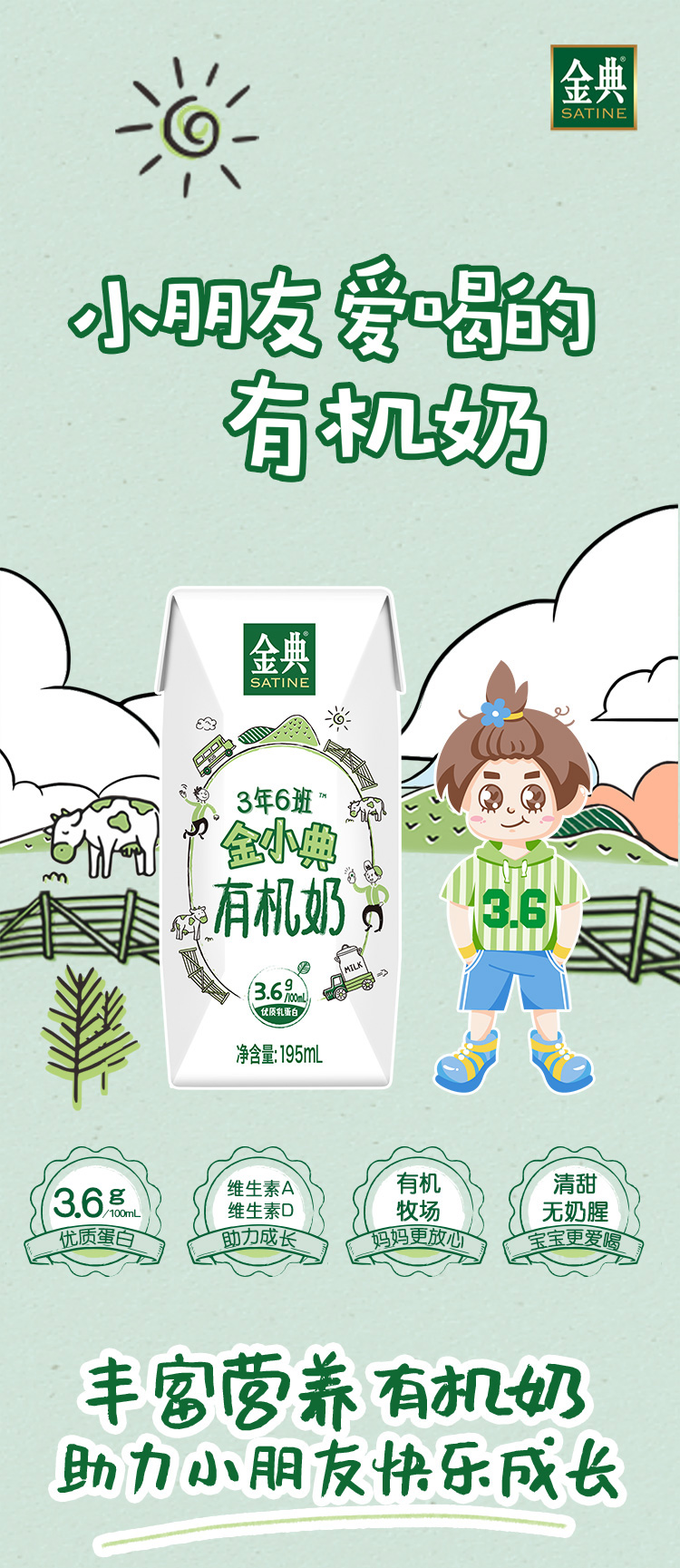 【拍下立减30,可叠加88-5】3年6班伊利金小典有机奶!达人喝金典,小孩喝金小典;含有有机生牛乳+苹果汁,维生素A+维生素D;小小身材,大大营养,mini版有机奶,一次一包刚刚好!