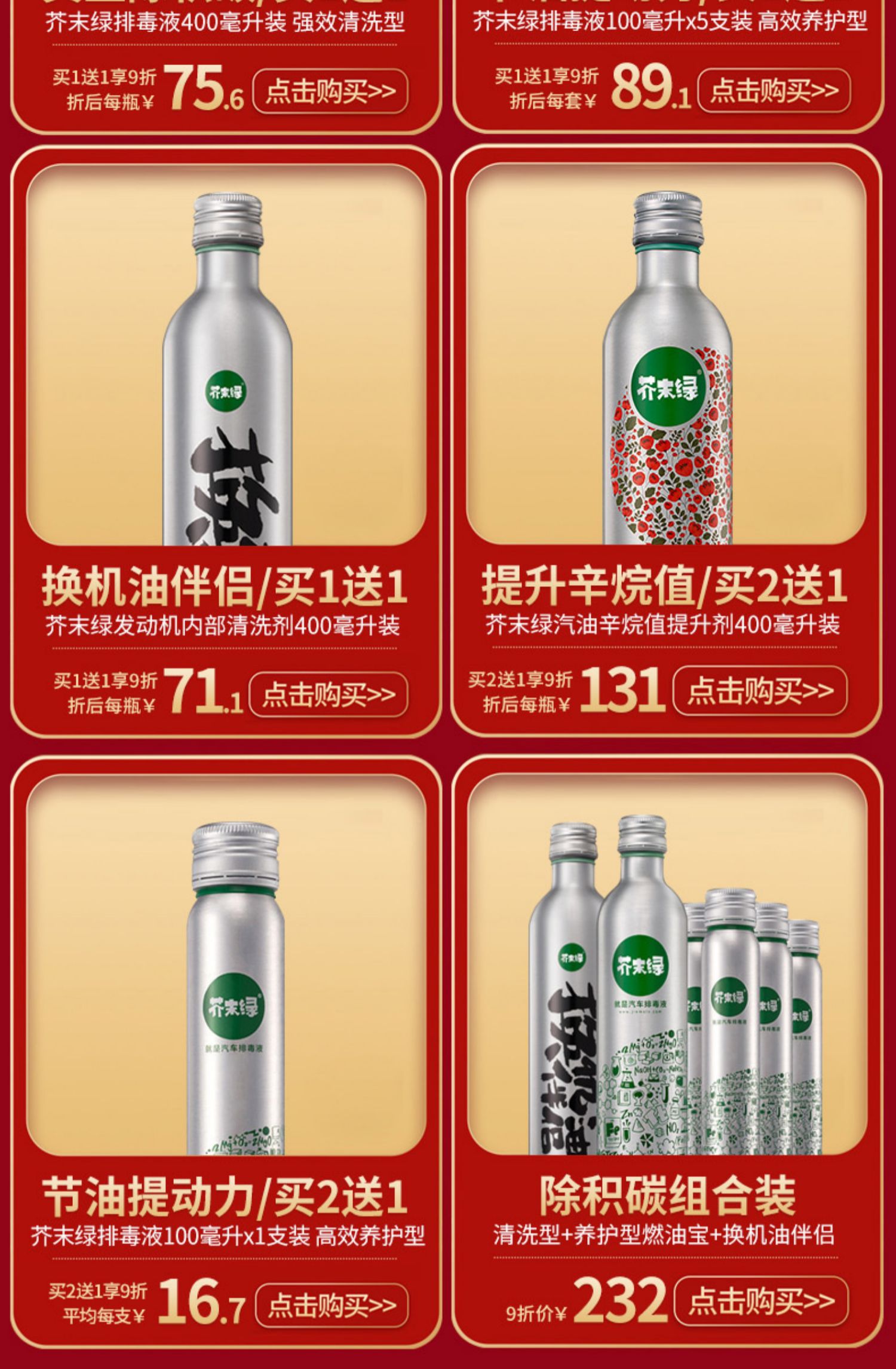 【芥末绿旗舰店】活动价来了!!!拍2发3,拍4发6,高端版聚醚胺改善物化,保护引擎,清楚积碳,效果显著,节省耗油,提升动力,改善燃油分子链燃烧更充分,降低耗油,减少排放,实力派节油。【赠运费险】