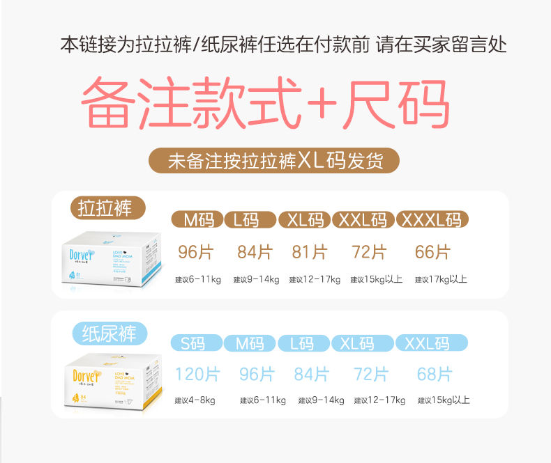 【需要纸尿裤可以备注纸尿裤+尺码】多爱夏季超薄干爽透气婴儿拉拉裤,超薄全芯体,不断层,不起坨,不侧漏,透气干爽,尺码齐全,妈咪放心购,告别红屁屁!