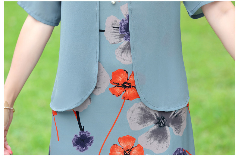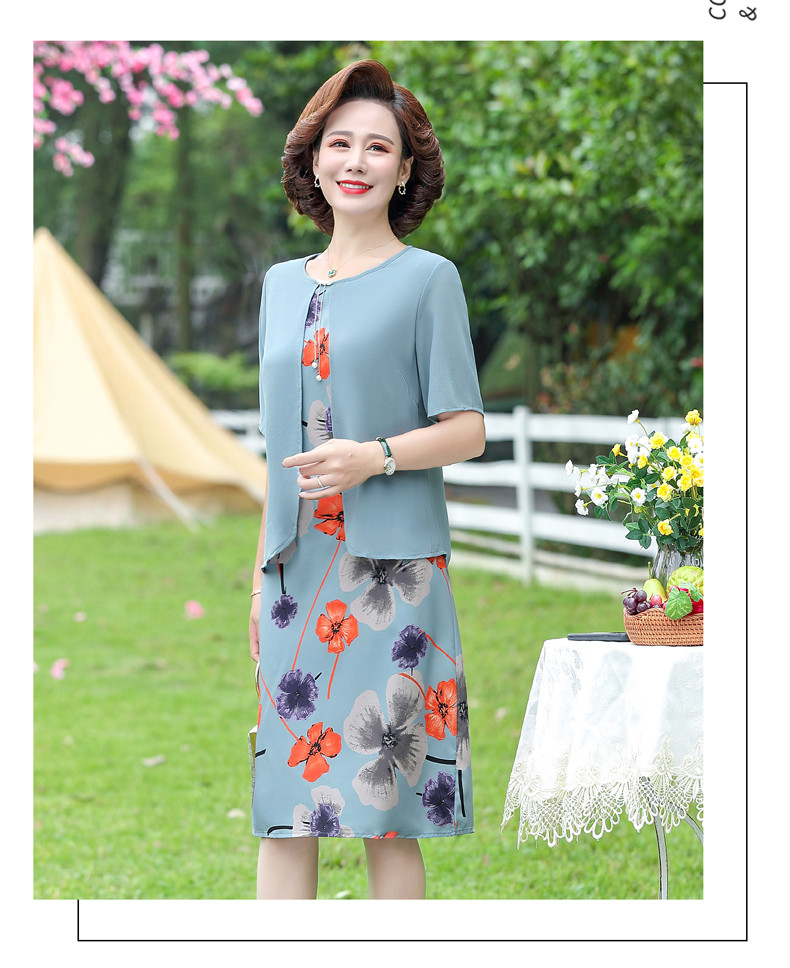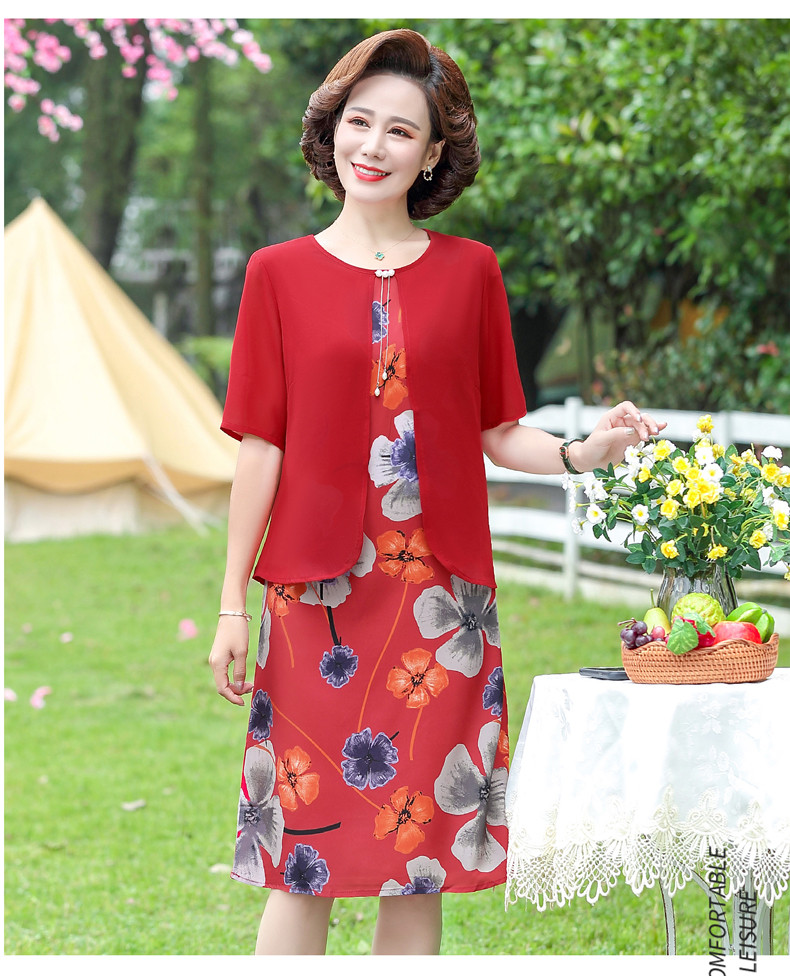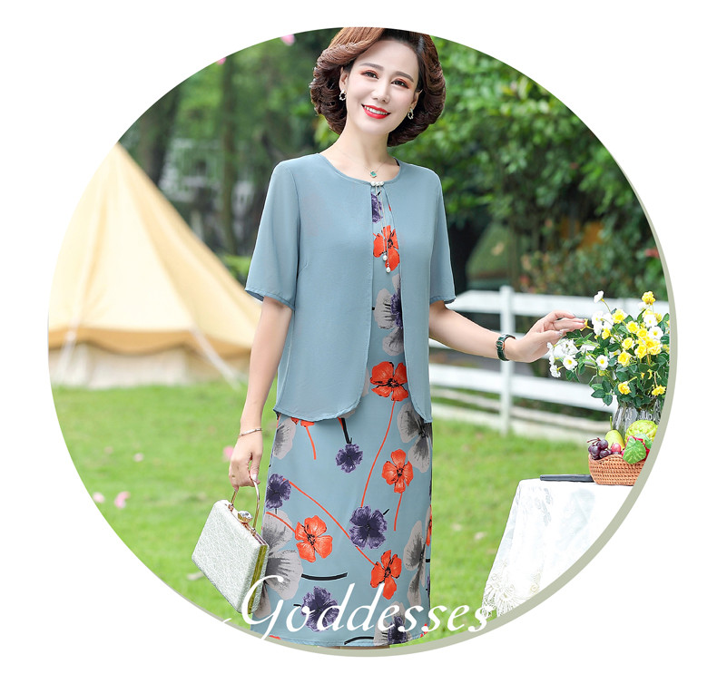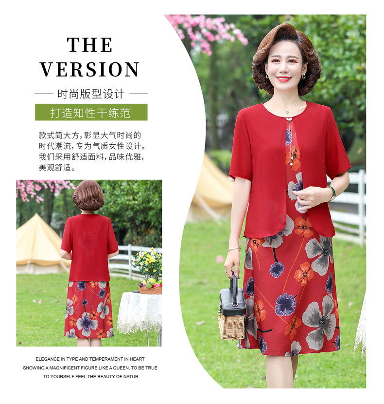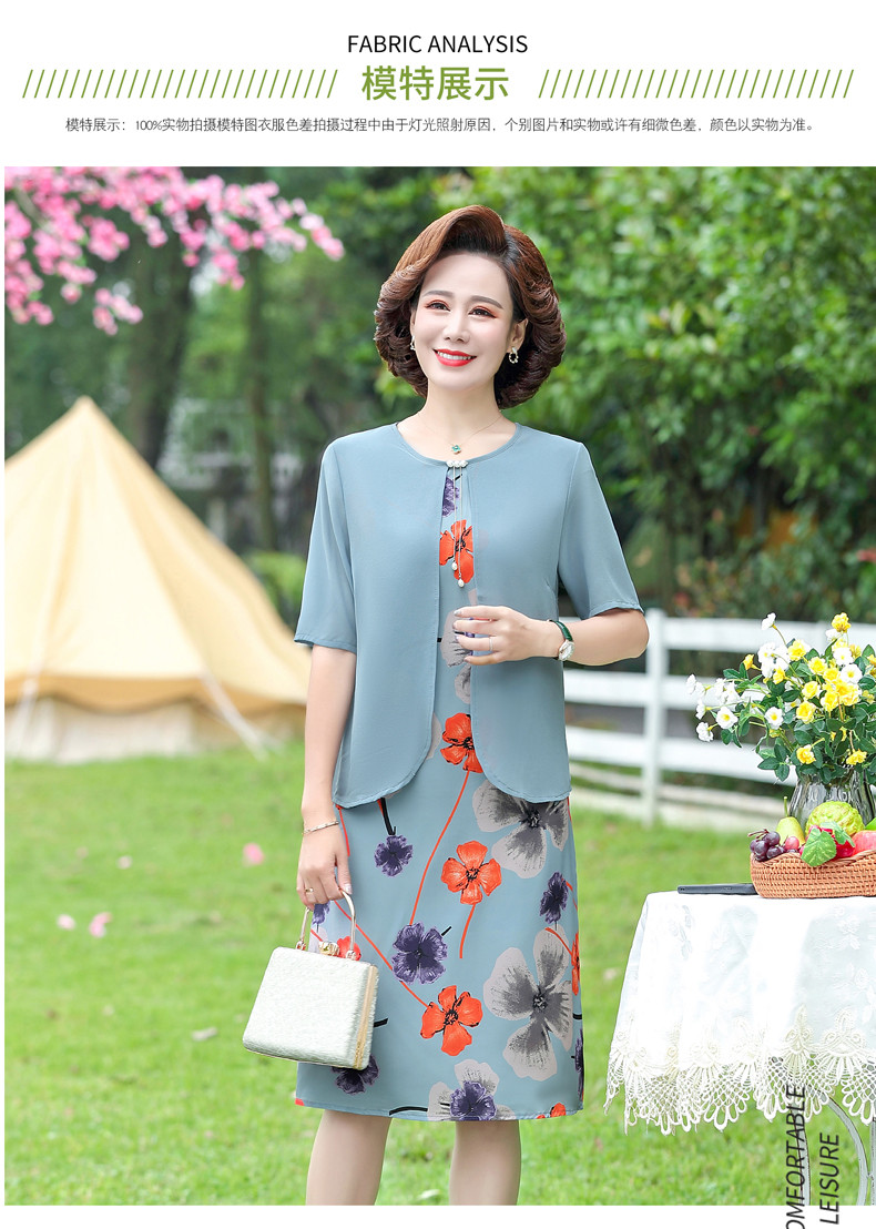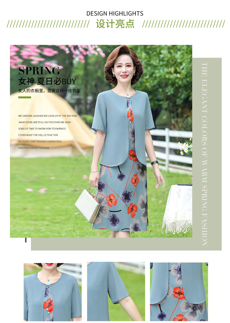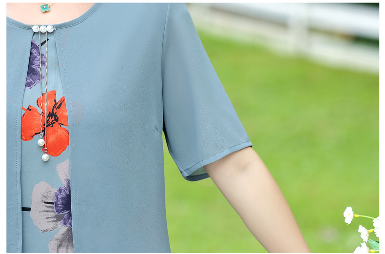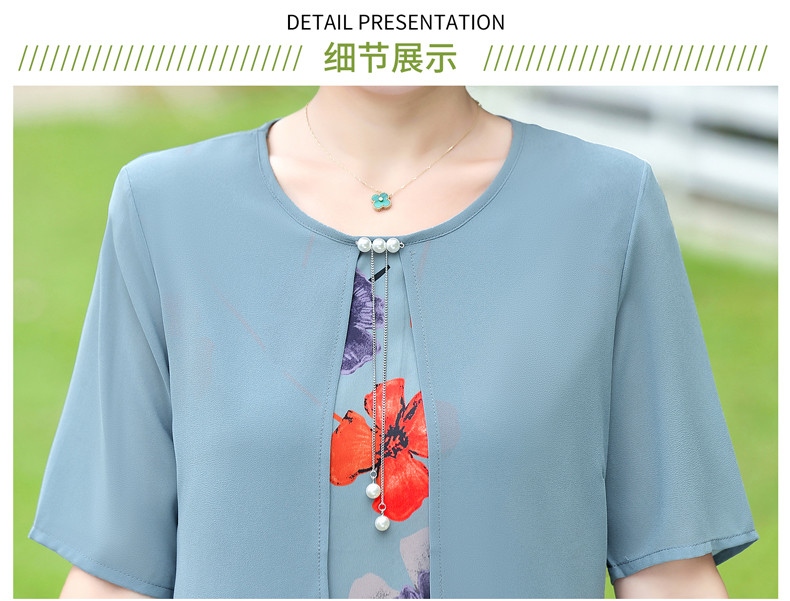 优质雪纺、舒适透气、轻盈柔和、修身显瘦、时尚优雅、大方得体、让妈妈也重回一下青春!