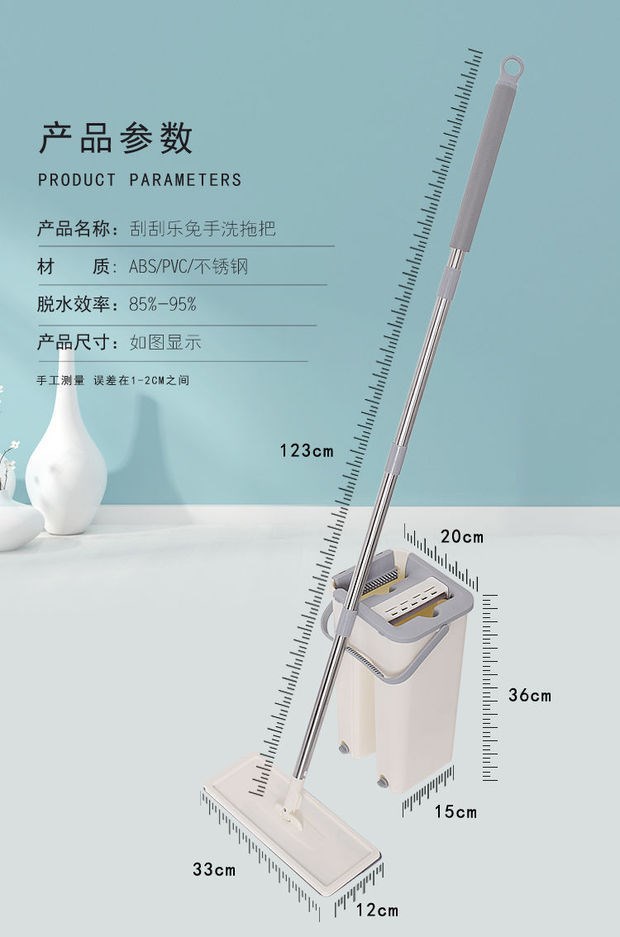 免手洗拖把,全程不碰水,不脏手!只需上下几下,轻松清洗、脱干!优质不锈钢杆,360度旋转接口,加厚拖布,超强去污,洗脱合一,省时省力【七天无理由退换】