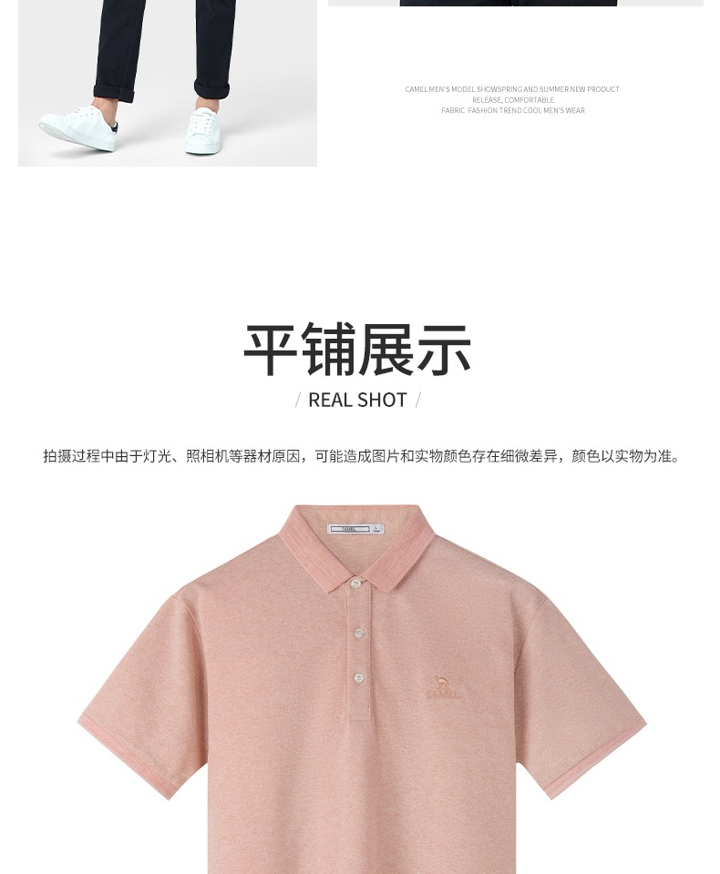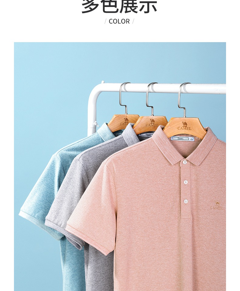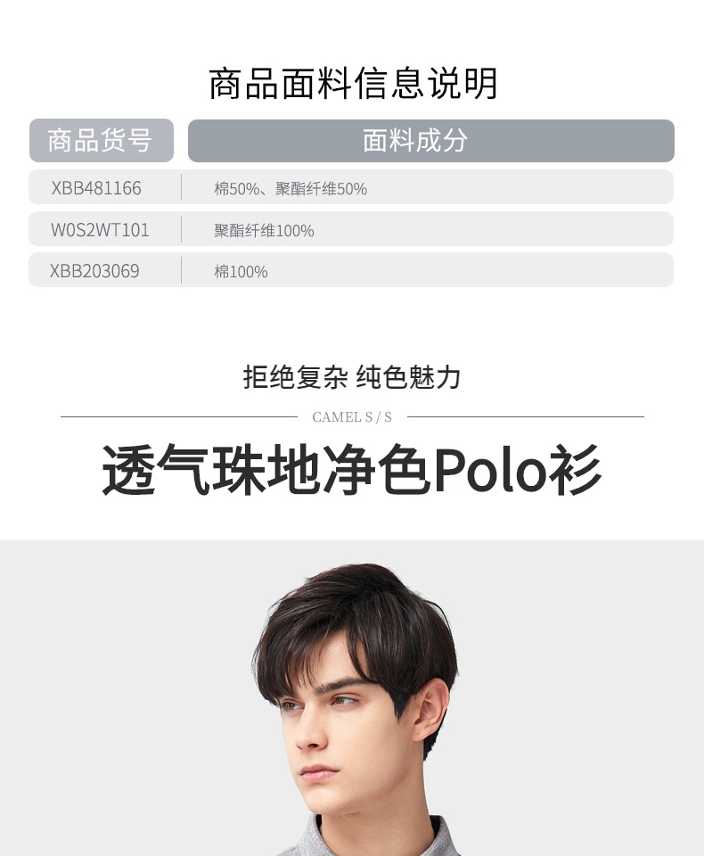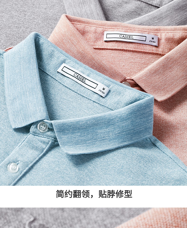 【骆驼男装旗舰店】骆驼短袖Polo衫,时尚简约又不失商务休闲,针织珠地布面料,亲肤舒适,吸湿透气,好穿不闷热~还是三排纽扣翻领设计,立挺有型,上身超帅气!【赠运费险】