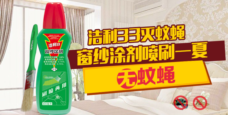 洁力33正品,洁利33灭蚊喷雾剂,杀蚊驱蚊药水,纱窗涂剂除驱蚊子药家用,喷刷两用,灭蚊蝇,送刷子。
