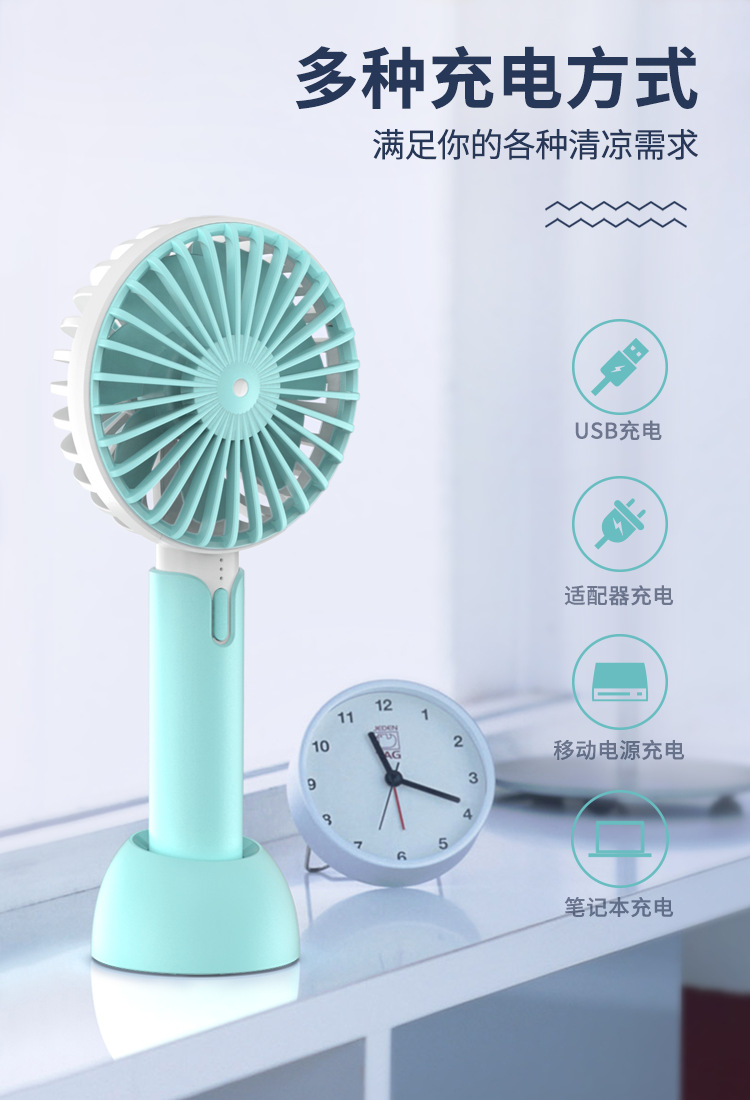 送1200Ma电池,送充电线、底座】三档大风力,超长续航,可外出携带使用,低噪静音,自然柔风,便携陪伴,冰凉手感!