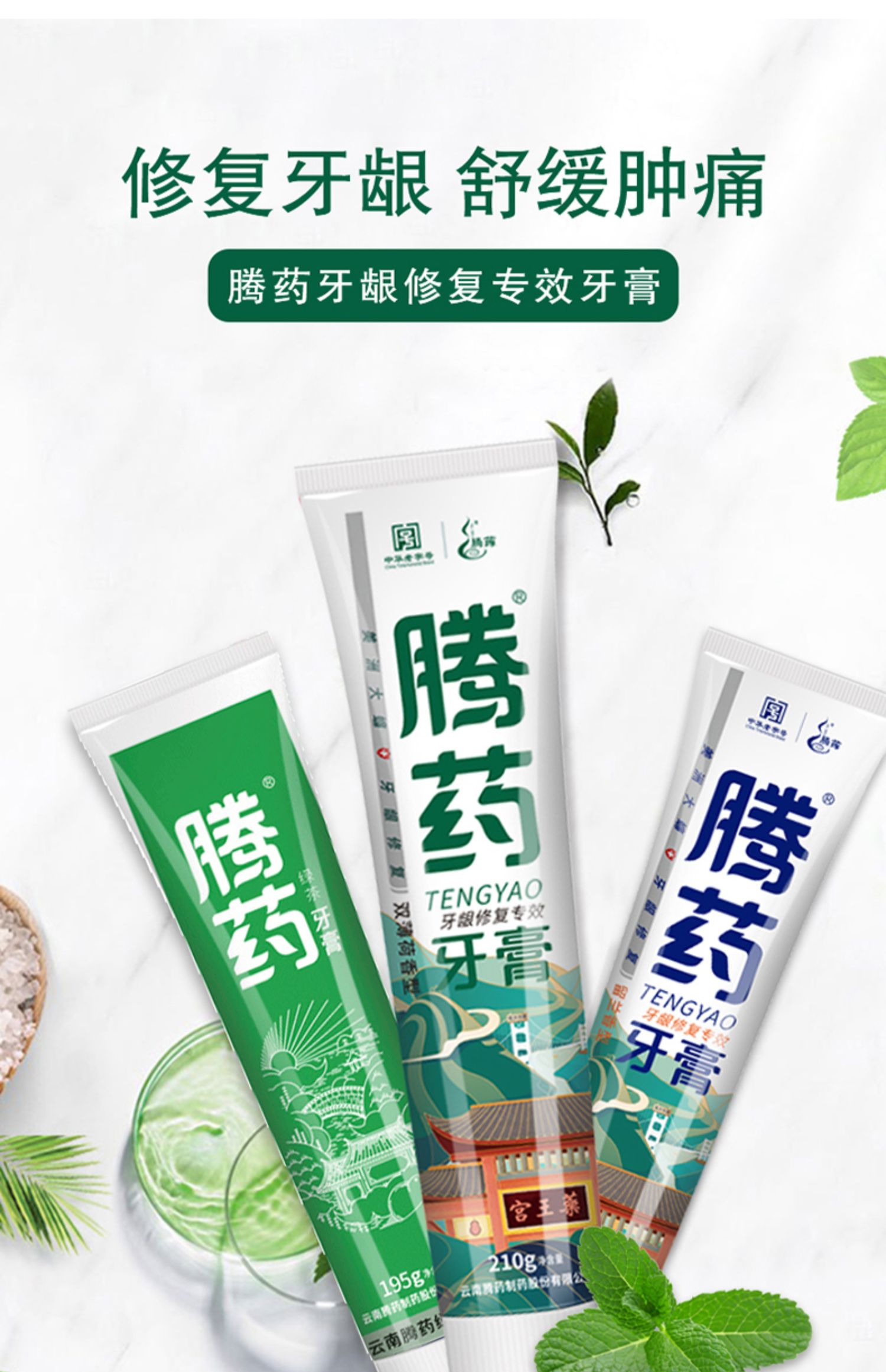 【90g*2留兰香,90g*2双薄荷香,4支旅行装小牙膏,8支总的460g】中国商标~认证专利,腾药牙膏缓解牙龈萎缩,修复口腔黏膜溃破,牙龈出血,去热清火,清洁口腔,去口臭,去异味,口气清新!
