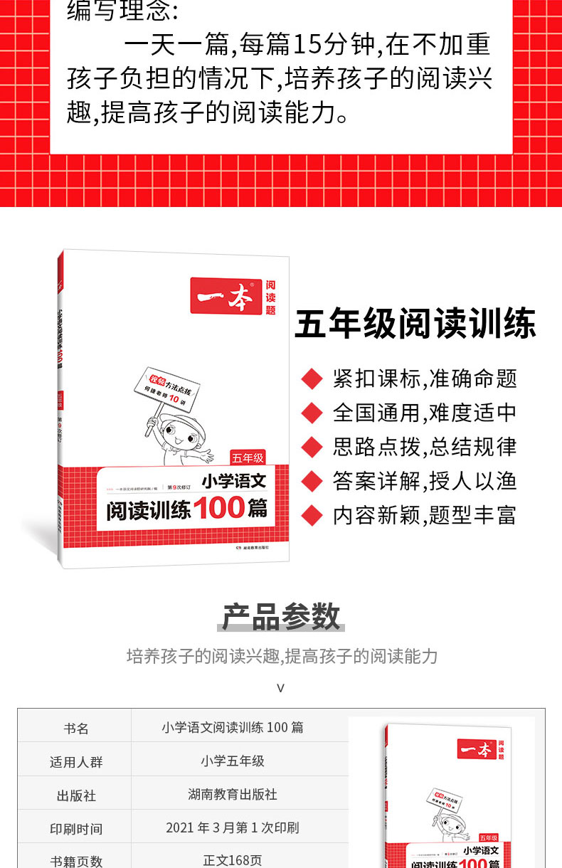 【新华书店旗舰店】小学5年级,2021版【一本】小学语文阅读训练100篇,第8次修订,小学生教辅书,同步教材含参考答案,新华正版!印刷清晰,百所名校特高级教师鼎力推荐,新华书店正版!