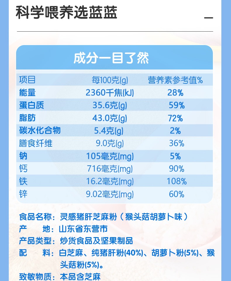 三只松鼠旗下母婴辅食品牌,小鹿蓝蓝宝宝含铁拌饭料调味料猪肝粉,40%纯猪肝粉,山珍调味,高铁高钙高锌,营养好吸收,宝宝爱吃的拌饭料调味料!
