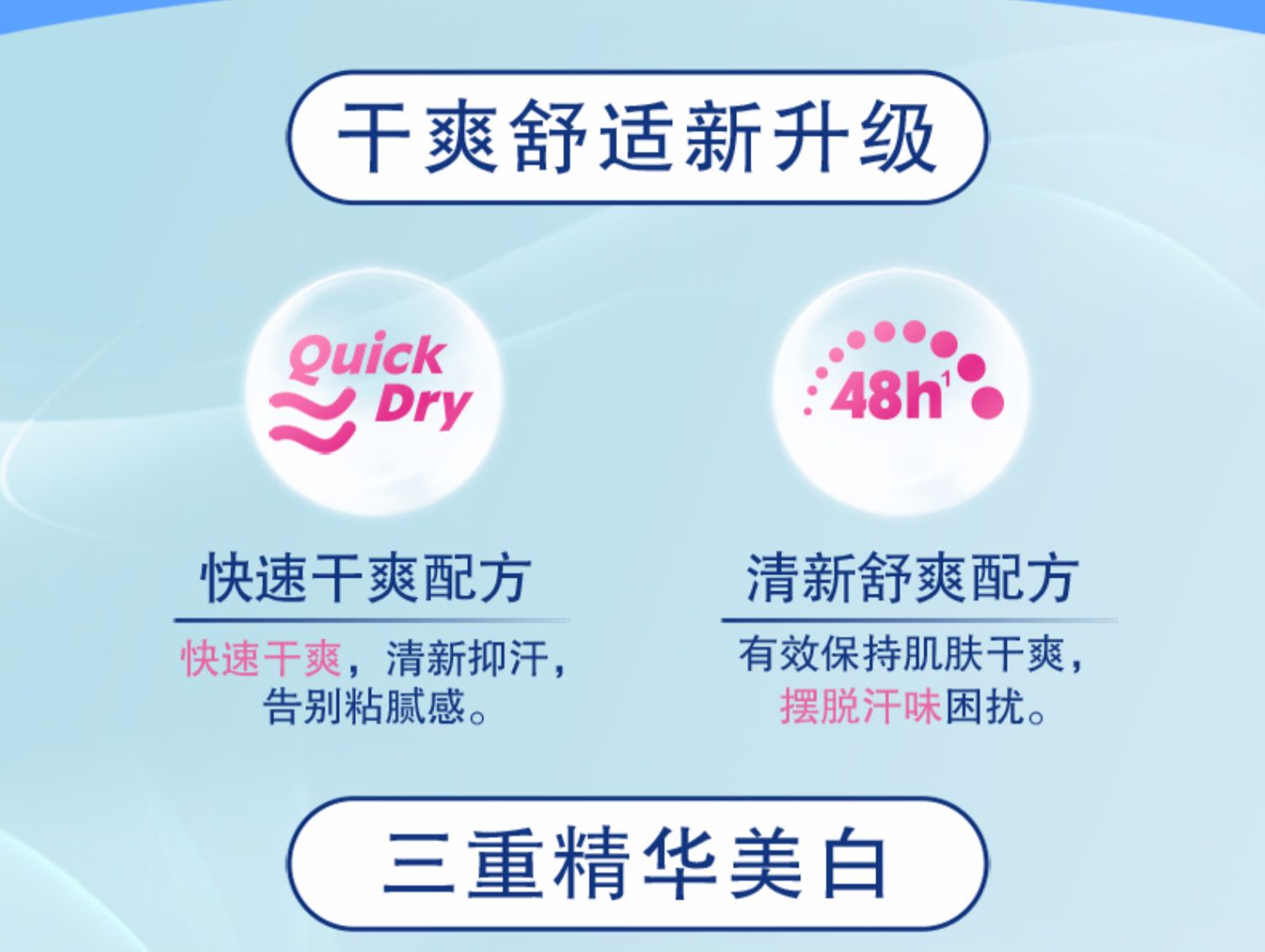 【买2赠1】大牌品质,清雅淡香,快速干爽,持久抑汗,告别粘腻感,三重精华美白,改善皮肤暗沉,提亮肤色。多钟场合使用~适合任何肌肤
