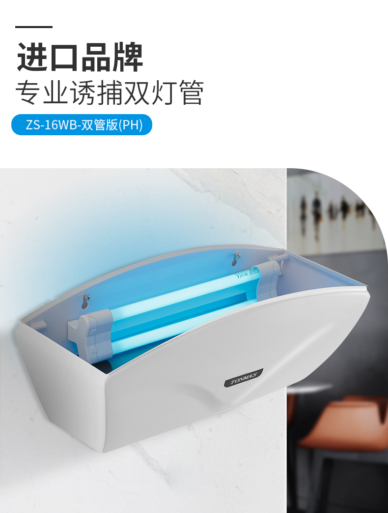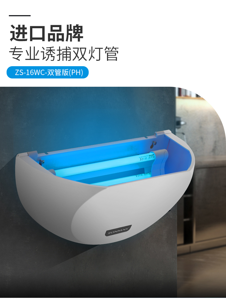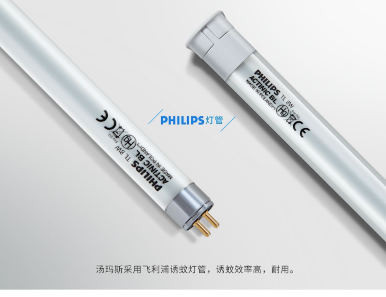 外观设计专利+阻燃外壳+飞利浦灯管,高端灭蚊器品牌,环保ABS阻燃料,飞利浦核心配置,诱蚊光波,省电环保,静音,安全,卫生,便捷,强力粘捕纸,体积小,覆盖面积大