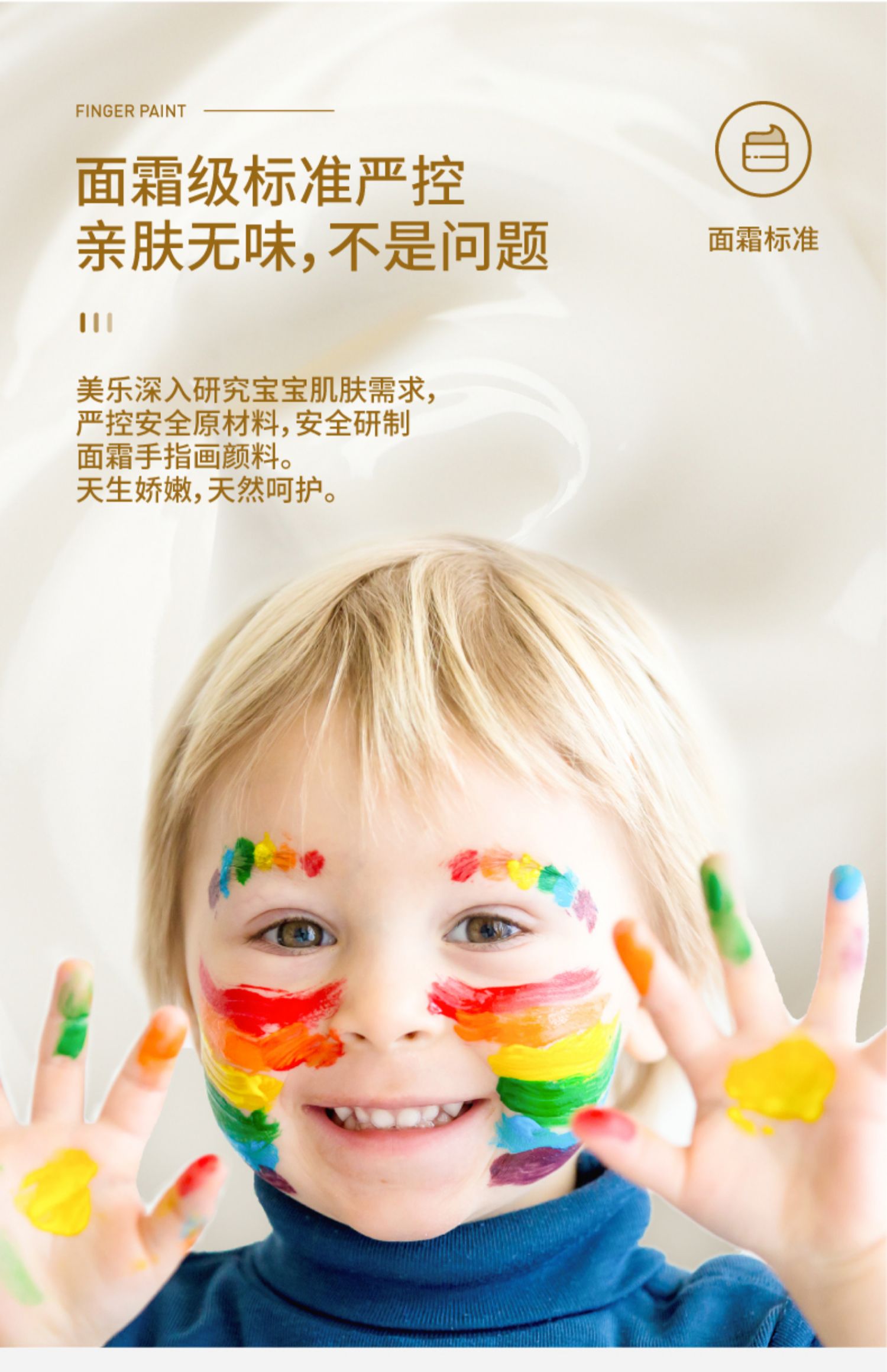 美乐面霜手指颜料,可水洗无异味,敏感肌小宝宝也能安心涂鸦,面霜级标准严控,亲肤无味,安全色素!