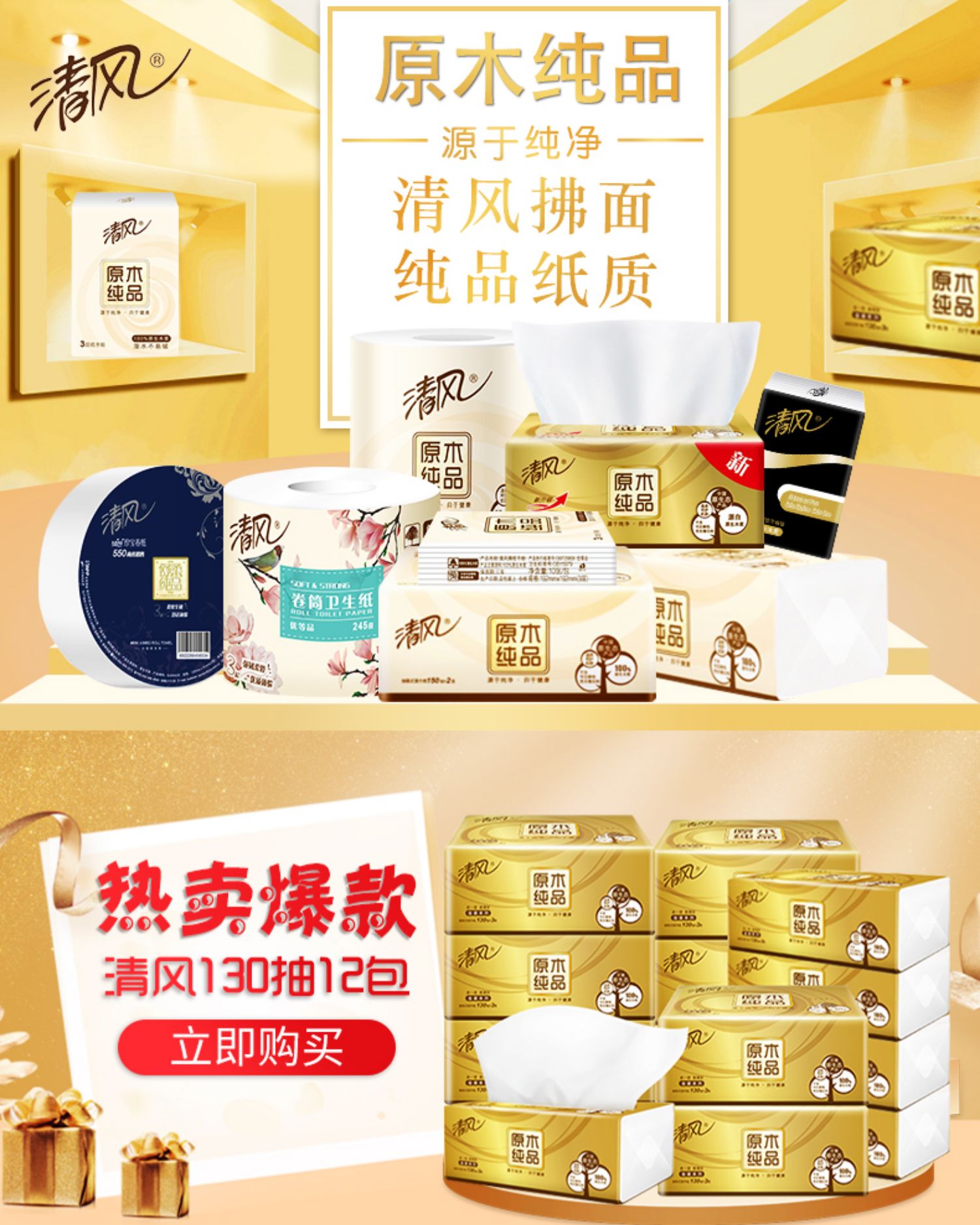 清风高档厨房卷纸,可当抹布使用的卷纸,吸油更快,吸水更多,原生木浆安全品质,减少细菌滋生,对肌肤零刺激,让家务变得更轻松哦!