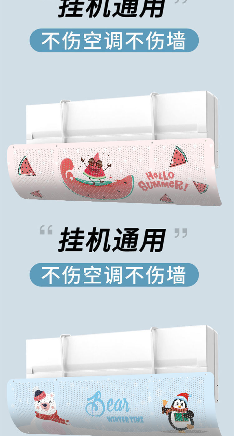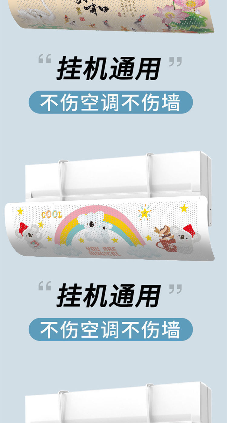 【立减100】赠送运费险,空调直吹是有很多危害的,而且夜里太凉容易感冒,快安排空调挡风板,不挑机型不挑尺寸,多款图案可选,适合所有挂壁式空调,尽享冬暖夏凉!【赠运费险】