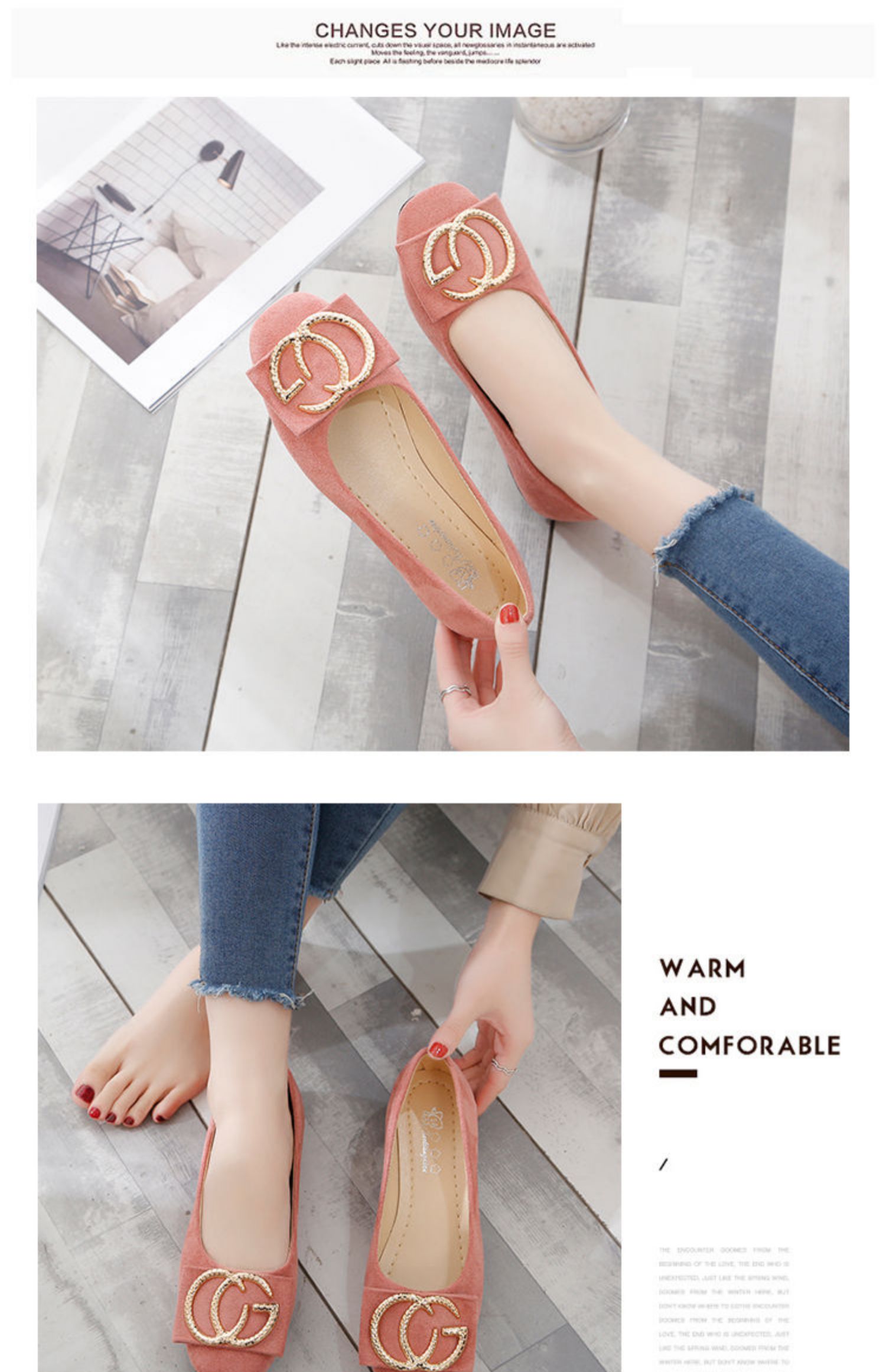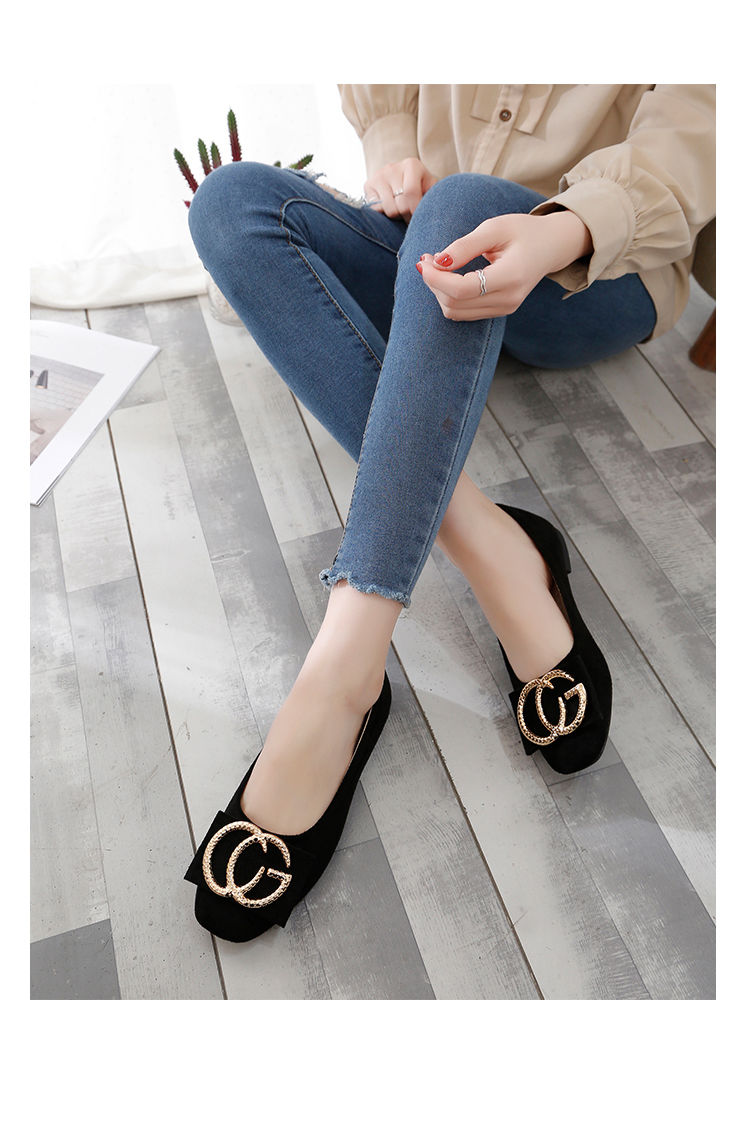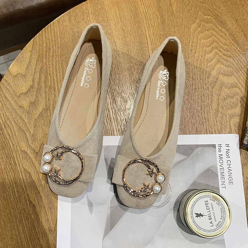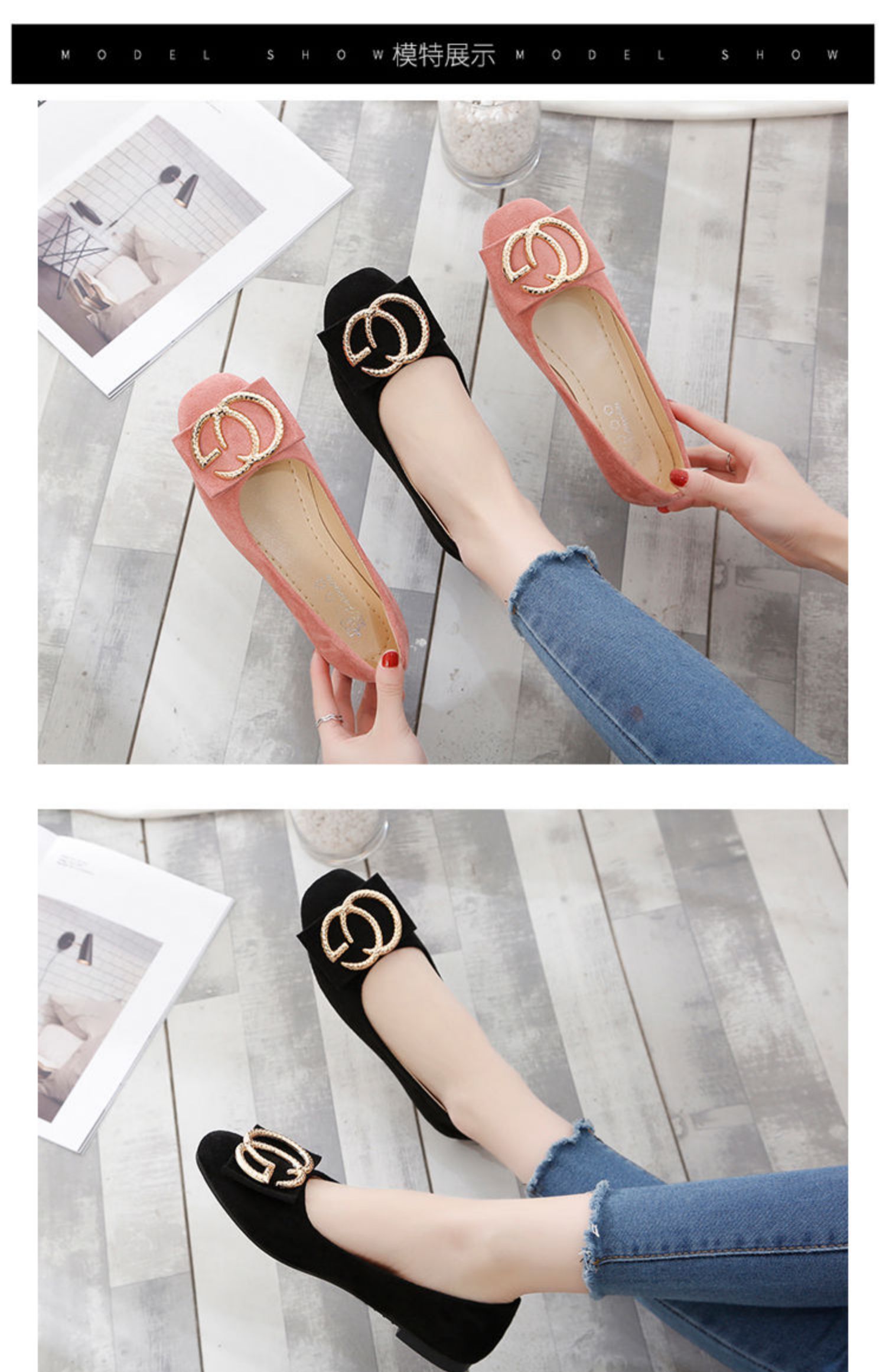 平底鞋浅口方头软底鞋休闲工作韩版豆豆鞋女