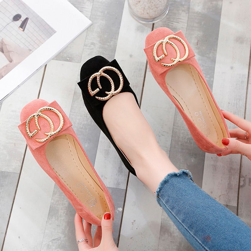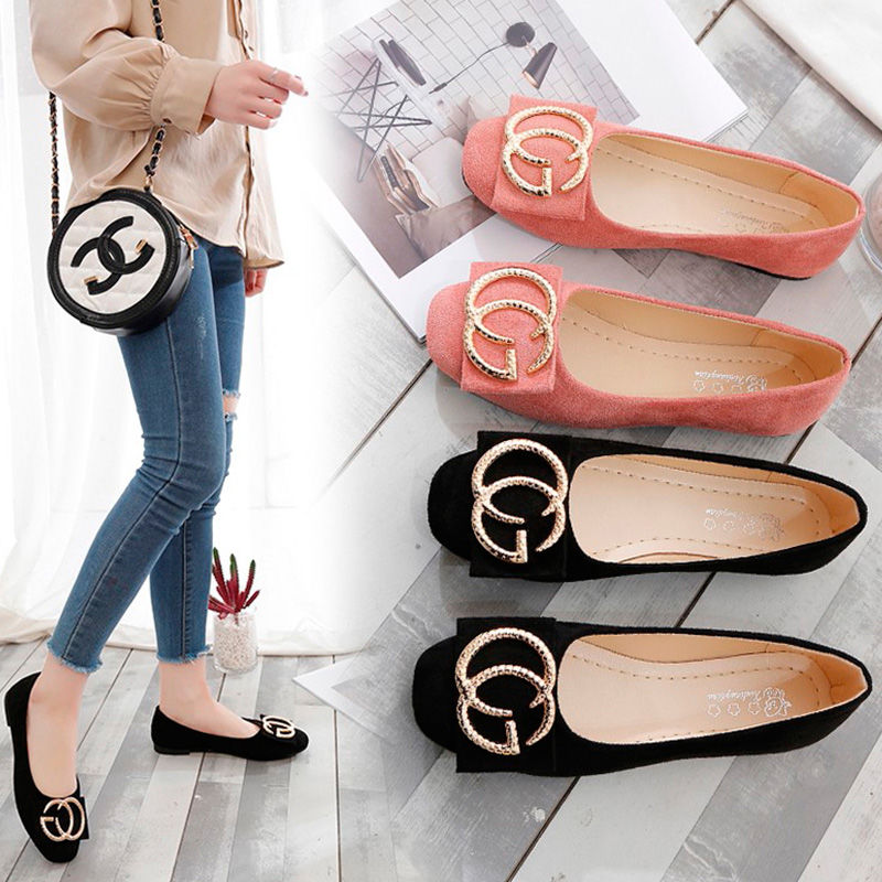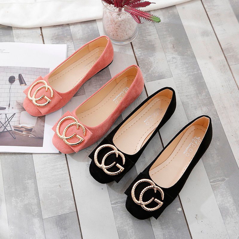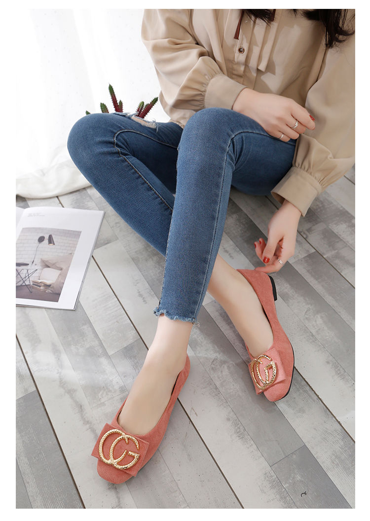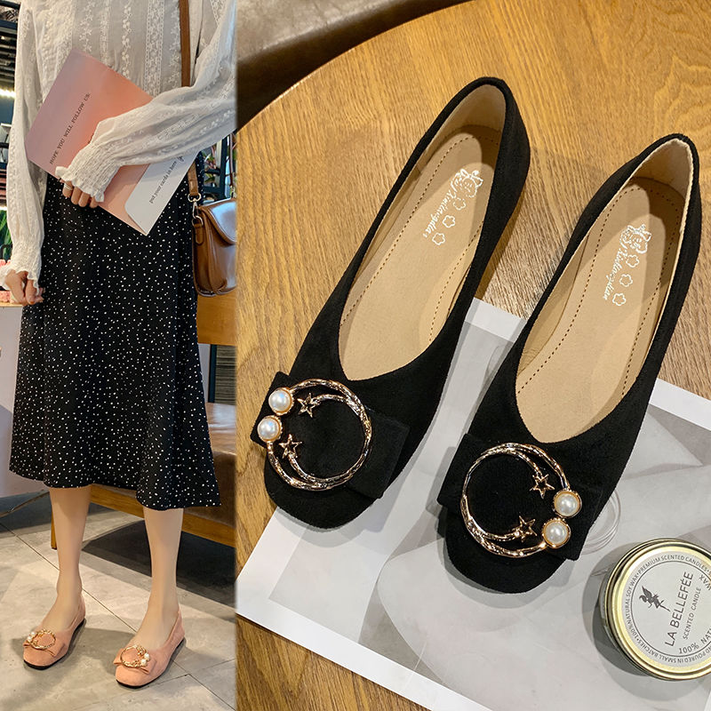 平底鞋浅口方头软底鞋休闲工作韩版豆豆鞋女