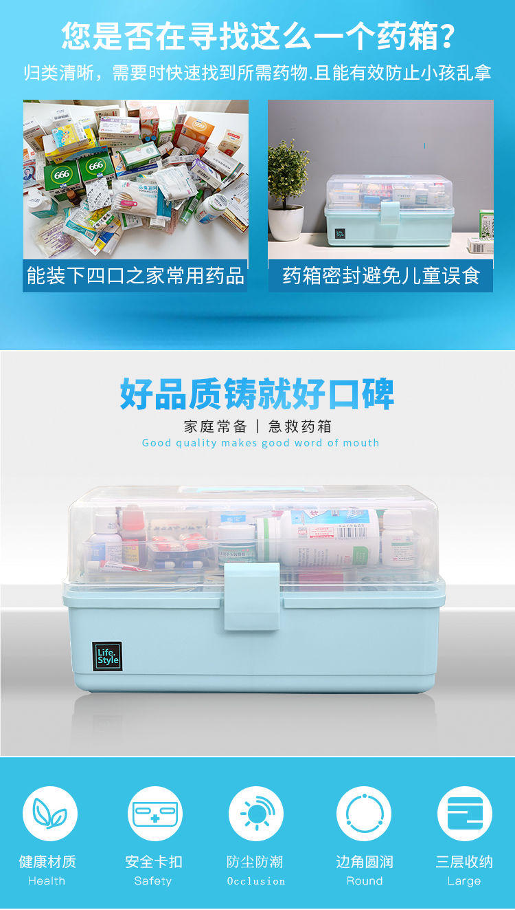 猫旗舰店出品;优质pp材质,颜值高品质好,双层设计的,上下分层,拿取方便,卡扣设计,牢固耐用,便携实用,买一个放家里,收纳药物超方便!再也不用到处找药了!
