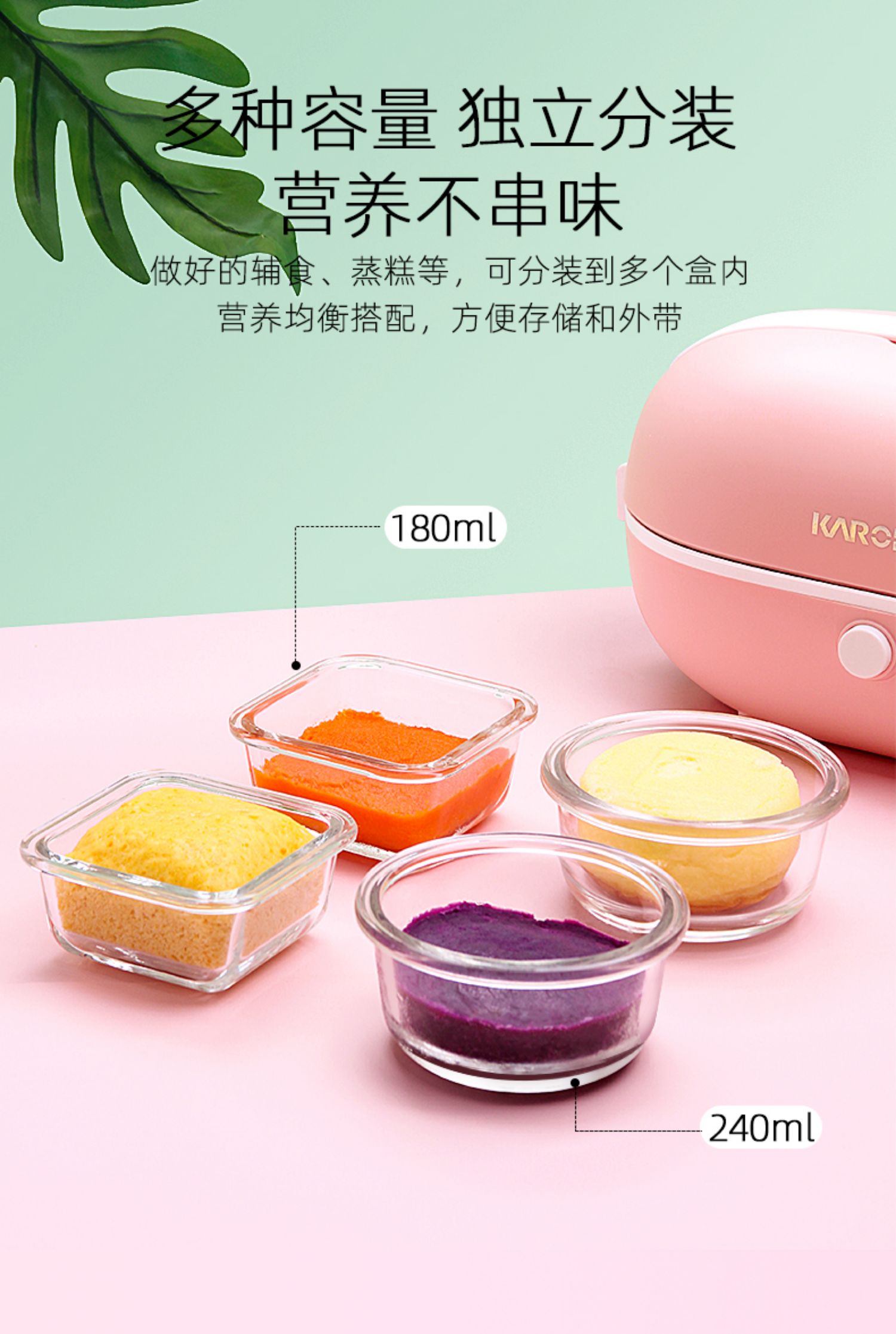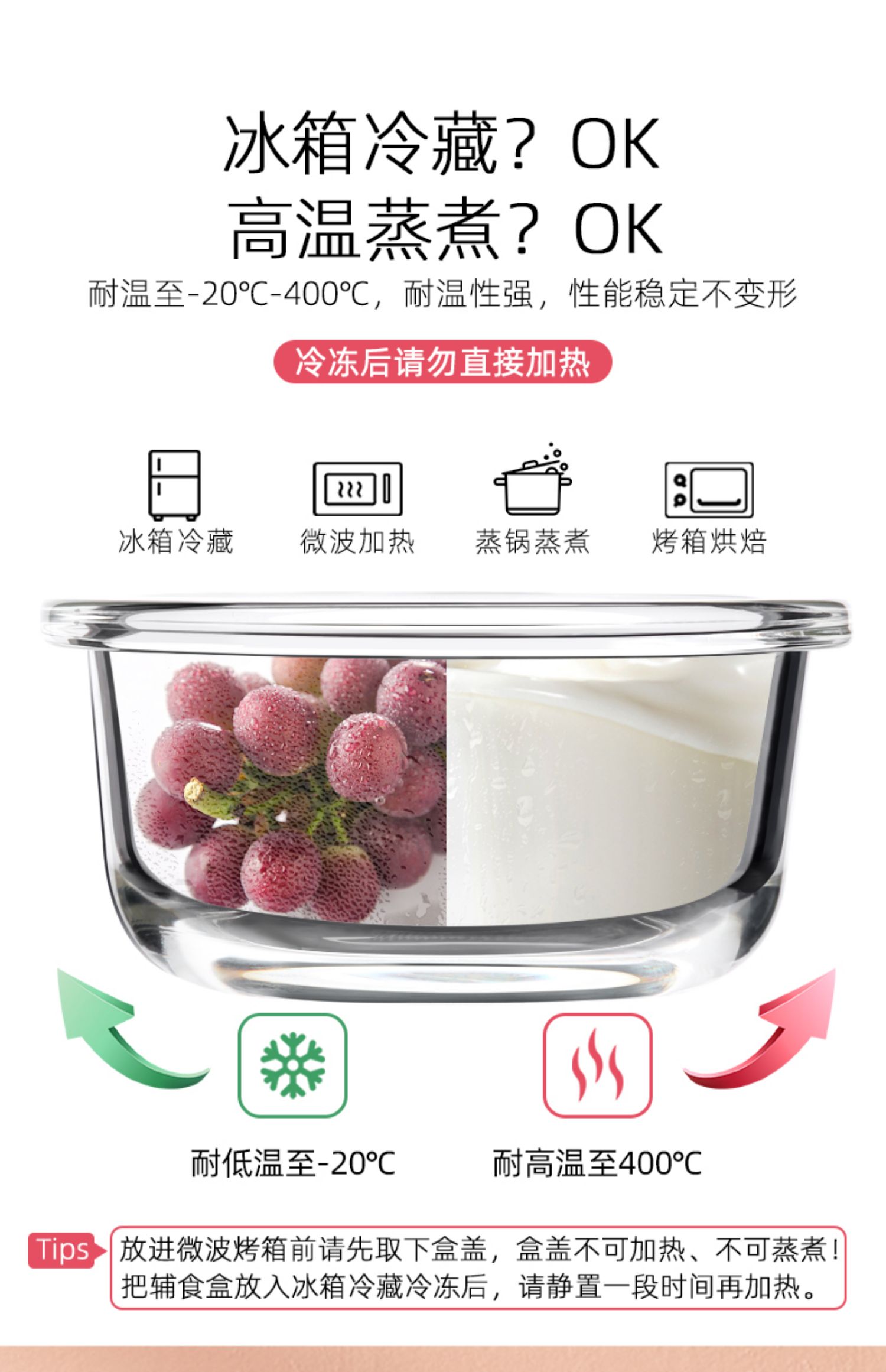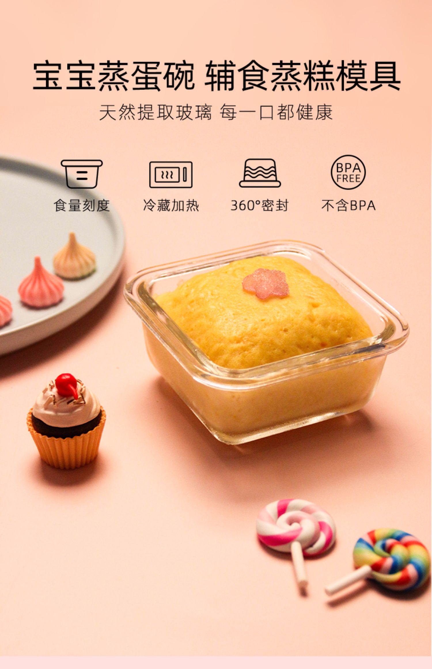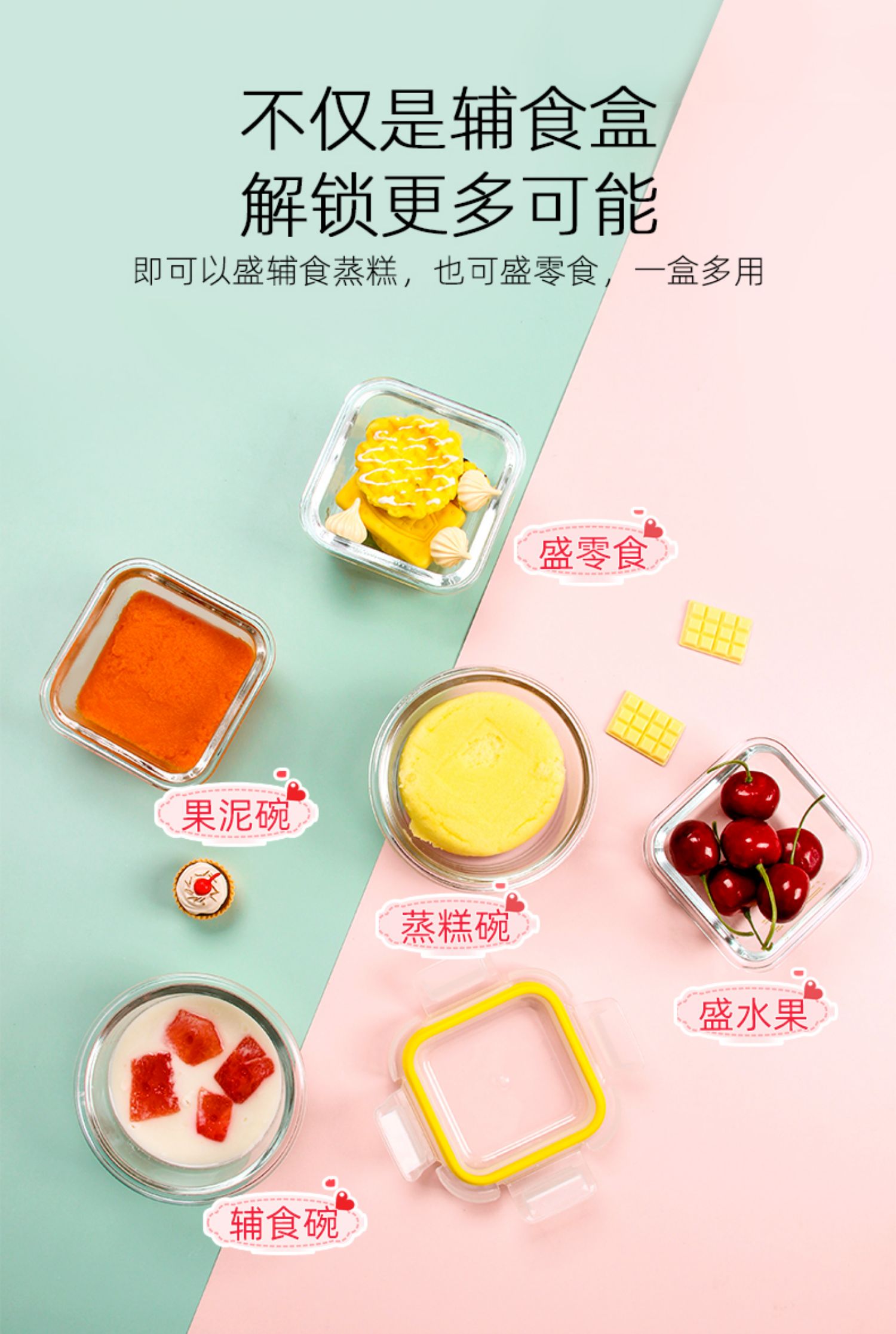 玻璃可蒸蛋糕容器,耐热高温辅食盒,小小高颜值!耐热耐摔,分类储存,密封锁鲜,方便外出携带,安全健康,多用途,可叠放,不占空间!可婴幼儿盛餐食水果存辅食!安全放心!,