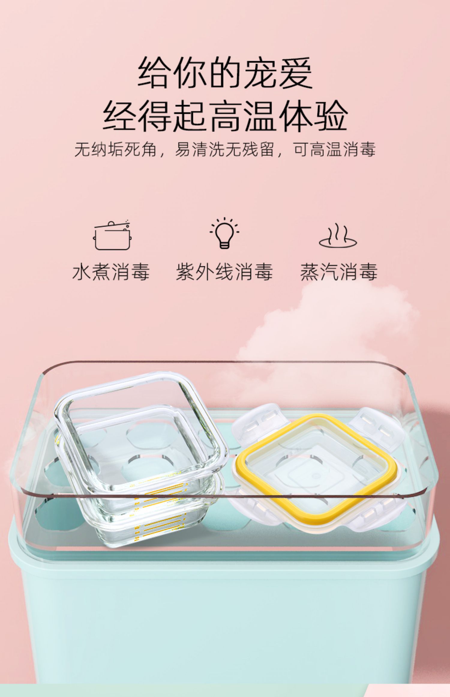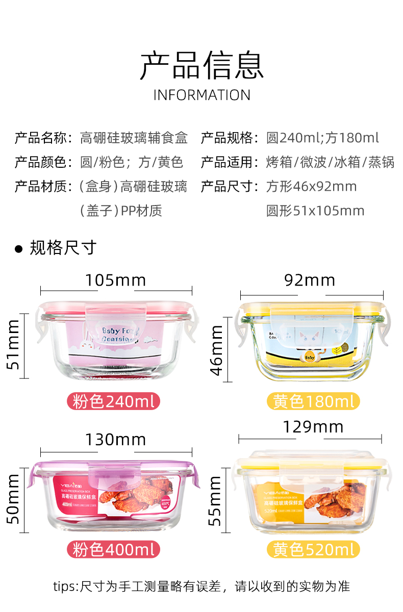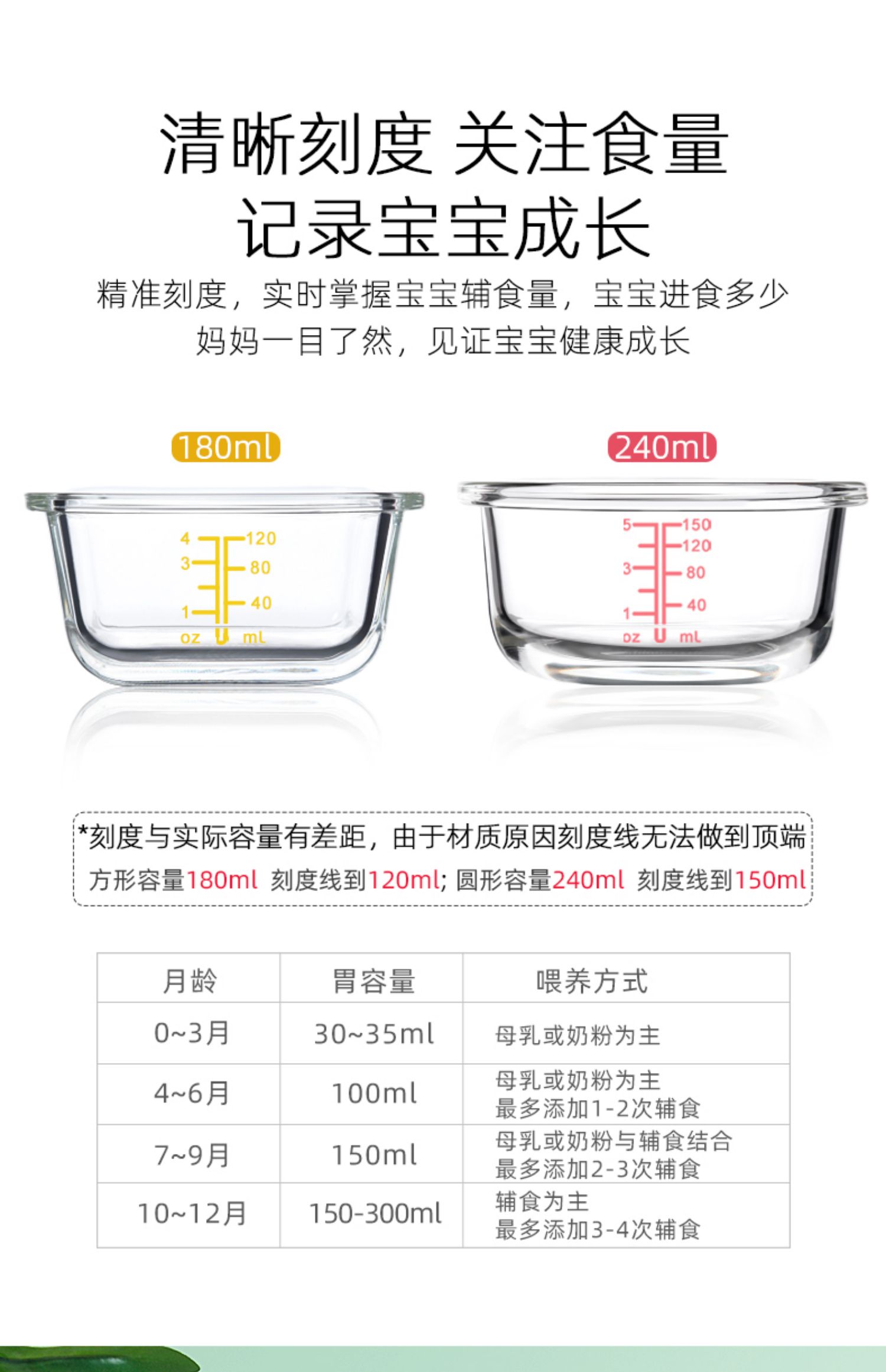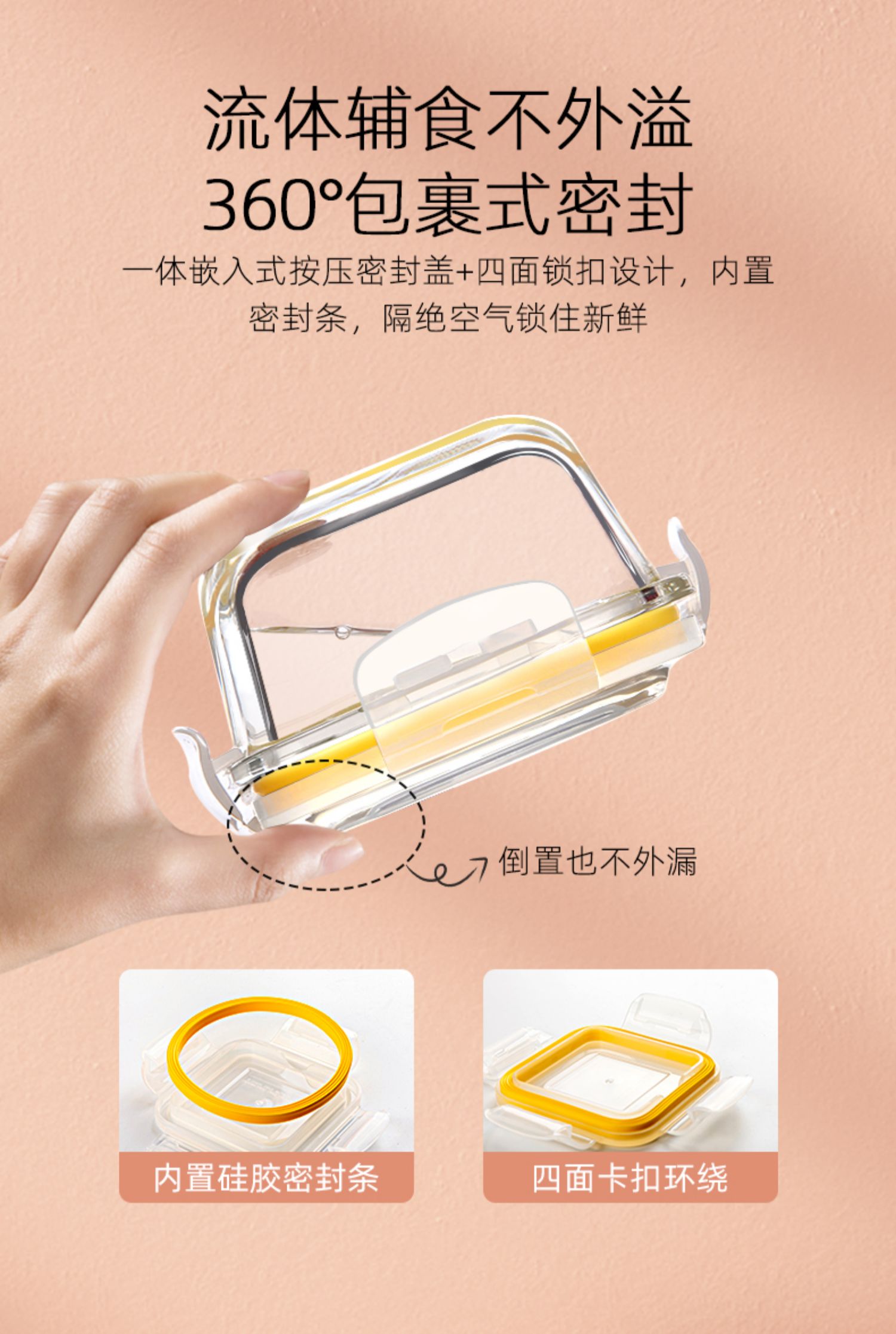 玻璃可蒸蛋糕容器,耐热高温辅食盒,小小高颜值!耐热耐摔,分类储存,密封锁鲜,方便外出携带,安全健康,多用途,可叠放,不占空间!可婴幼儿盛餐食水果存辅食!安全放心!,