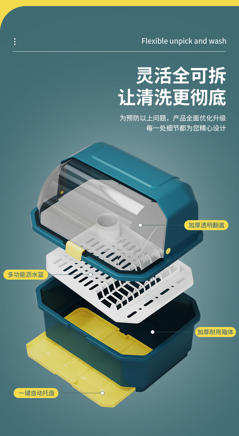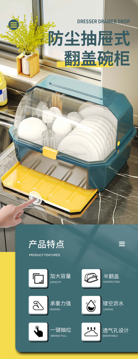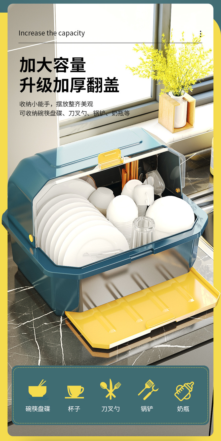 装碗筷沥水收纳盒,大容量厨房放碗碟筷子收纳架,可拆卸,易清洗,密封防蚊虫,抽屉式沥水篮,清晰更方便,多种规格可选~