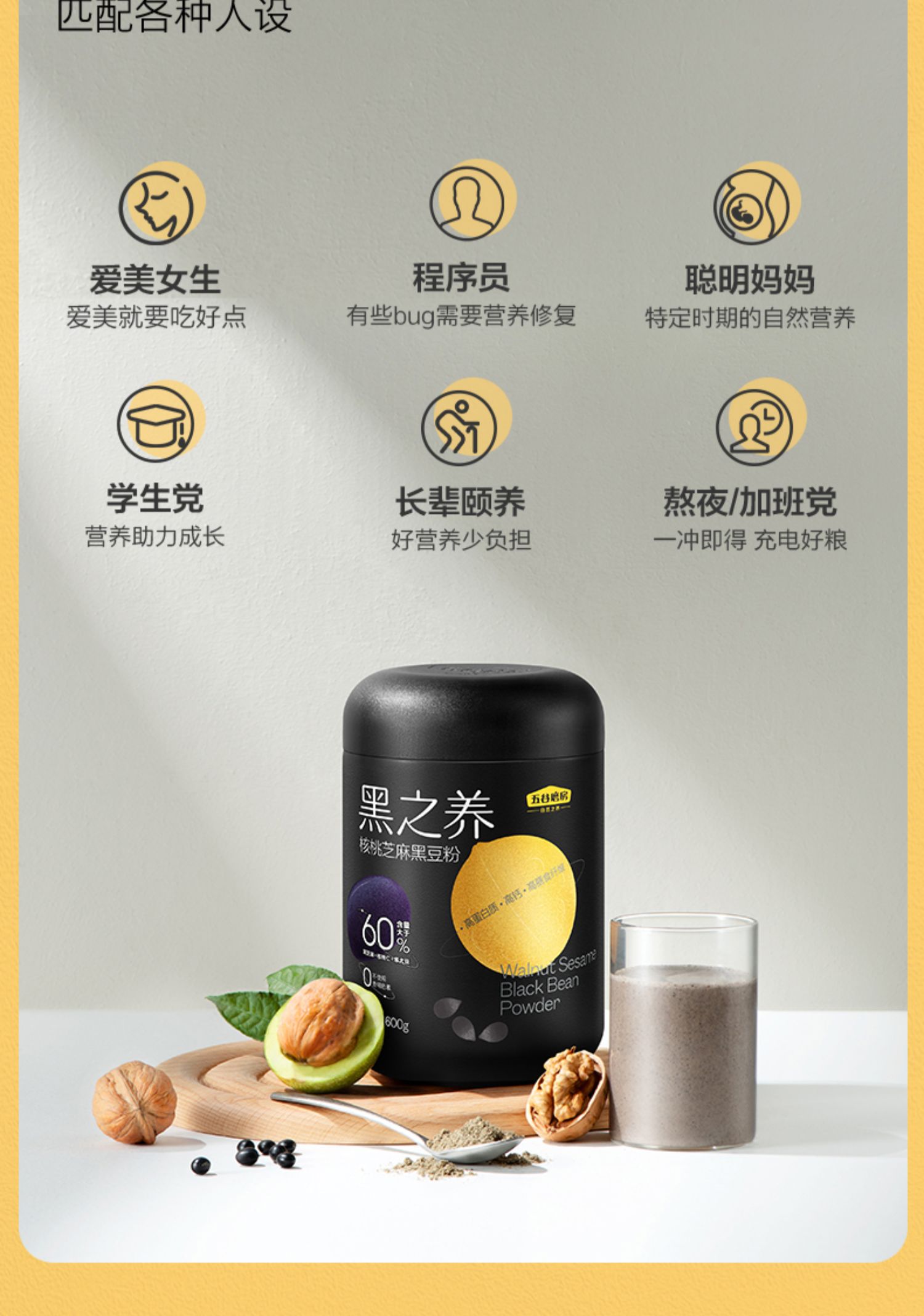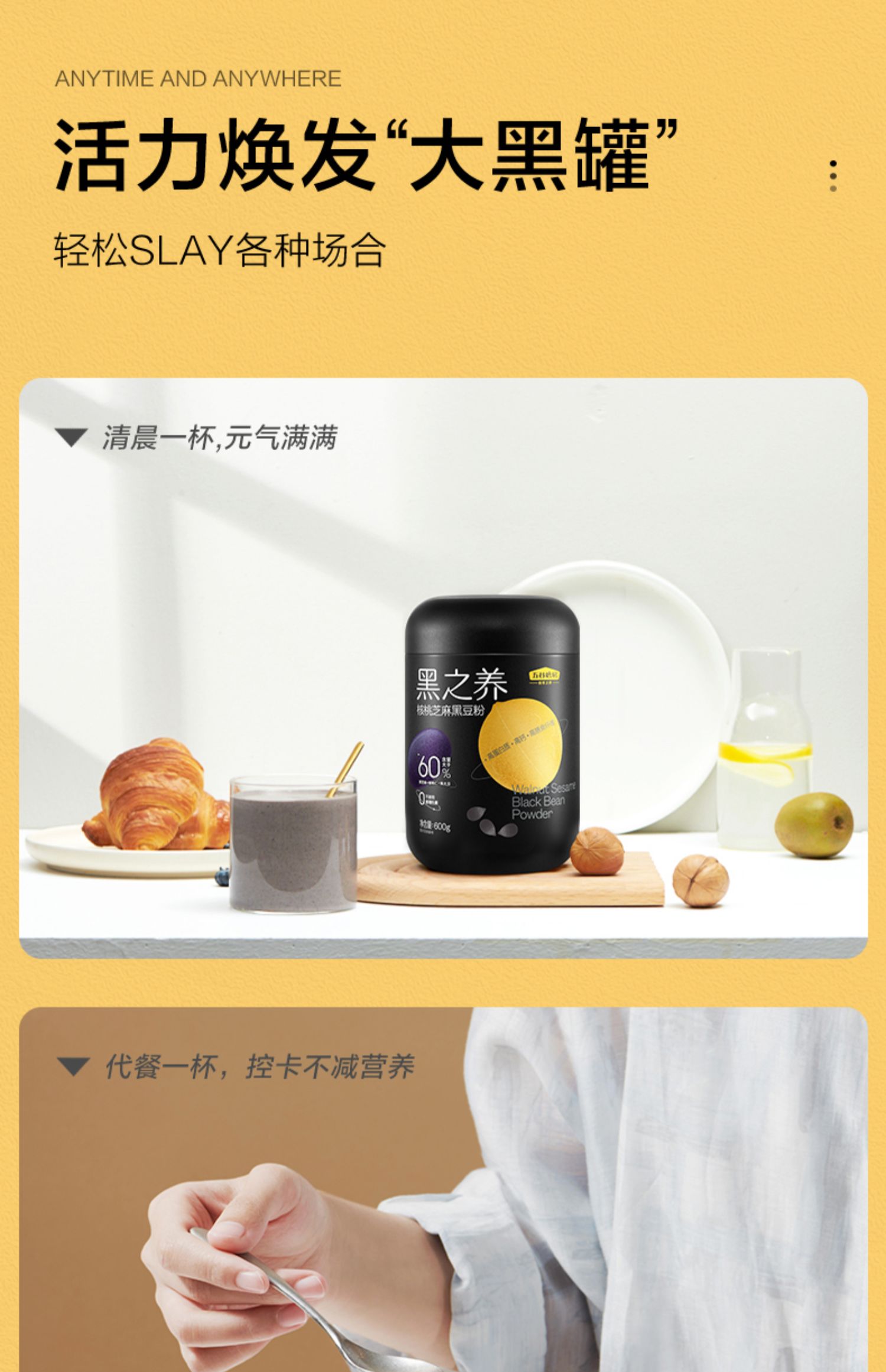 【荣获中国食品健康奖】控热量,轻代餐,热卖310万罐。进口好食材,五重黑营养,配方超强升级,用黑色力量,给你崭新希望!男女老少均可食用,早餐代餐,以黑养黑,黑发补肾,健康营养。