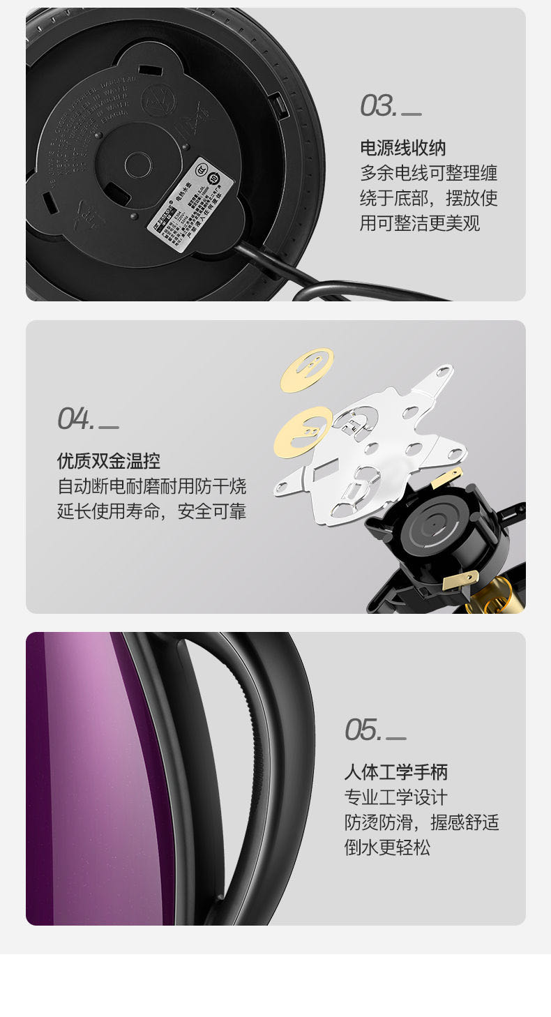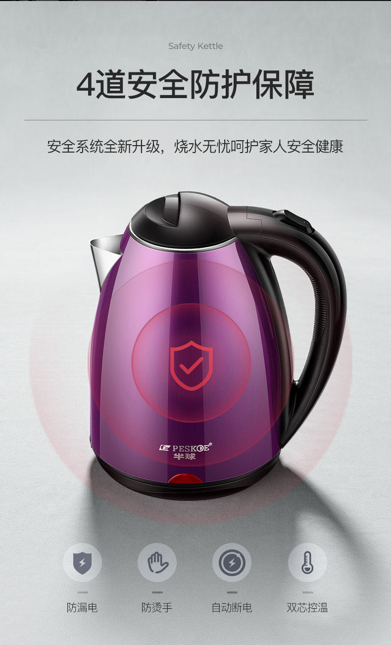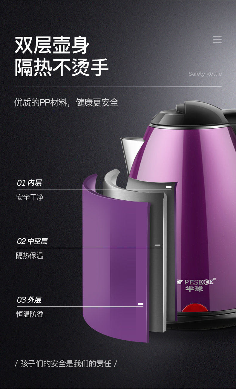食品级不锈钢,安全双层防烫壶身,2.0L黄金容量,快速烧水,隔热防烫,三重断电保护防干烧,八大贴心功能,让你爱上喝水!【赠运费险】