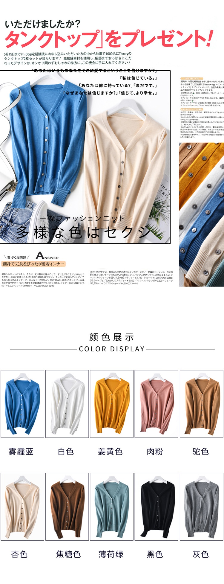 【品牌清仓】第二件0元v领女薄开衫