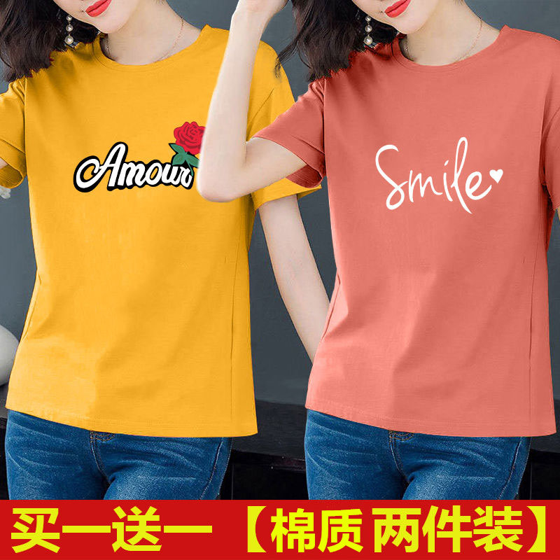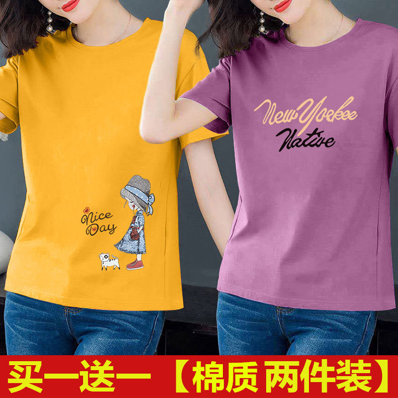 两件装女士夏季棉质短袖T恤,新款大码胖mm女半袖,韩版宽松上衣,做工精良,手感柔和细腻,品质保证,多款多色【送运费险】