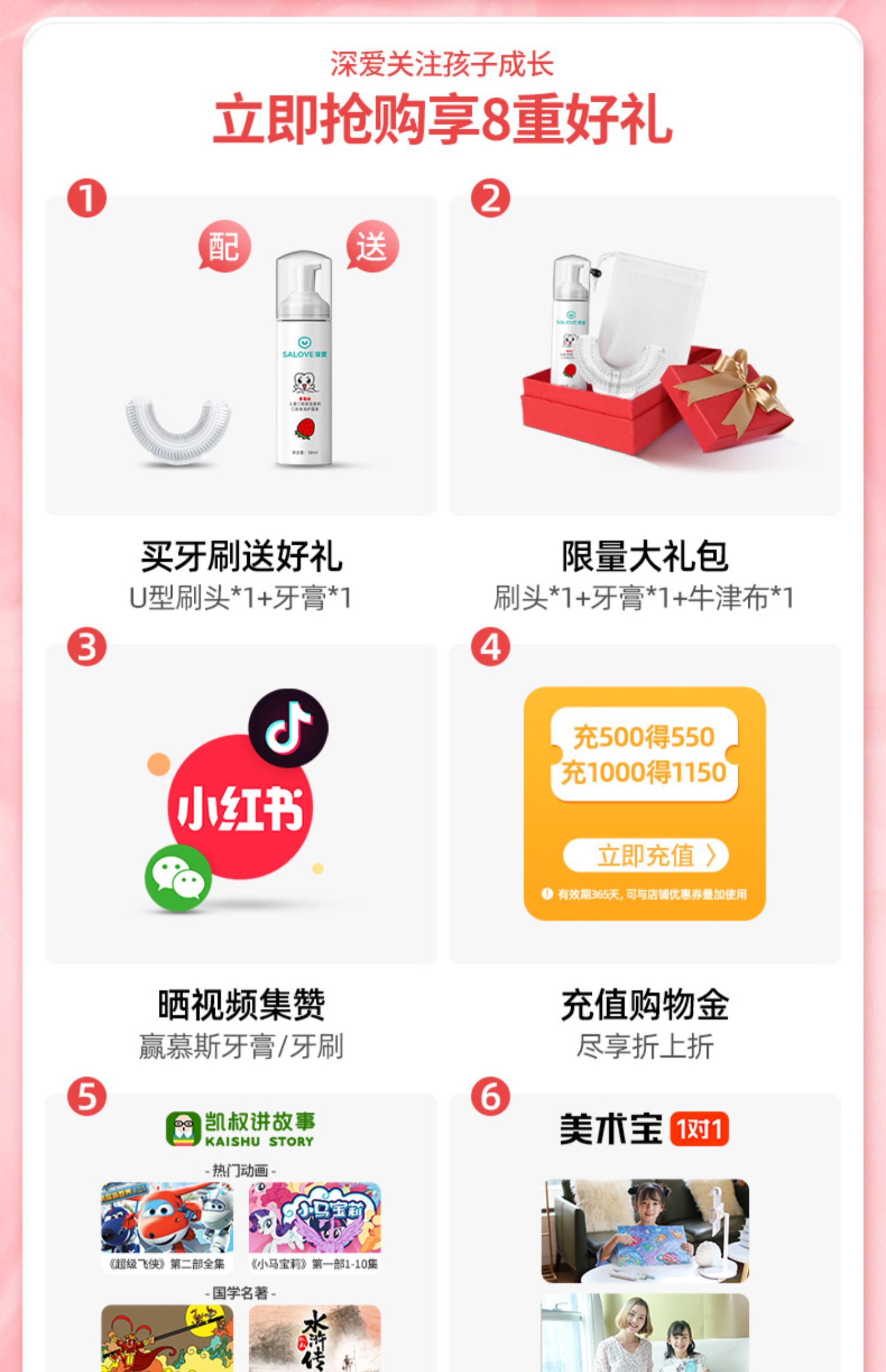 儿童全自动智能U型牙刷,U型柔软刷头,波震动按摩,360度洁齿净白,全身防水,卡通可爱,让宝宝爱不释手!