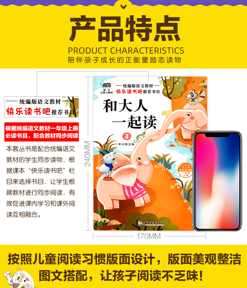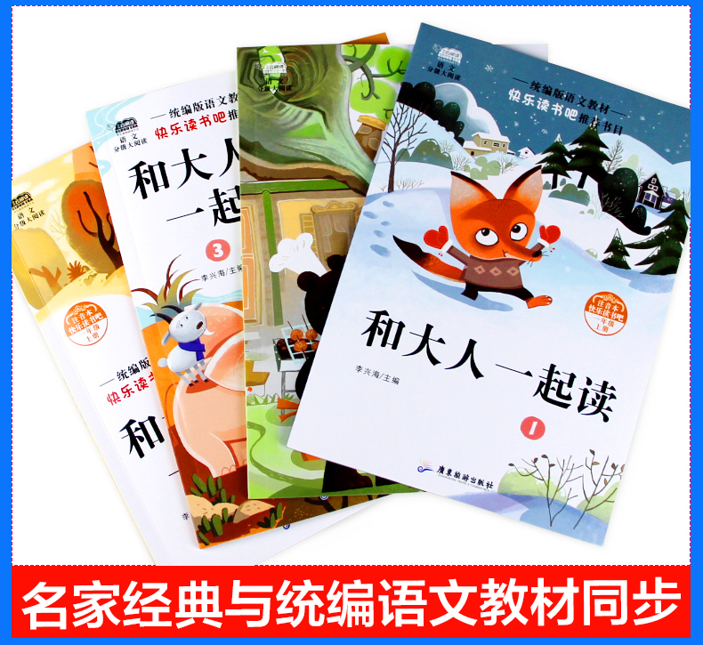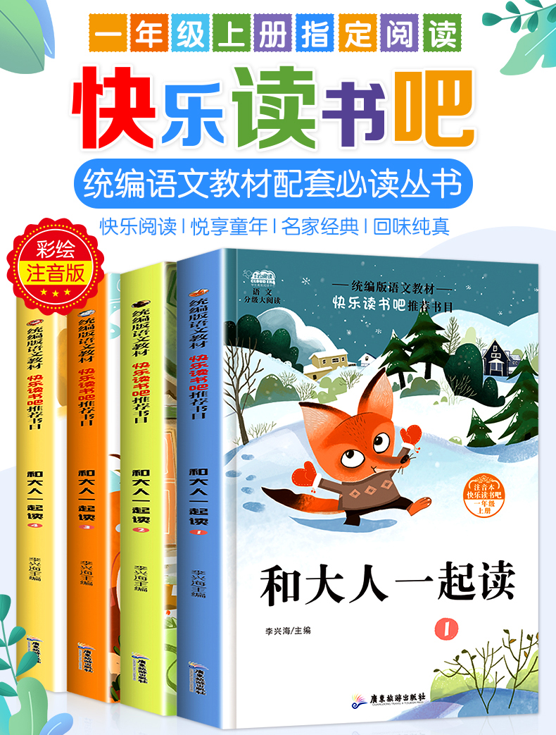 快乐读书吧推荐书目,人教版一年级上册必读,和大人一起读全4册,16开大版本,全彩印刷,插图精美,文字带有注音,学校指定版本,儿童必读课外读物。学前幼儿园宝宝早教启蒙教材,小学生暑假开学季必备。