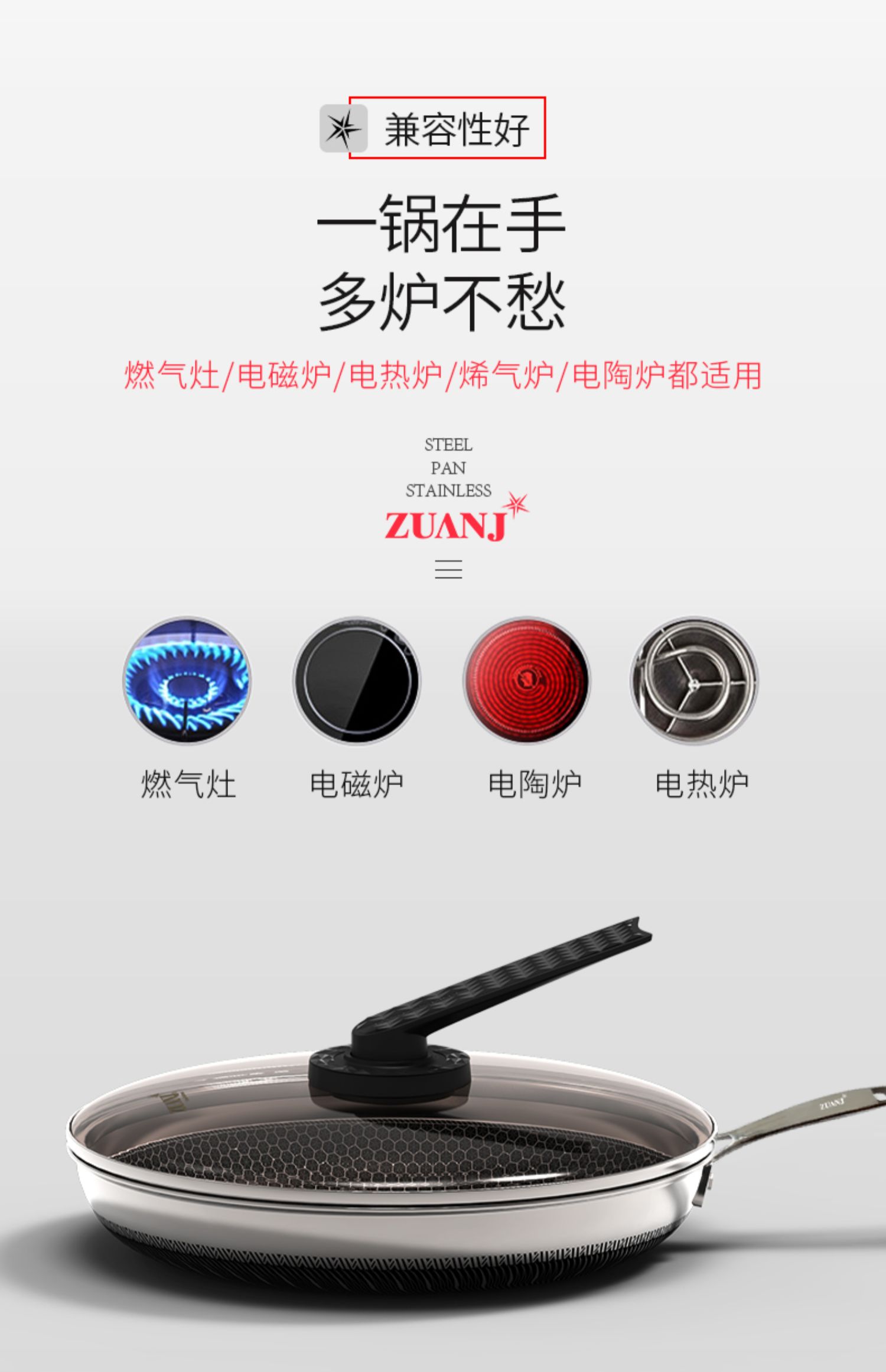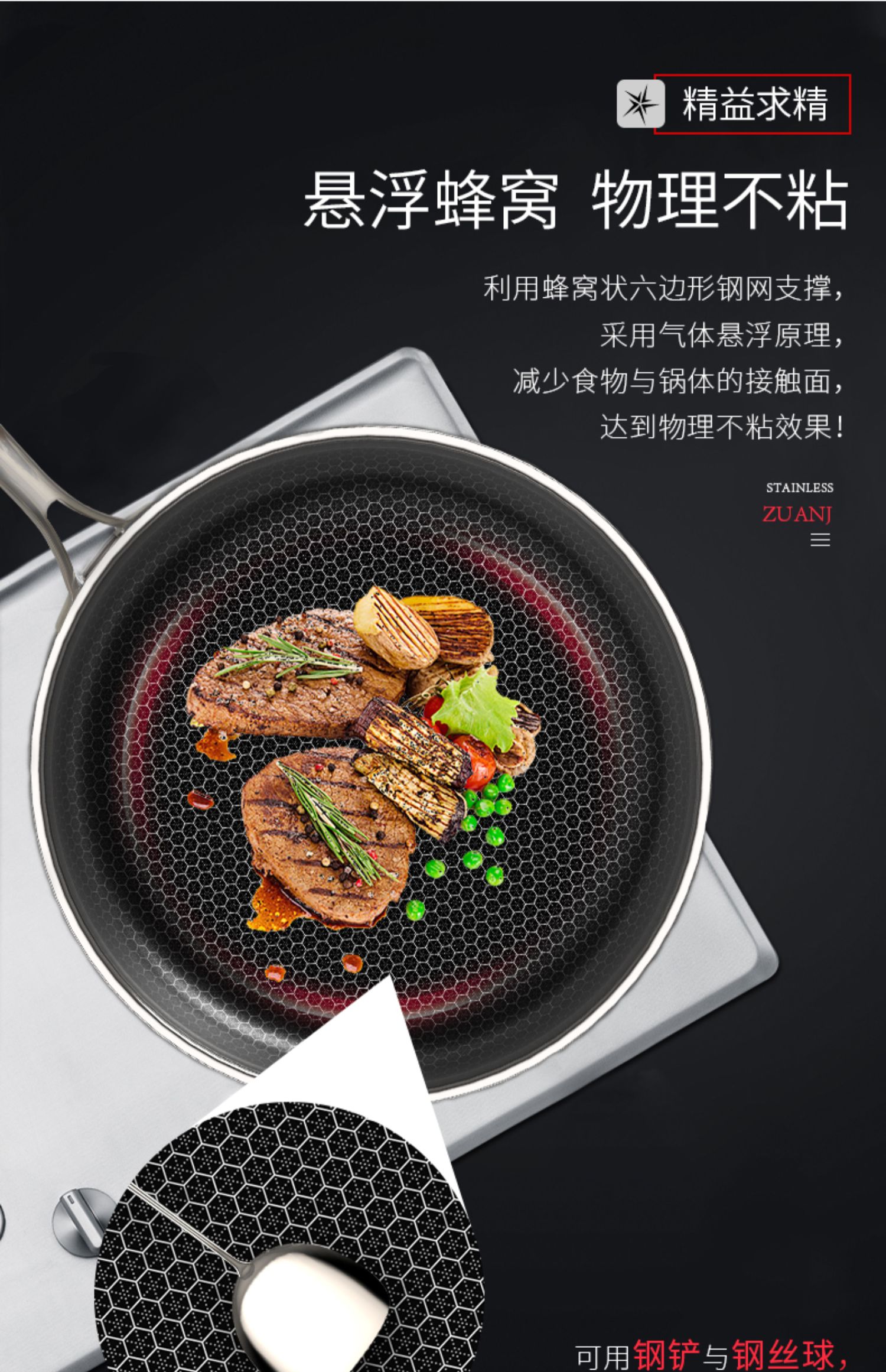 钻技304不锈钢平底锅,不粘锅煎锅28CM,牛排煎锅煎蛋锅,电磁炉燃气灶,领券再减100元,加送钢铲清洁膏。