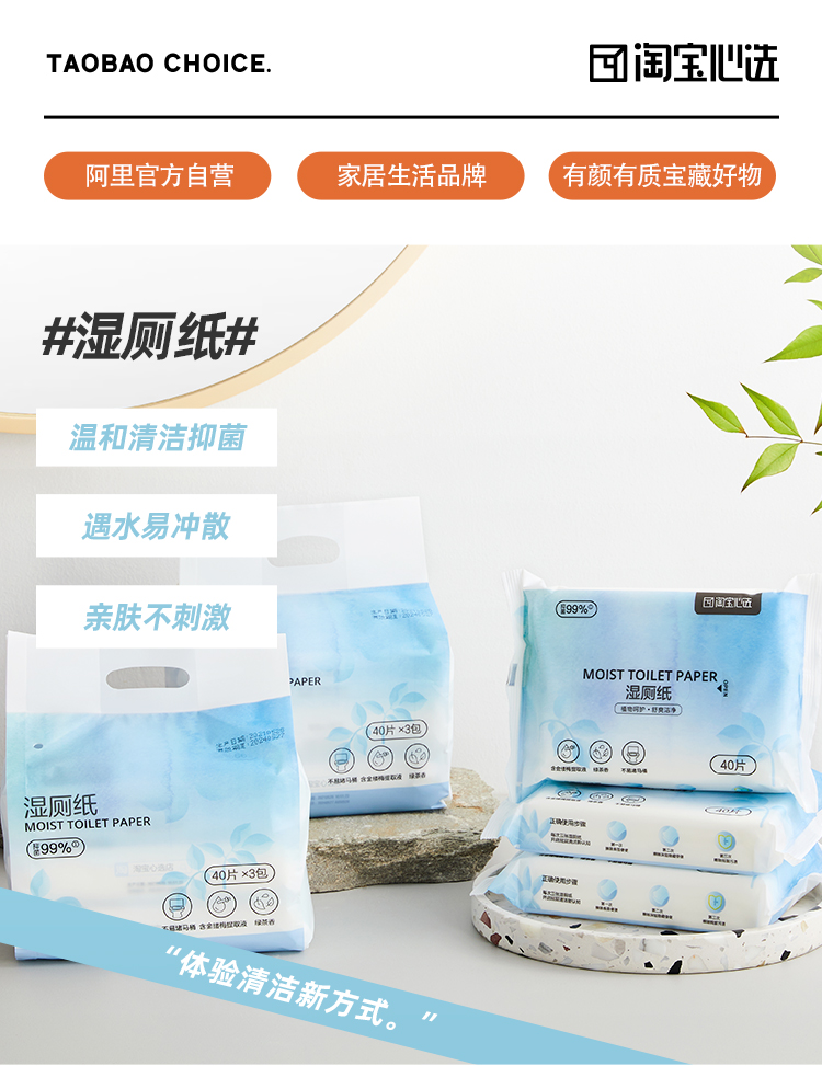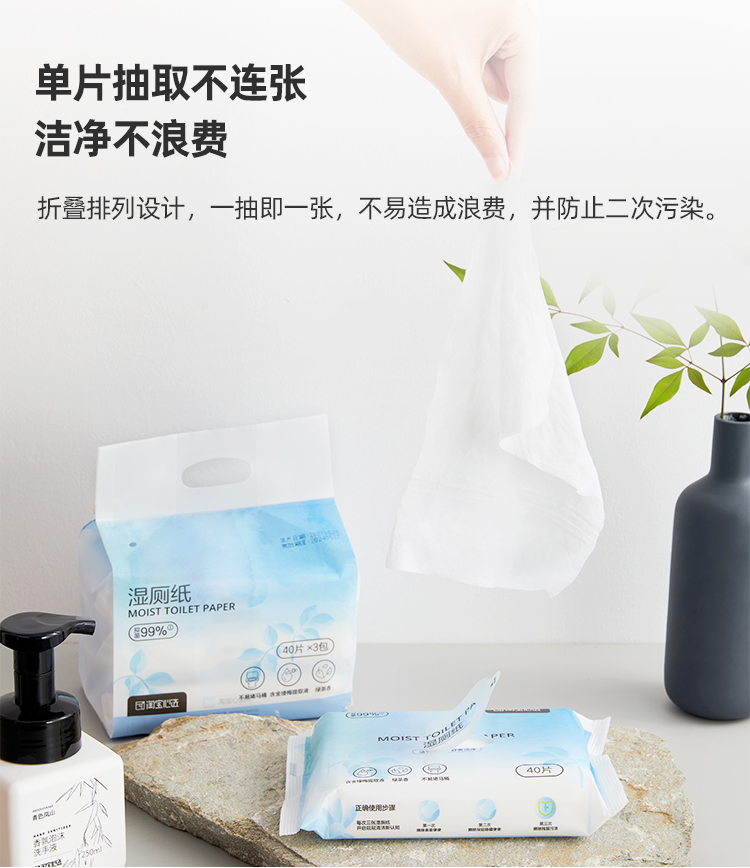 【拍两件】严选原生木浆,安心擦拭不易掉屑,单片抽取不连张,植萃保湿精华,呵护私处敏感肌肤,温和清洁,无荧光增白剂,快速冲散