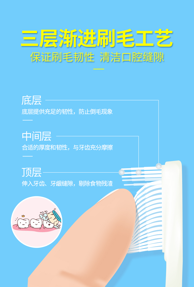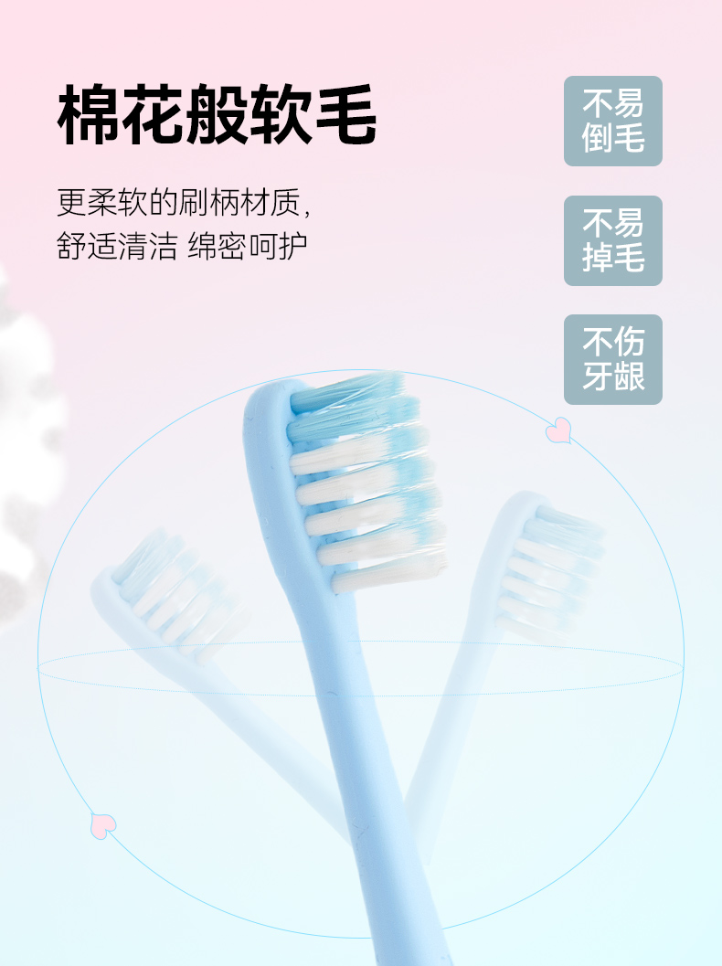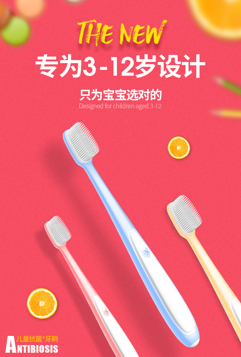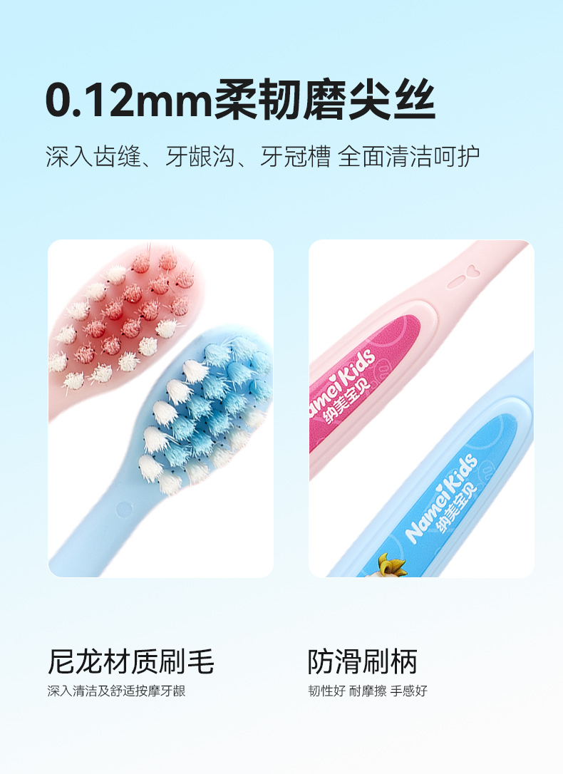 萌萌可爱的颜色,防滑手柄,细腻软毛,专为儿童设计,轻松清洁口腔,保护宝宝牙龈,让宝宝爱上刷牙。
