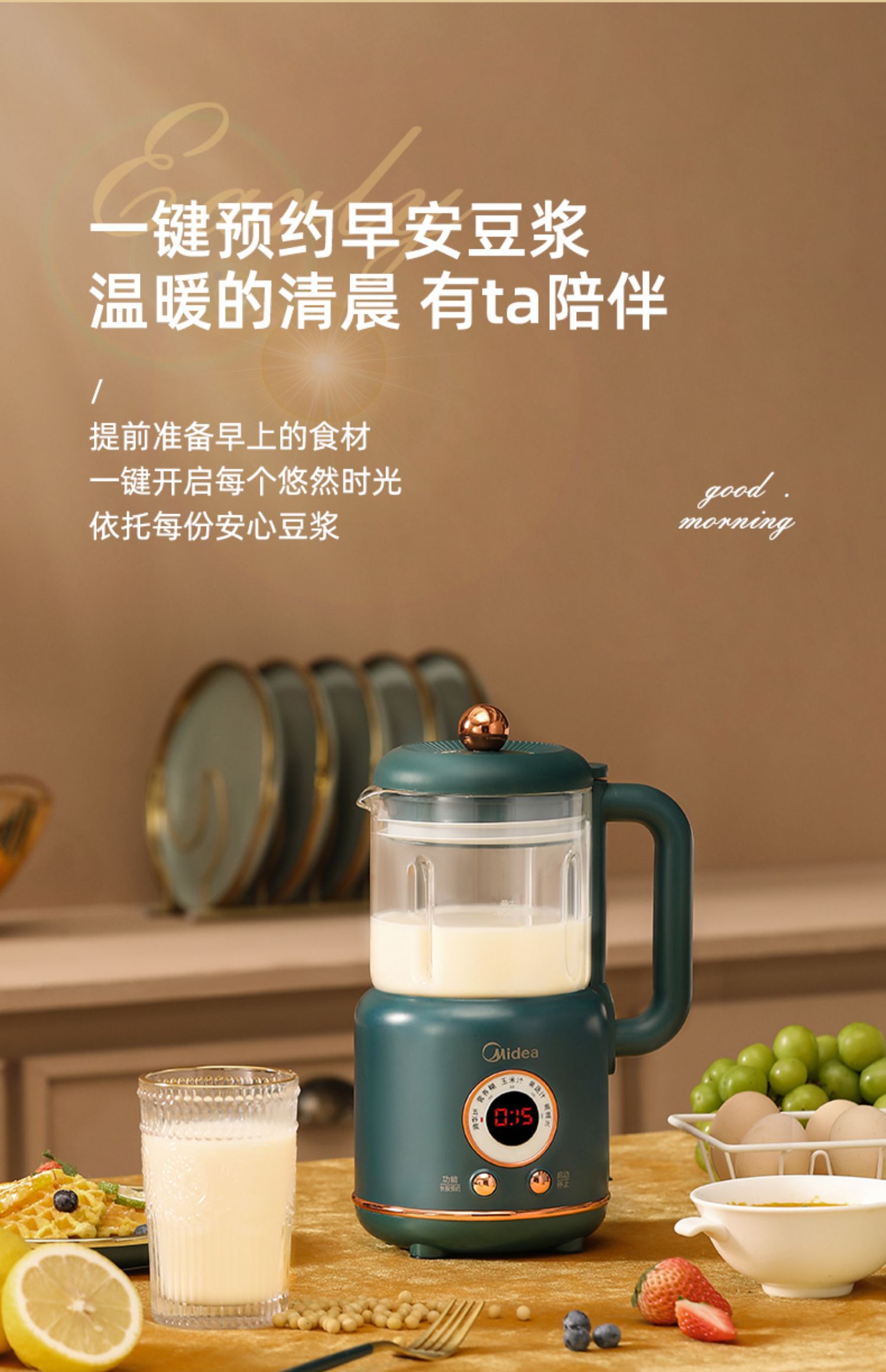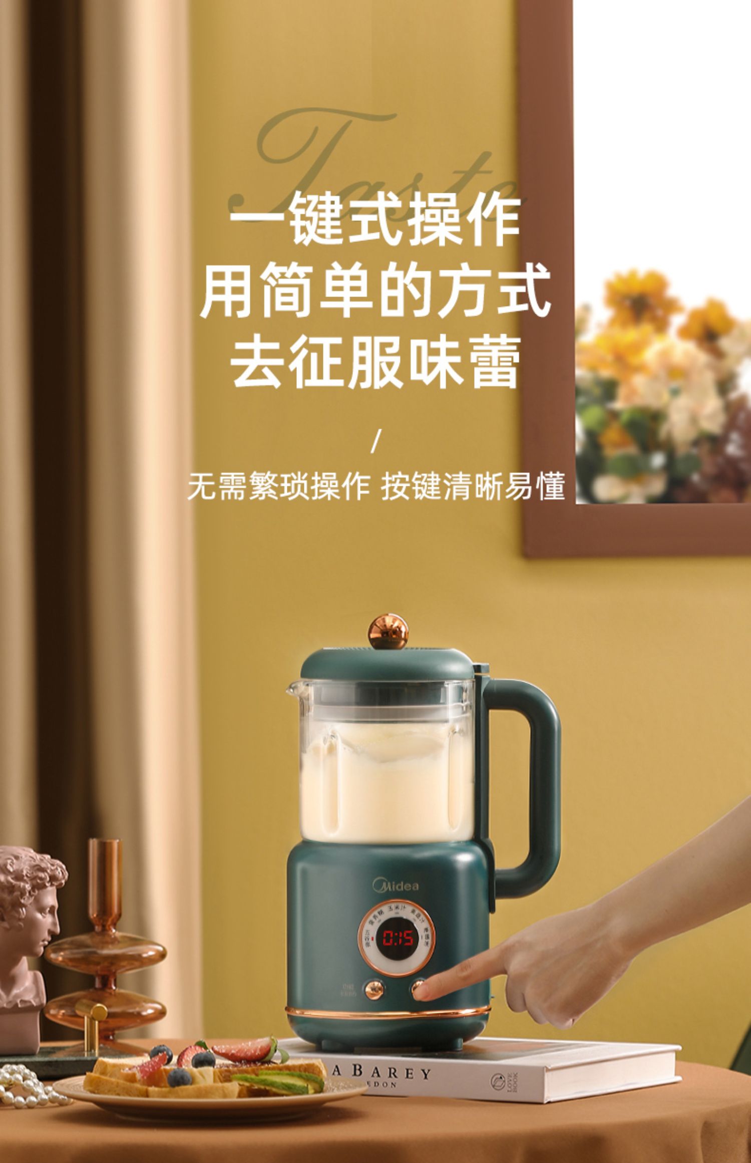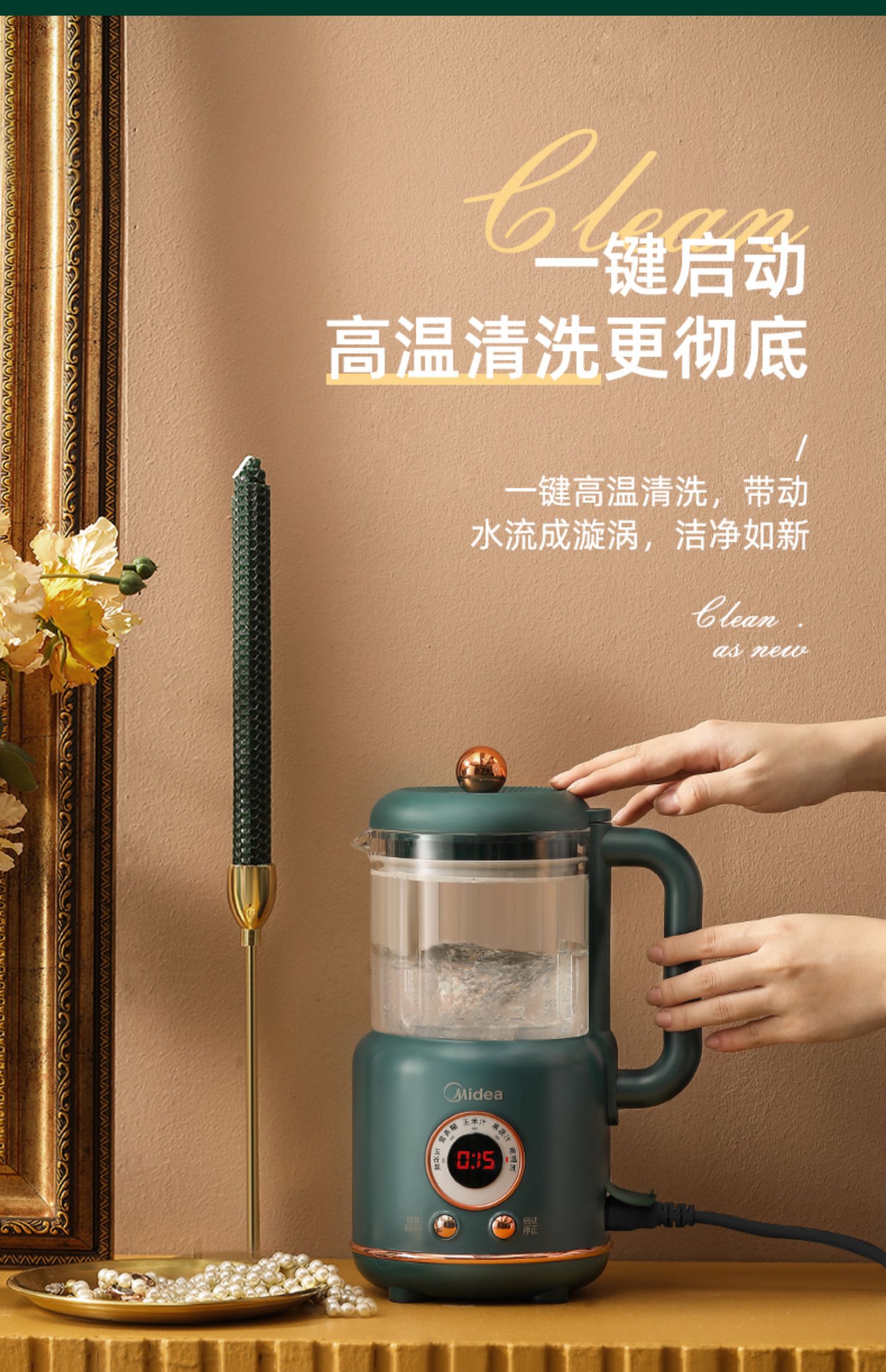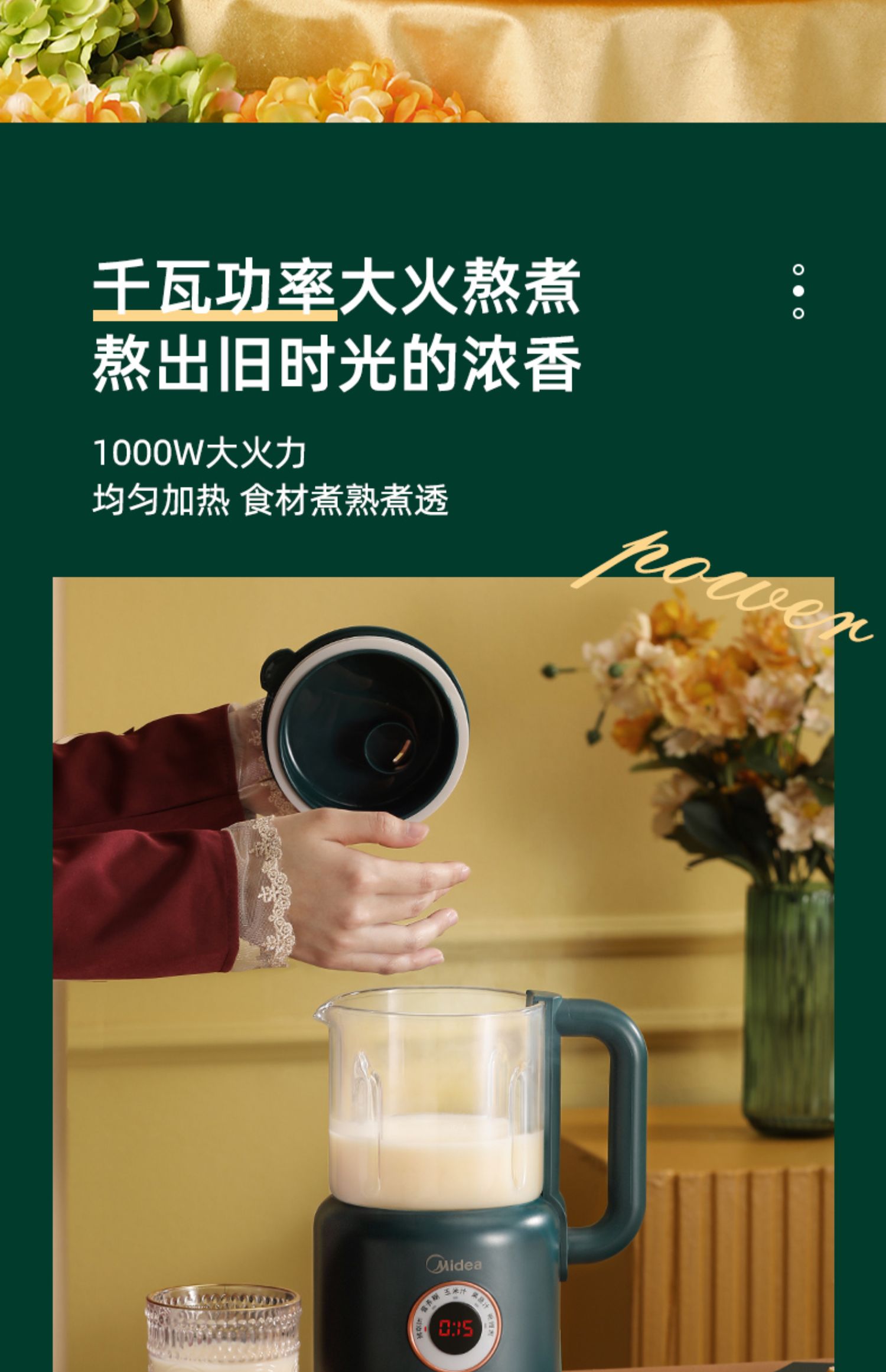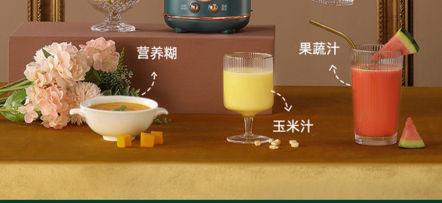 美的新款多功能破壁料理机,8h智能预约,一键高温清洗,一键开启免滤快速豆浆,360°大火沸腾,充分熟透不糊底,1000W大功率高效加热,省力又省心!