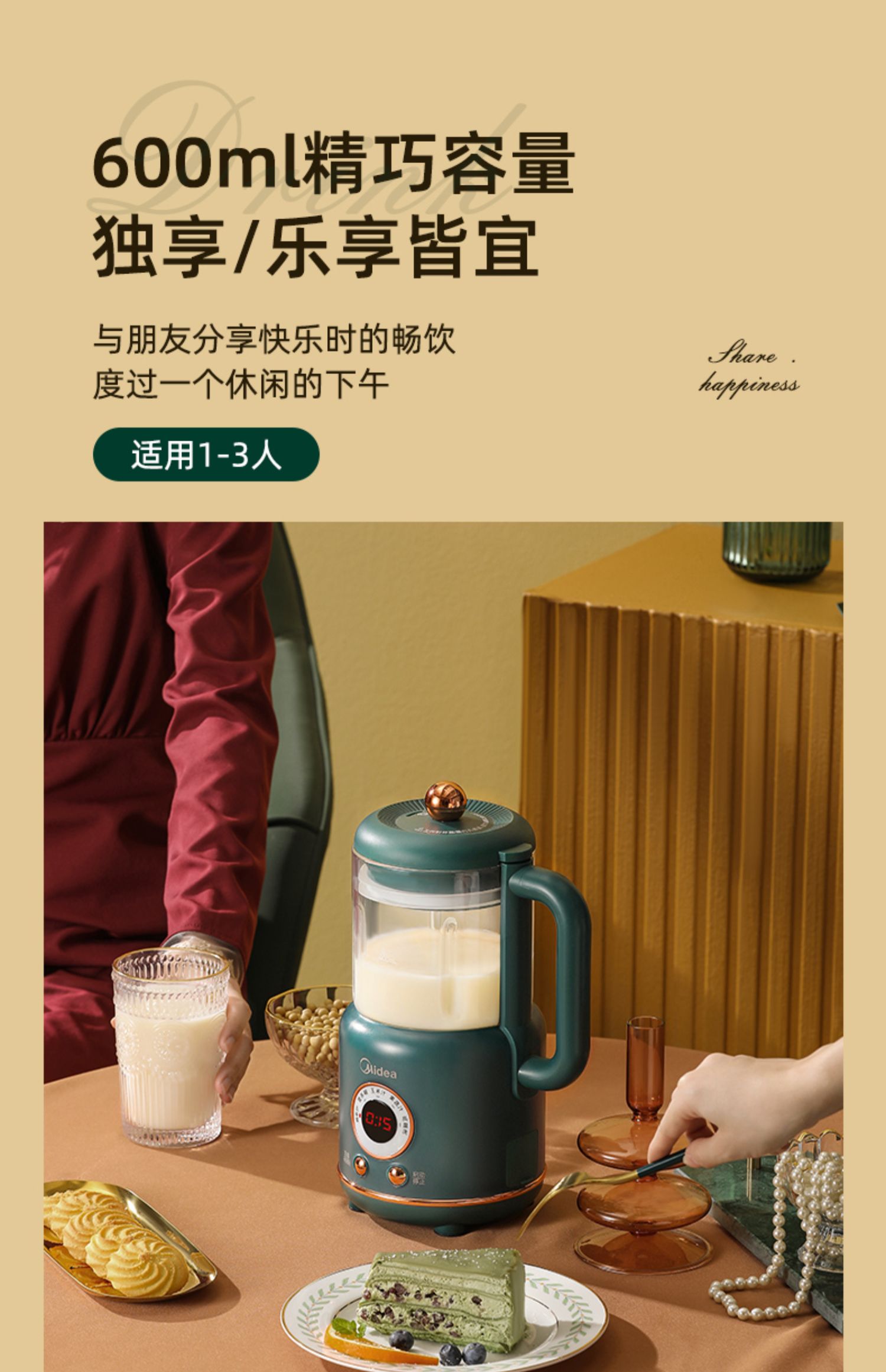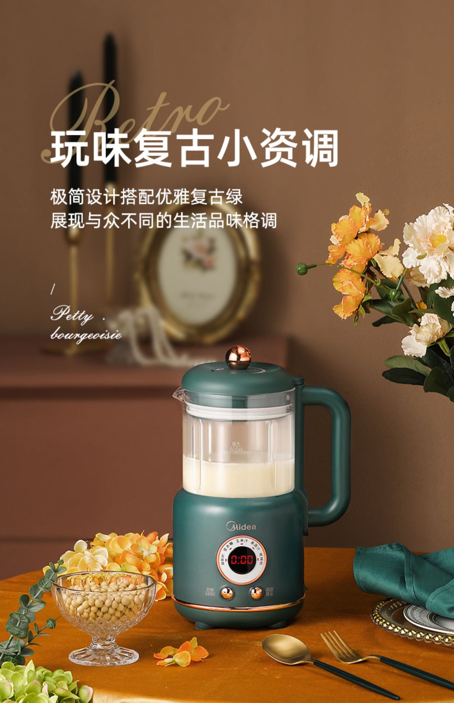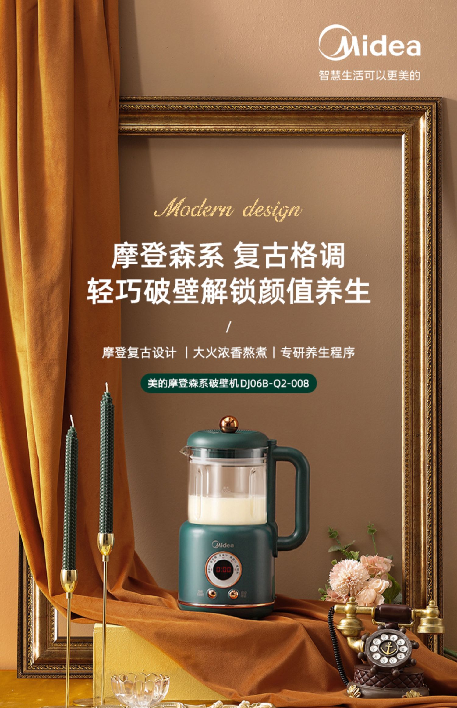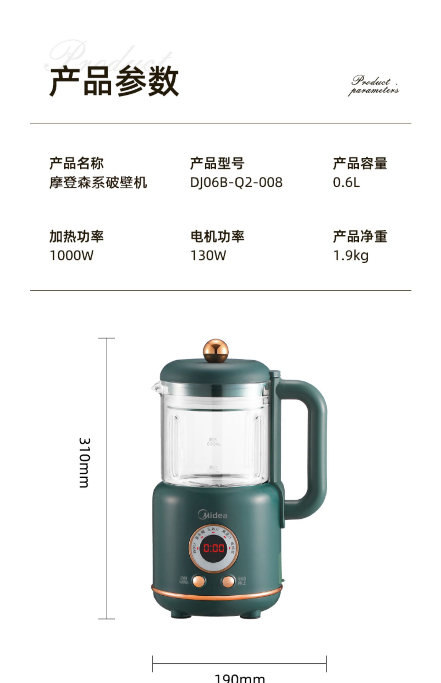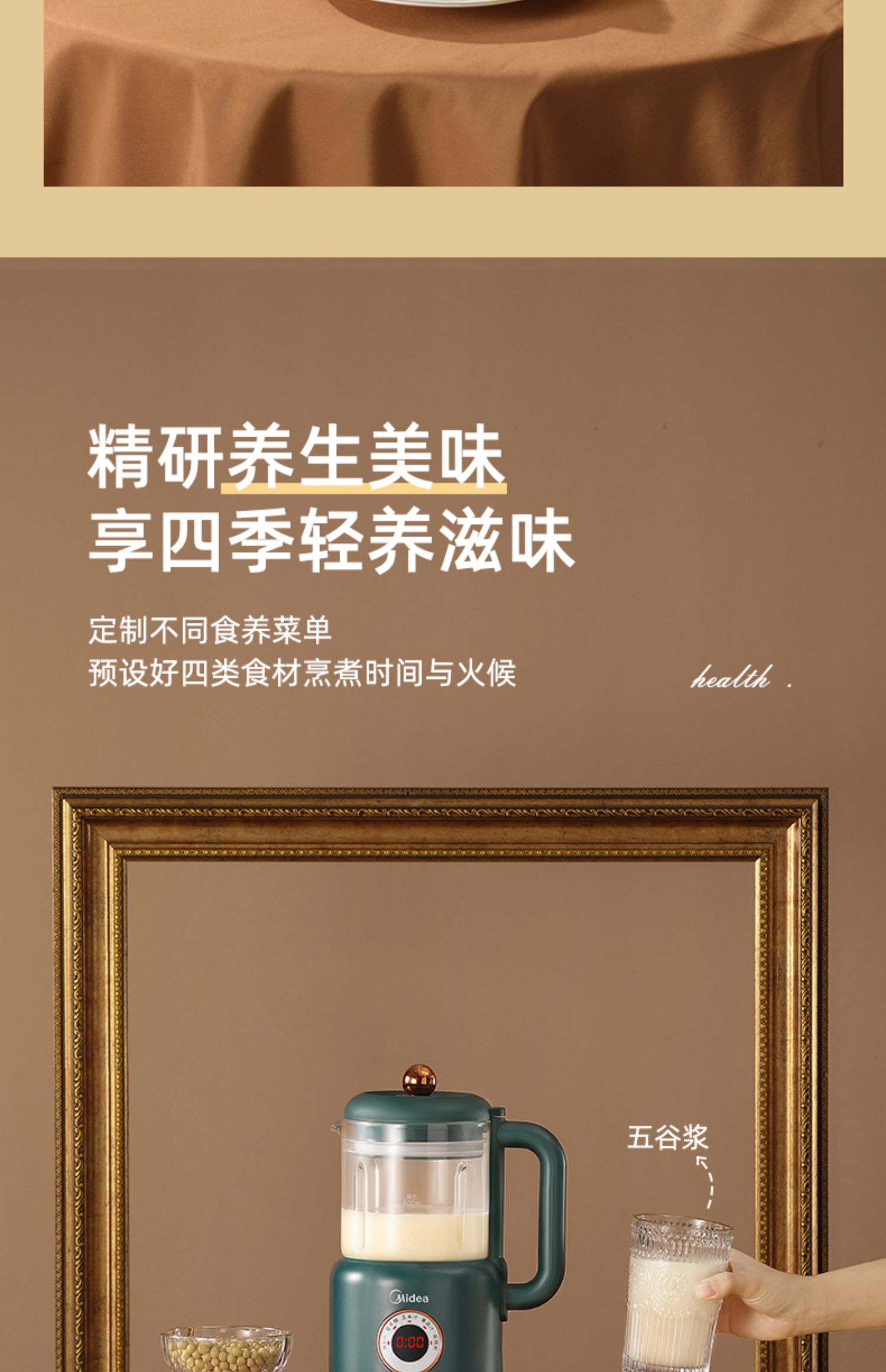 美的新款多功能破壁料理机,8h智能预约,一键高温清洗,一键开启免滤快速豆浆,360°大火沸腾,充分熟透不糊底,1000W大功率高效加热,省力又省心!