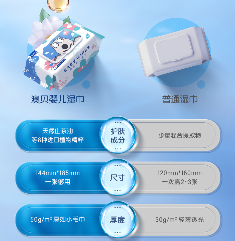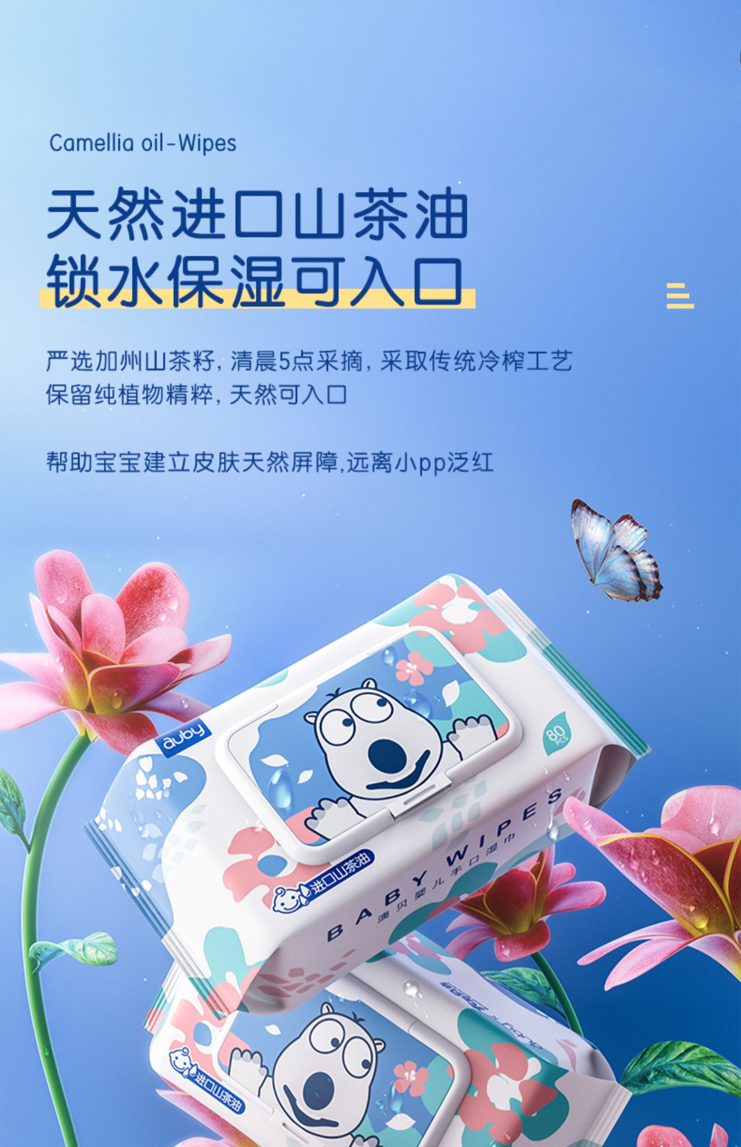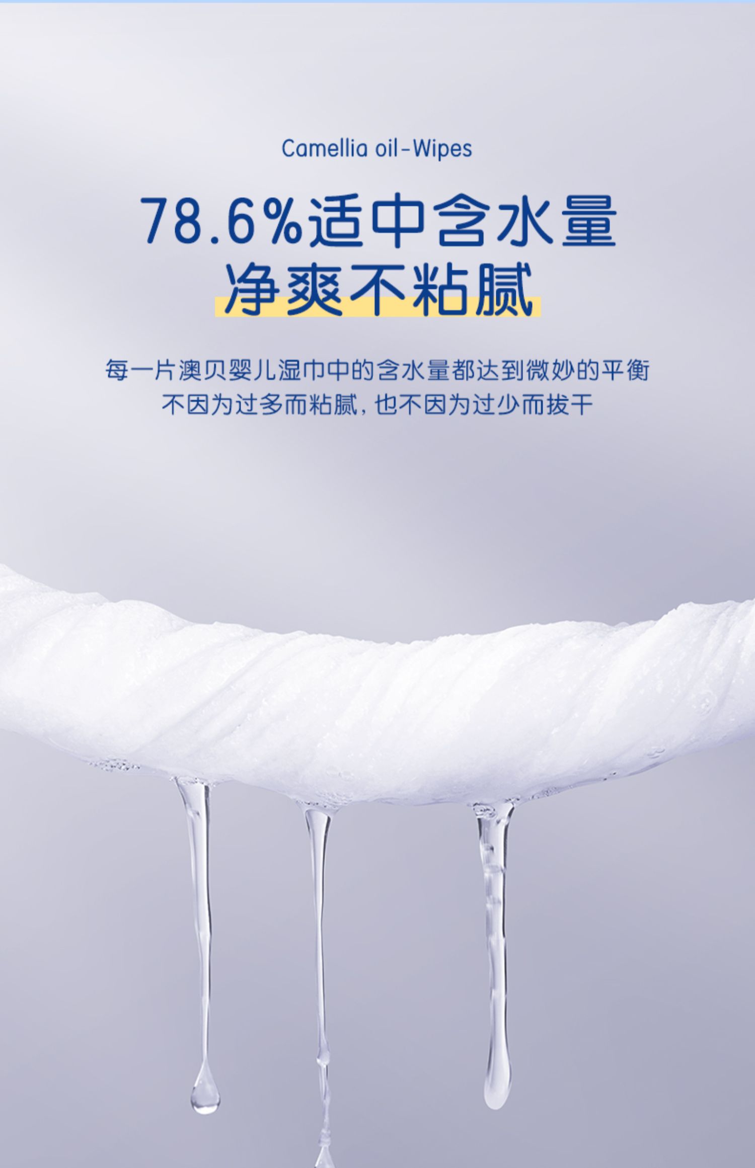 【澳贝】送10*8湿巾随身装,婴儿湿巾,婴幼儿手口专用湿纸巾,新生儿屁屁新生棉柔巾80抽*5包,采用进口山茶油,锁水保湿可入口!让宝宝远离“苹果脸”!