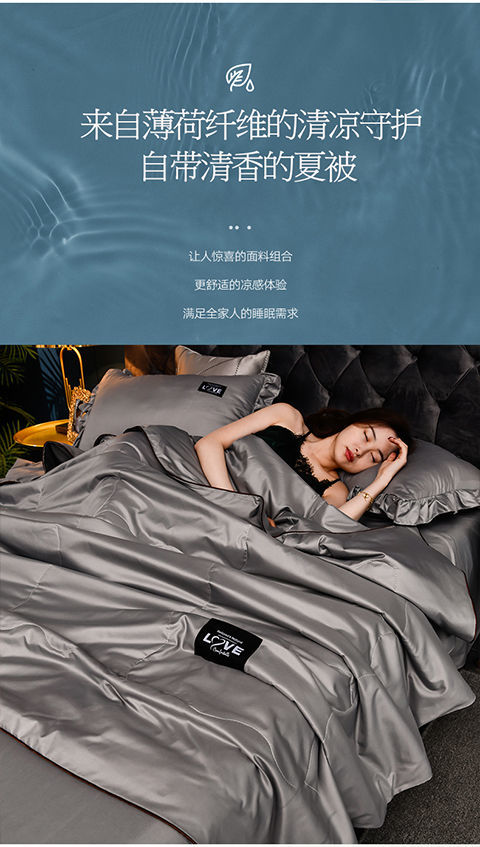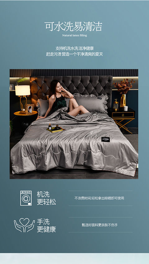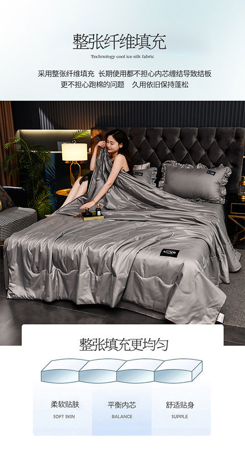 做工细腻,由内而外的柔软舒适,轻盈蓬松保暖,健康环保!享受好睡眠~夏季开空调必备单品,细腻爽滑贴合身体曲线给你一睡难忘的睡眠体验