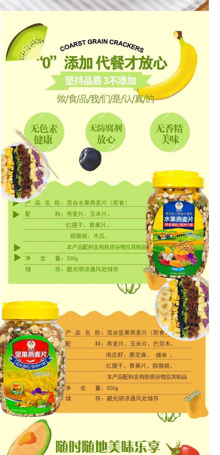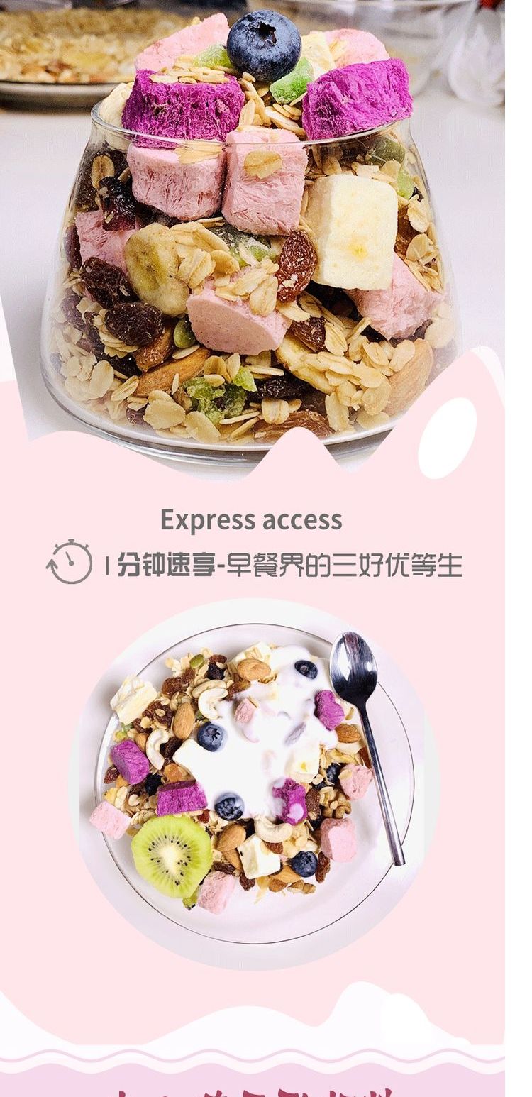 即食冲饮谷物,搭配缤纷果干,口感香甜,营养丰富!