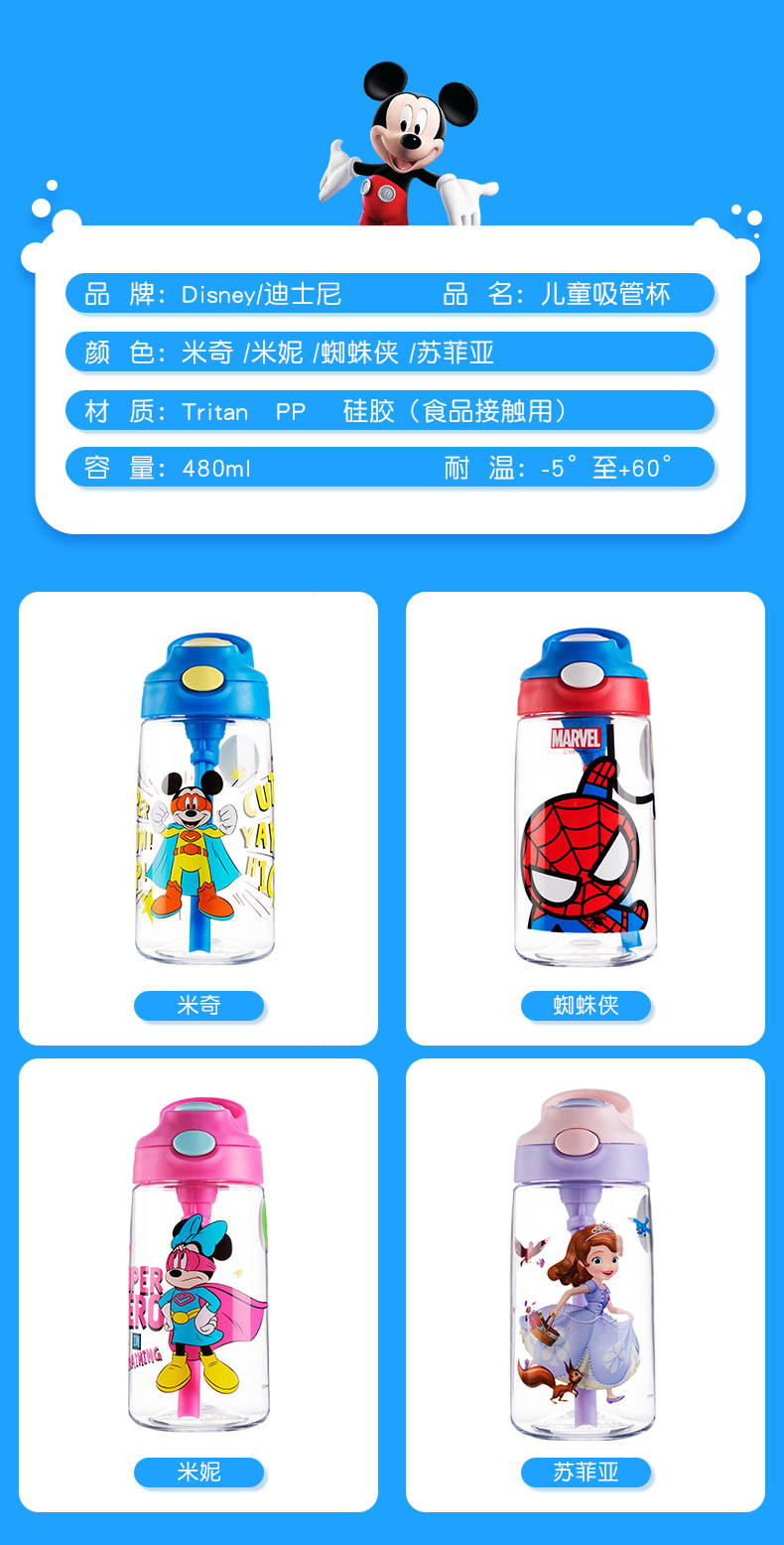 【1件5折!】天猫超市包邮,次日达,正品保证,迪士尼儿童吸管杯480ml鸭嘴杯,一键饮水,安全材质,不含双酚A。