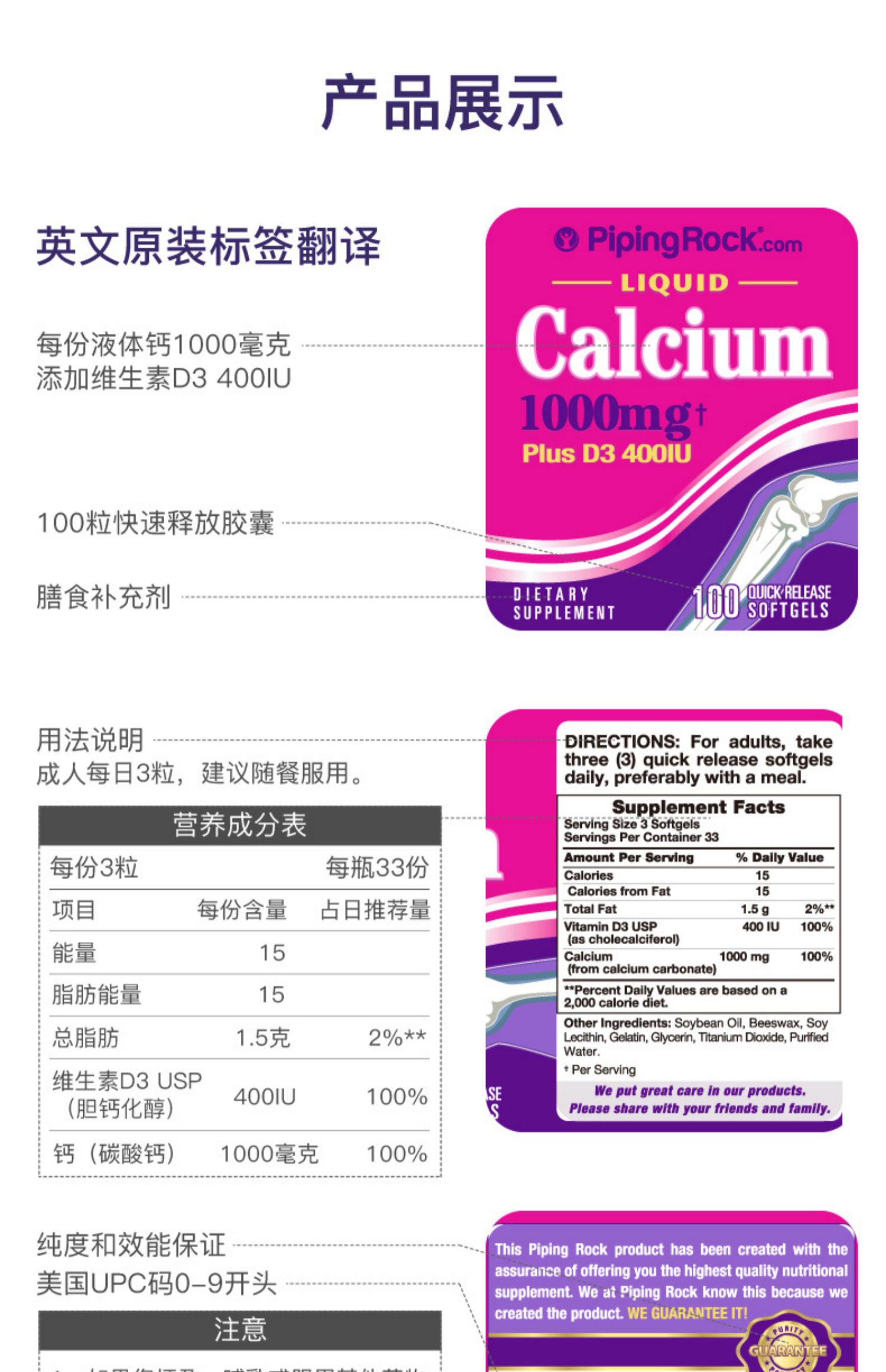 【第2件0元!包邮包税,单瓶低至29.5】美国朴诺进口液体碳酸钙+VD,比钙片更易吸收的小分子钙,1粒≈4倍含量。1份1000mg满足人体一天所需,中老年预防骨质疏松。女性补钙预防抽筋。